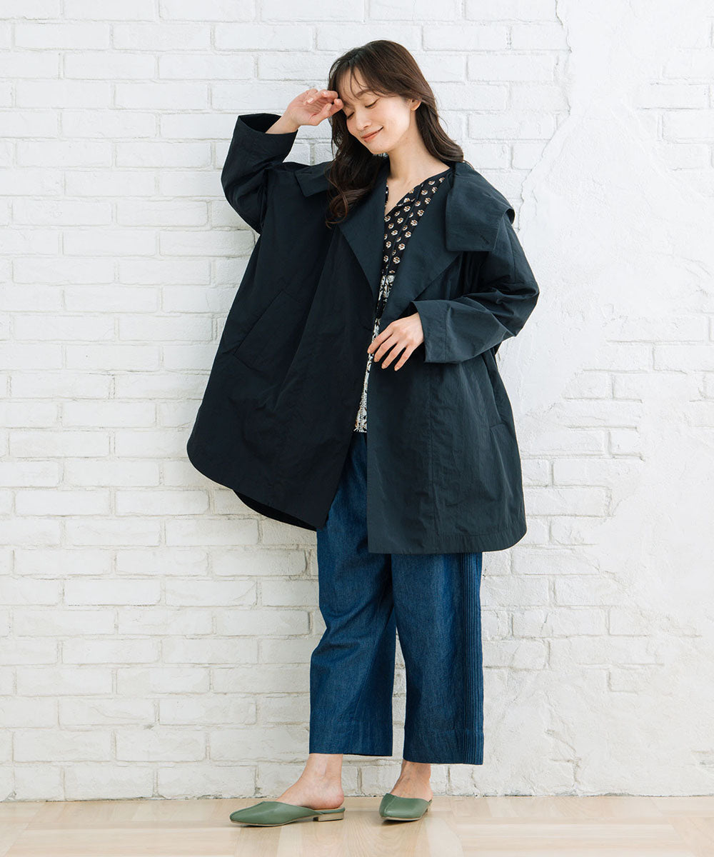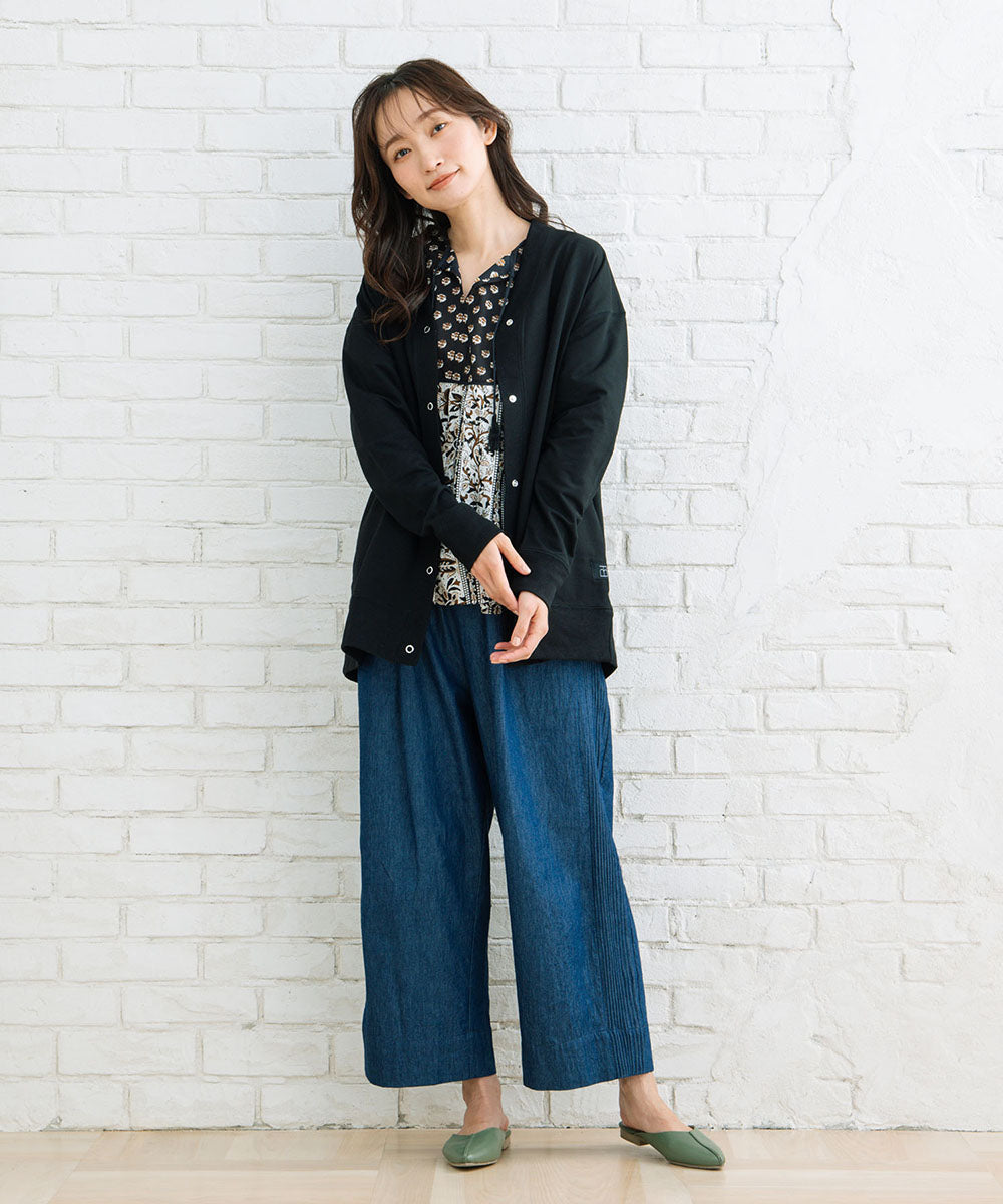 ストンと落ちるワイドシルエットでスタイルアップも期待できます。