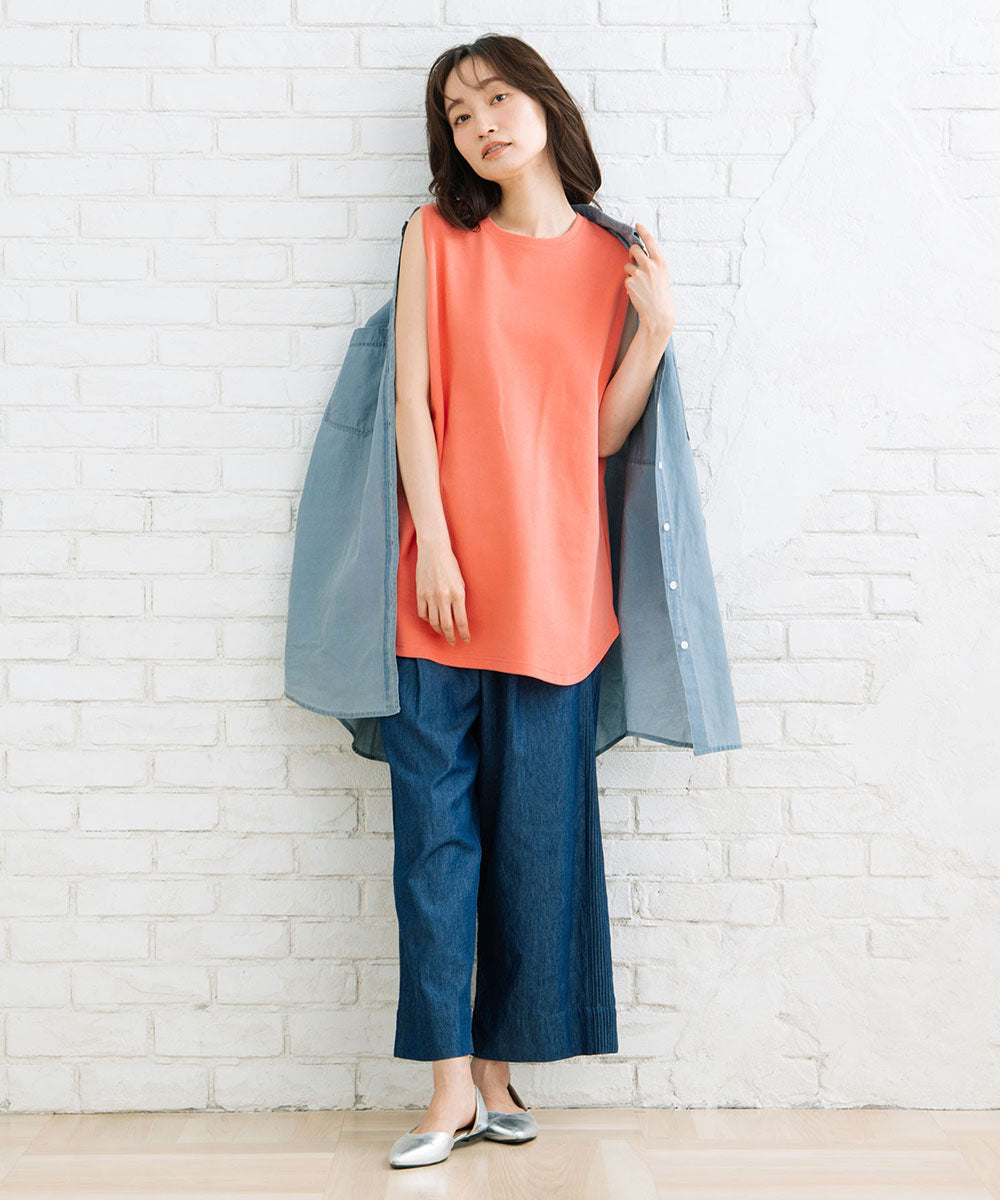 Tシャツと合わせてカジュアルスタイルに、ブラウスと合わせてきれいめスタイルもオススメです。