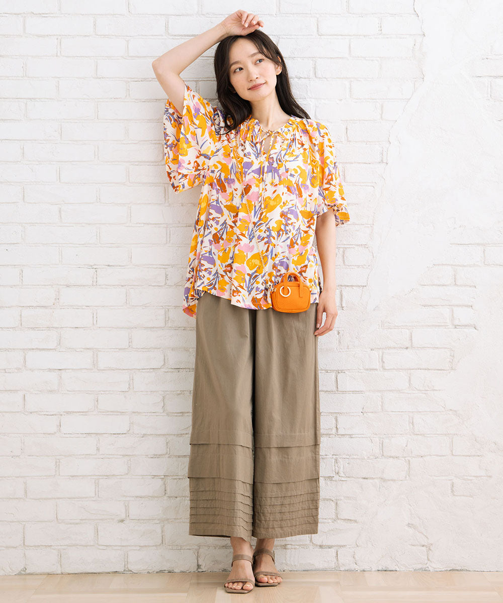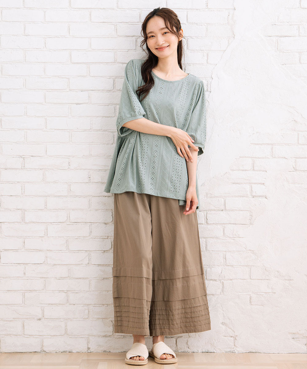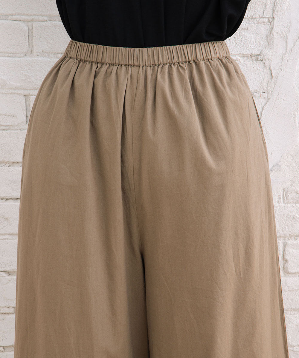 さらに、ウエストゴム仕様でリラックス感と上品さを兼ね備えた、大人の女性のためのワイドパンツです。