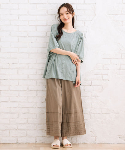 さらりとしたインドコットンを使用し、暑い季節も快適に過ごせるワイドパンツです。