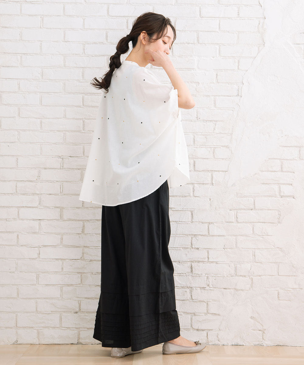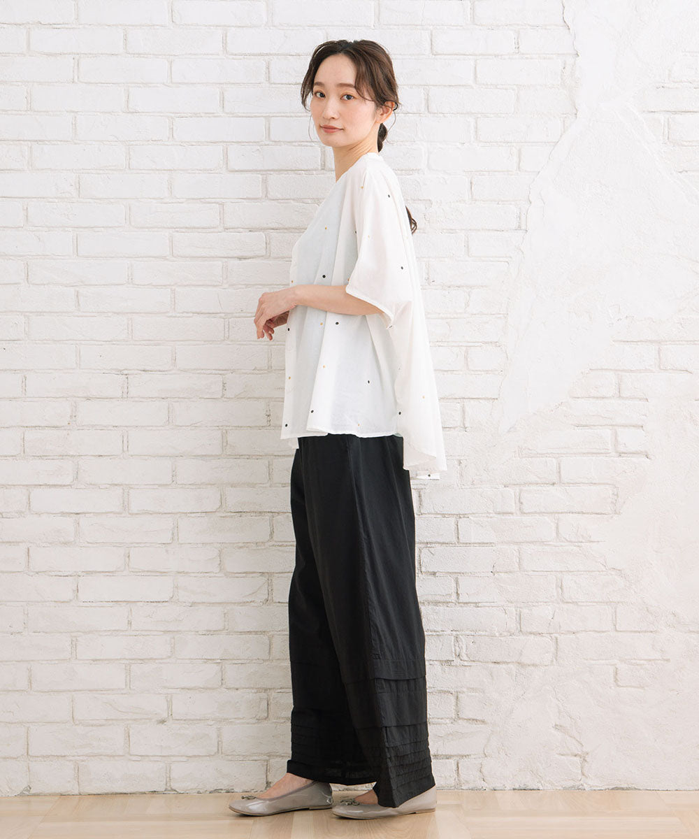 さらりとしたインドコットンを使用し、暑い季節も快適に過ごせるワイドパンツです。