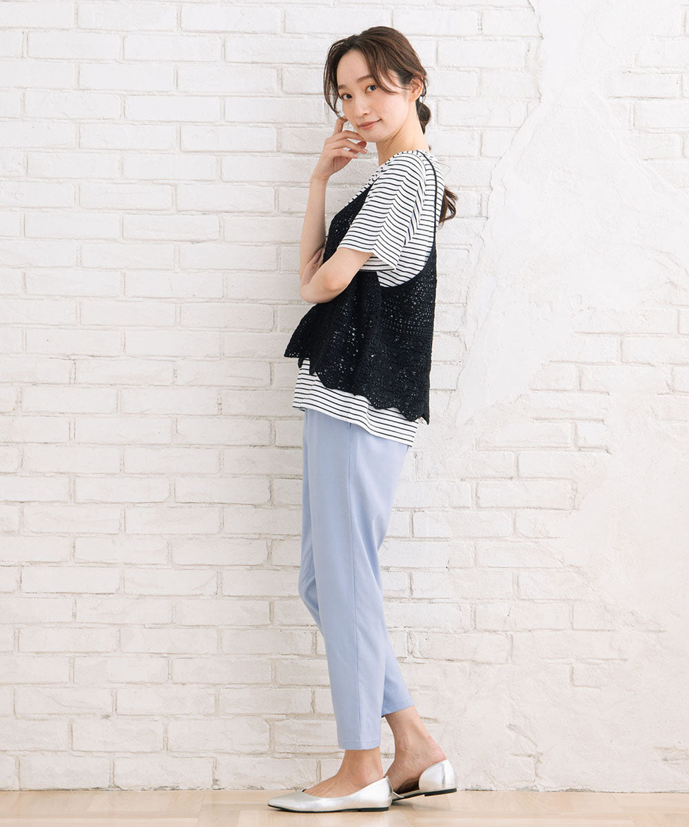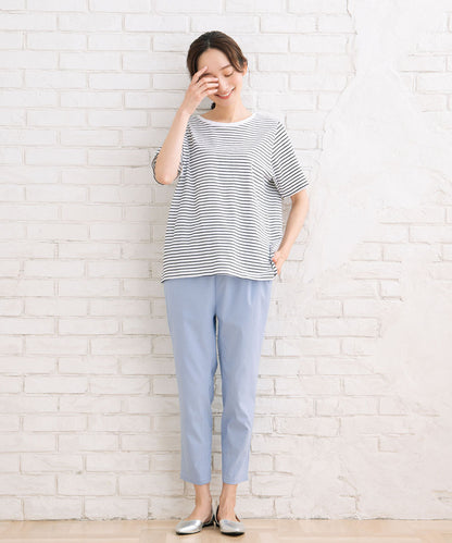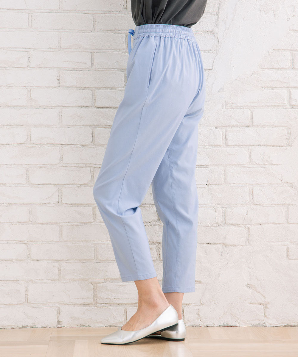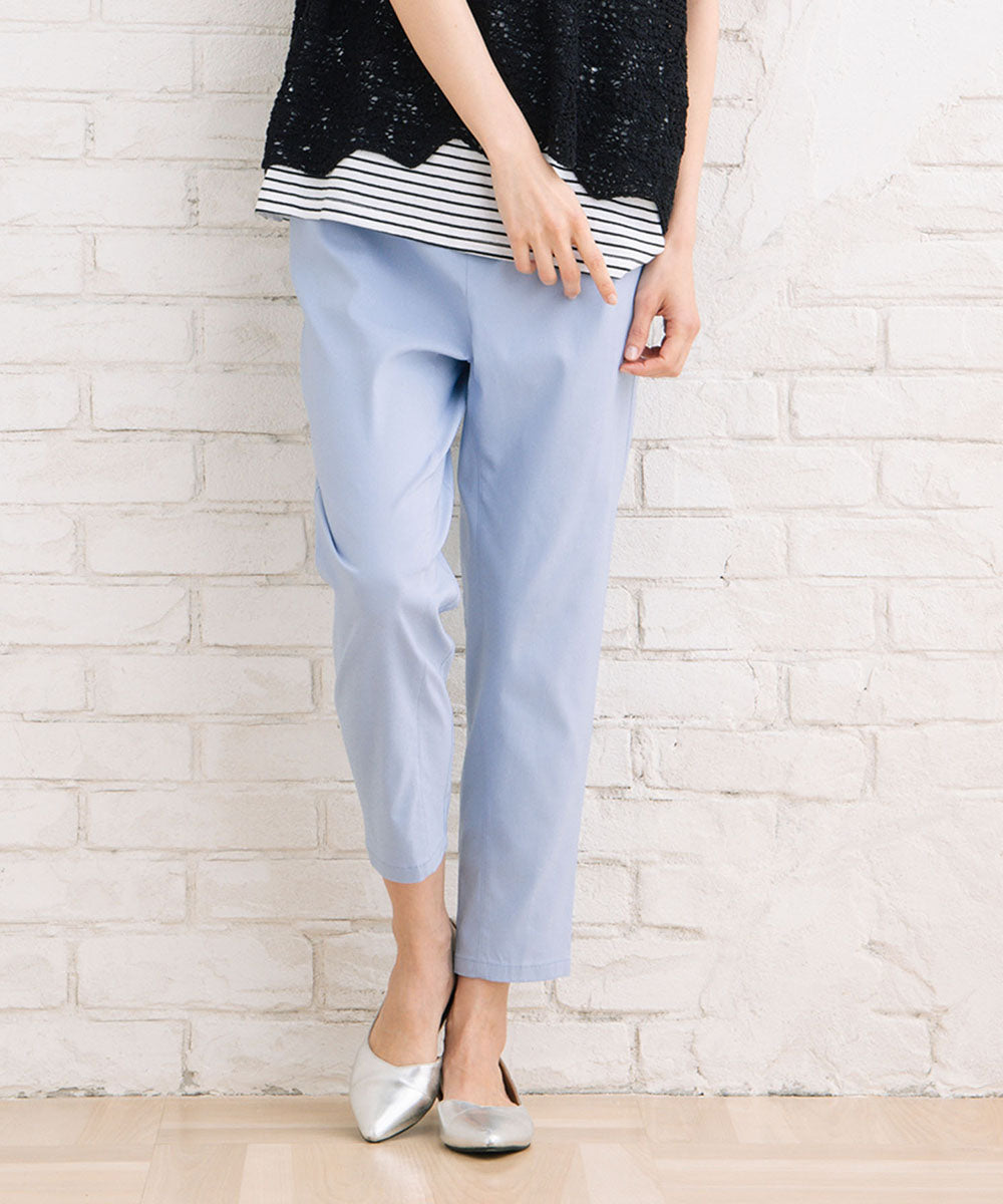 さらりとしたドライタッチ素材で、暑い季節も快適に過ごせるテーパードパンツです。