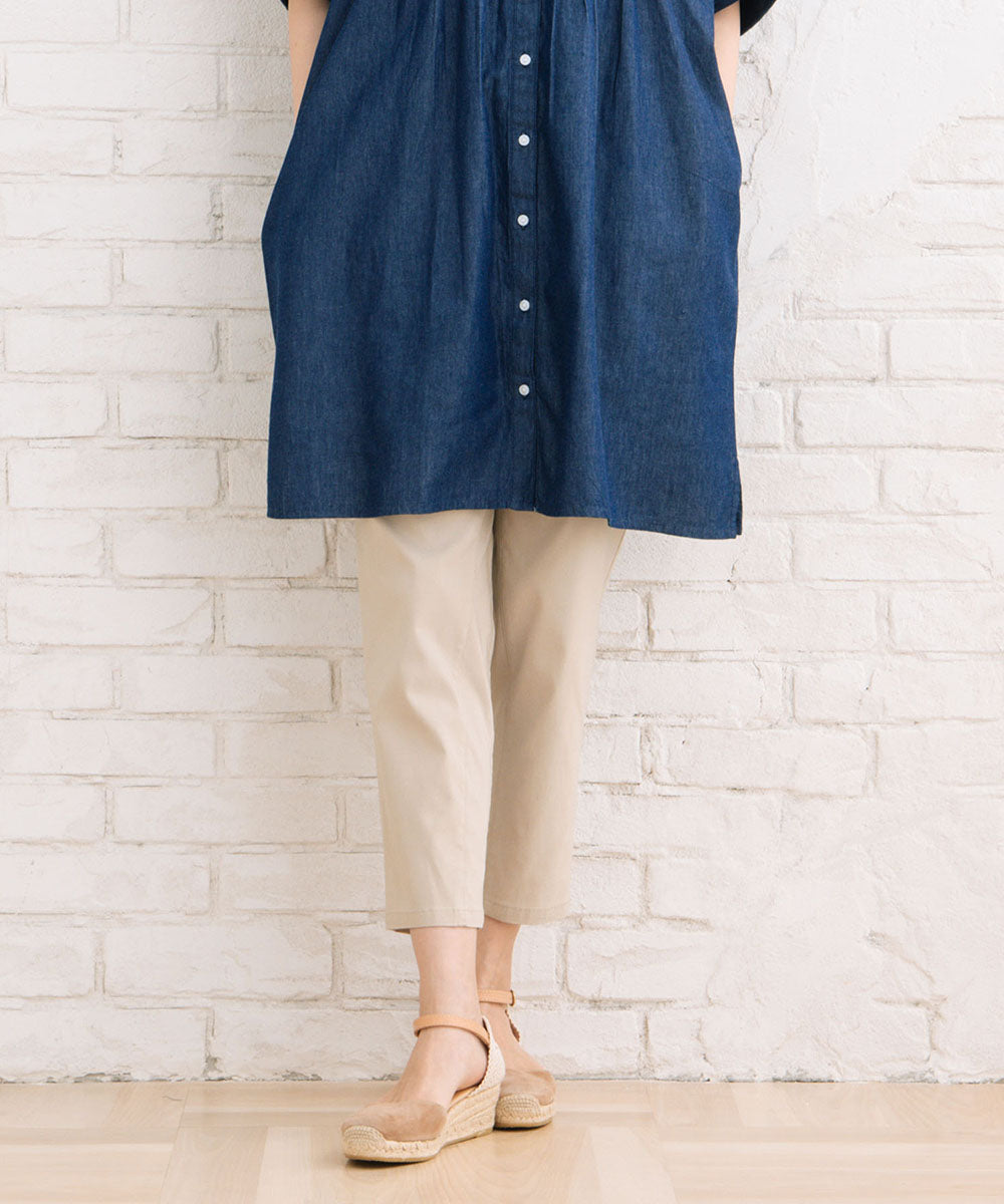 さらりとしたドライタッチ素材で、暑い季節も快適に過ごせるテーパードパンツです。