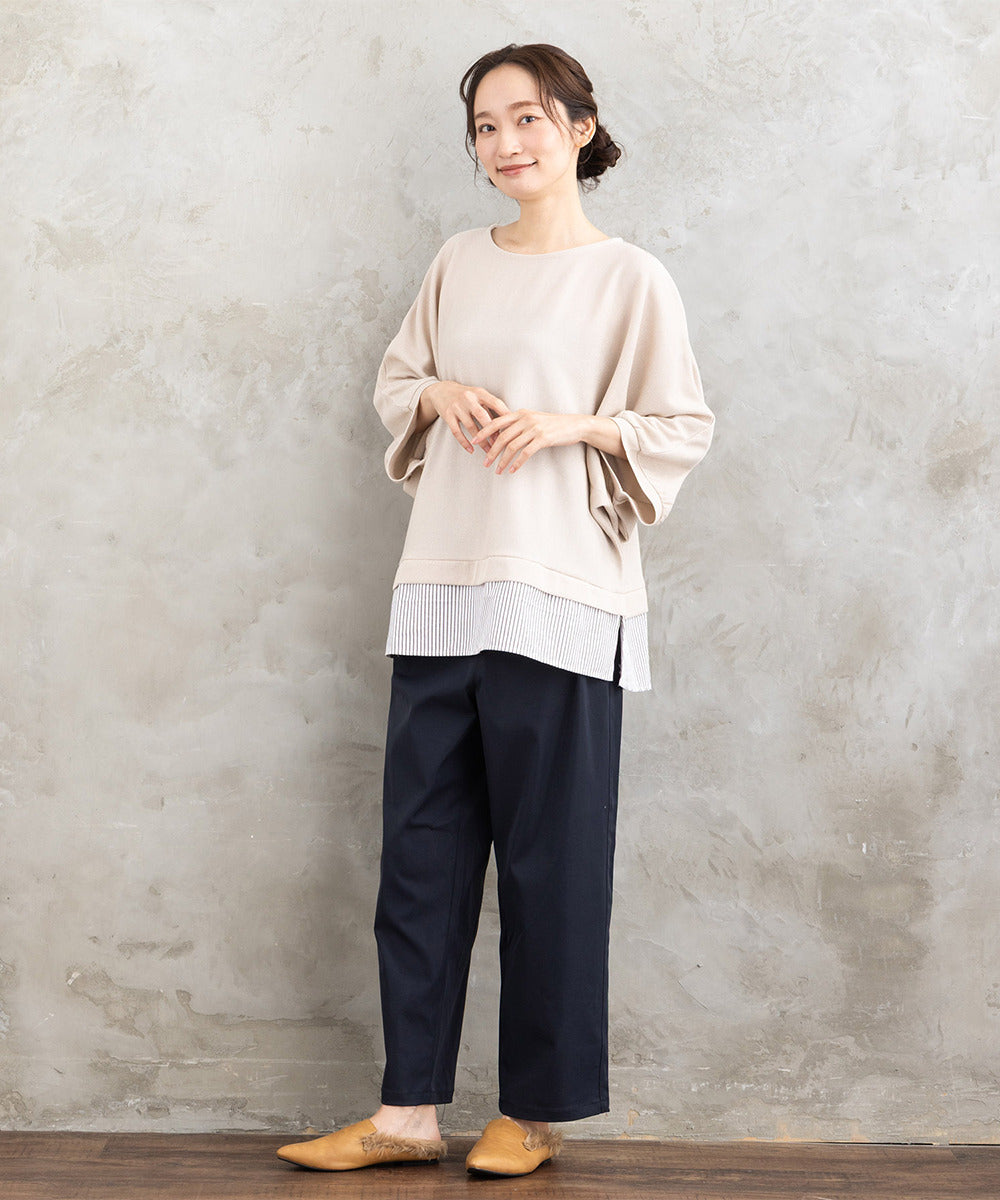 ・デザインポイント:フロントタック、セミワイドシルエット、後ろウエストゴム