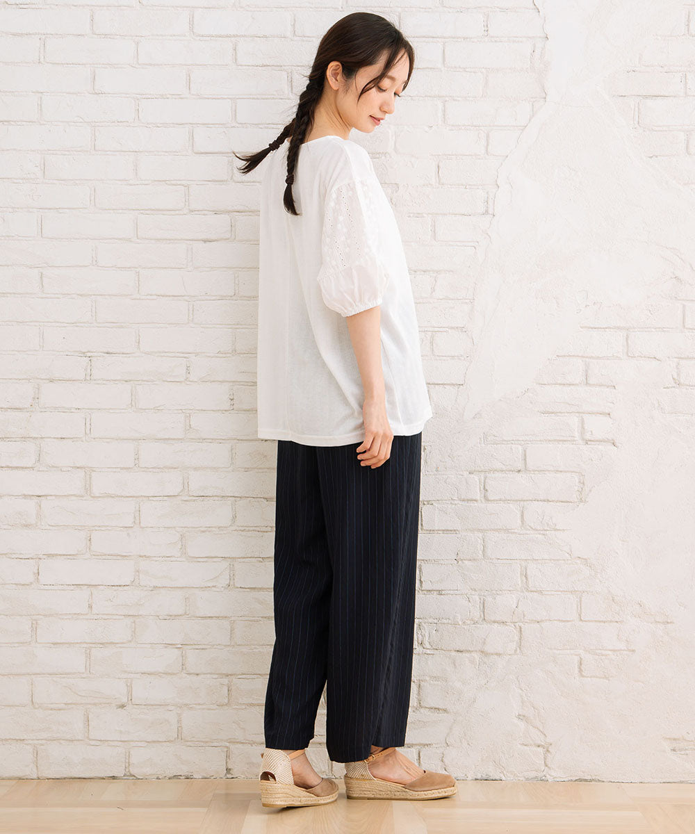 脚のラインを拾わないワイドシルエットが、体型カバーとスタイルアップを叶えてくれます。