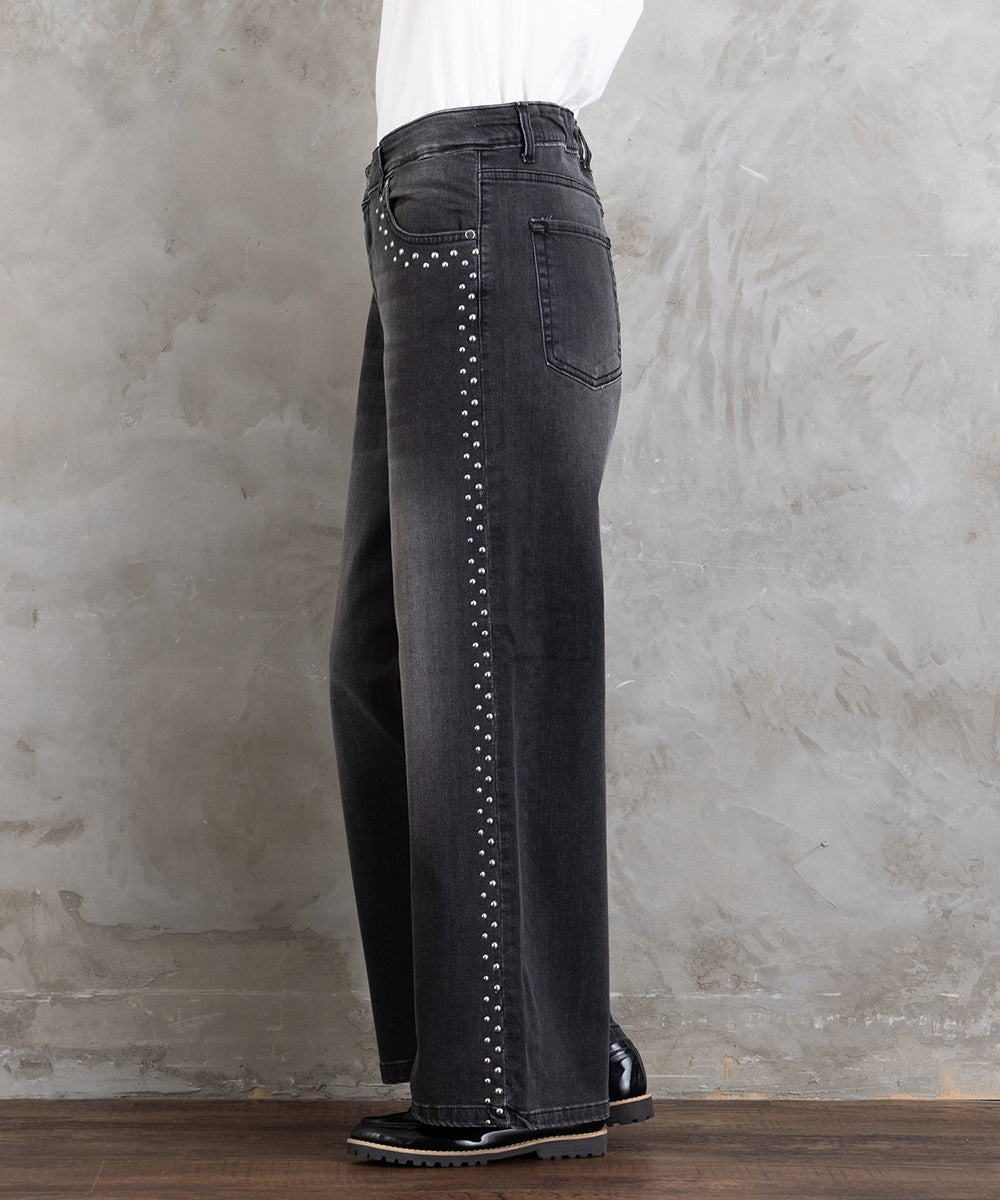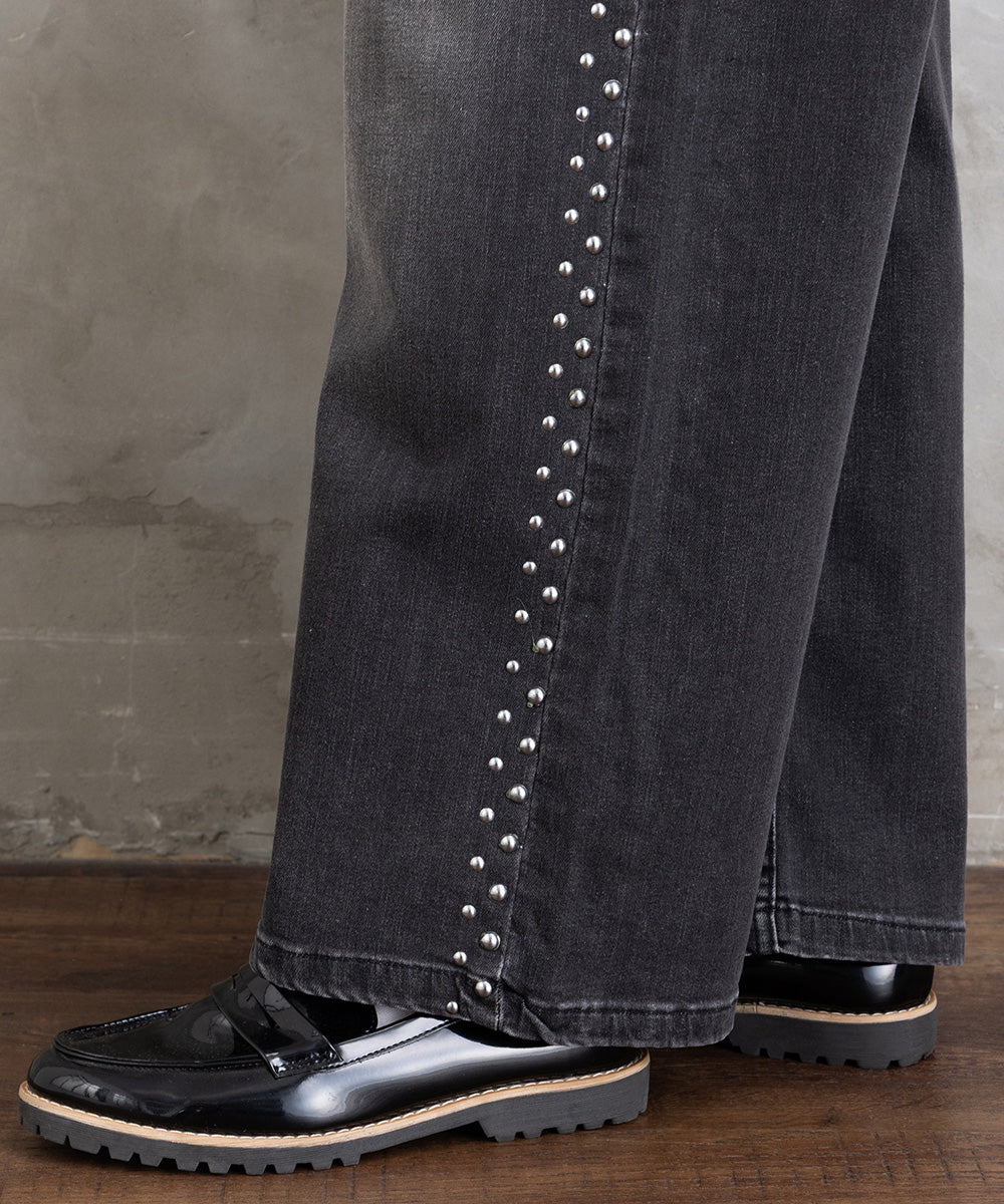 【シャープな印象をつくる、スタッズデニム】