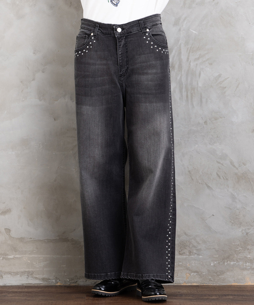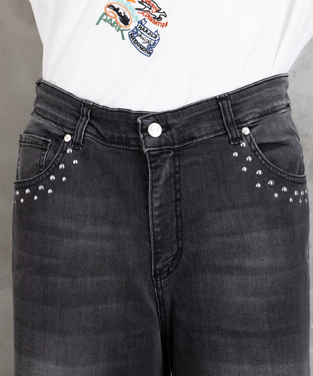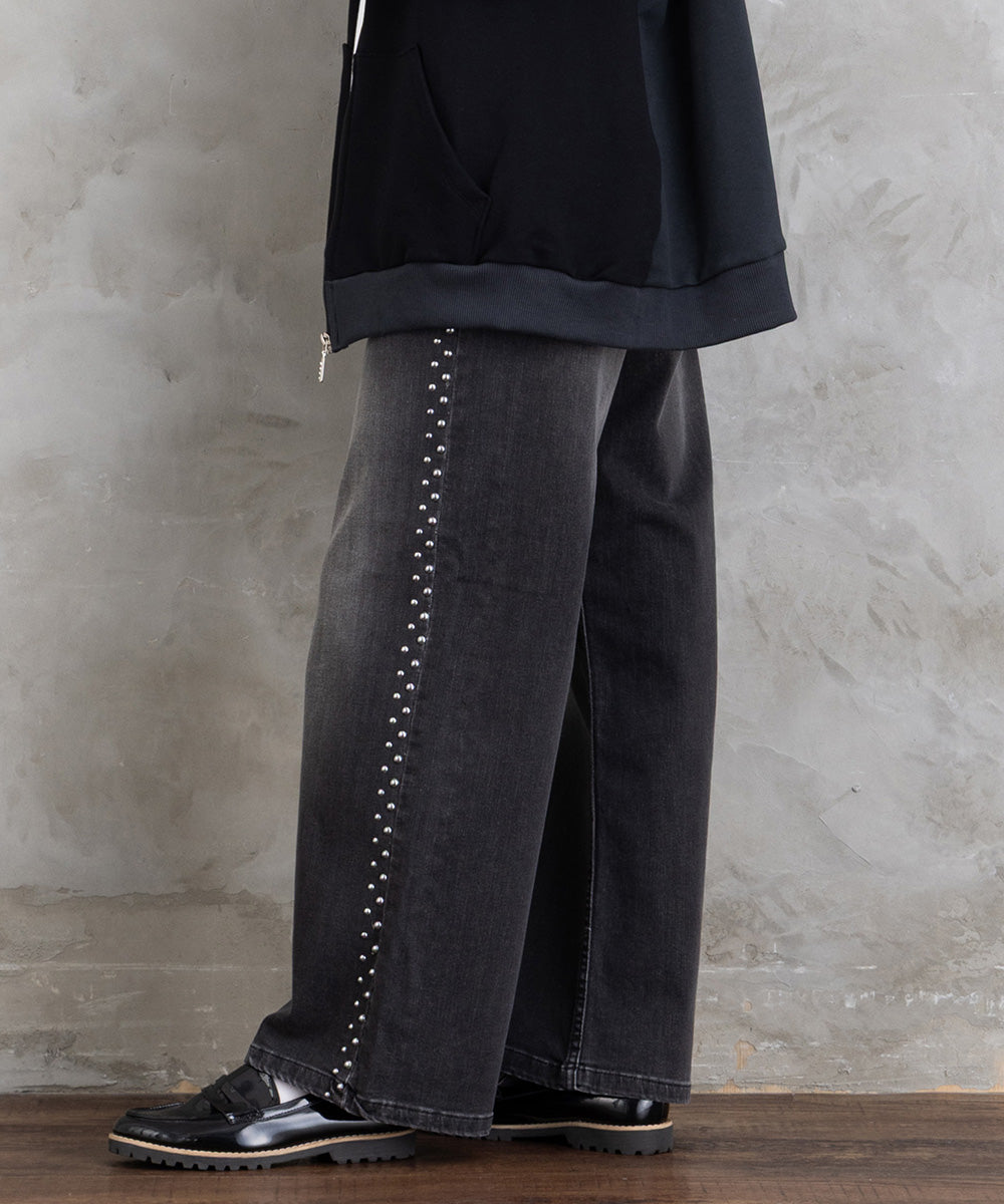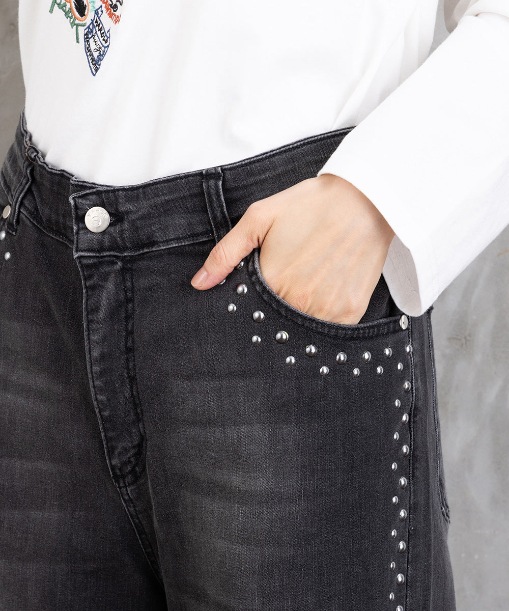 【シャープな印象をつくる、スタッズデニム】