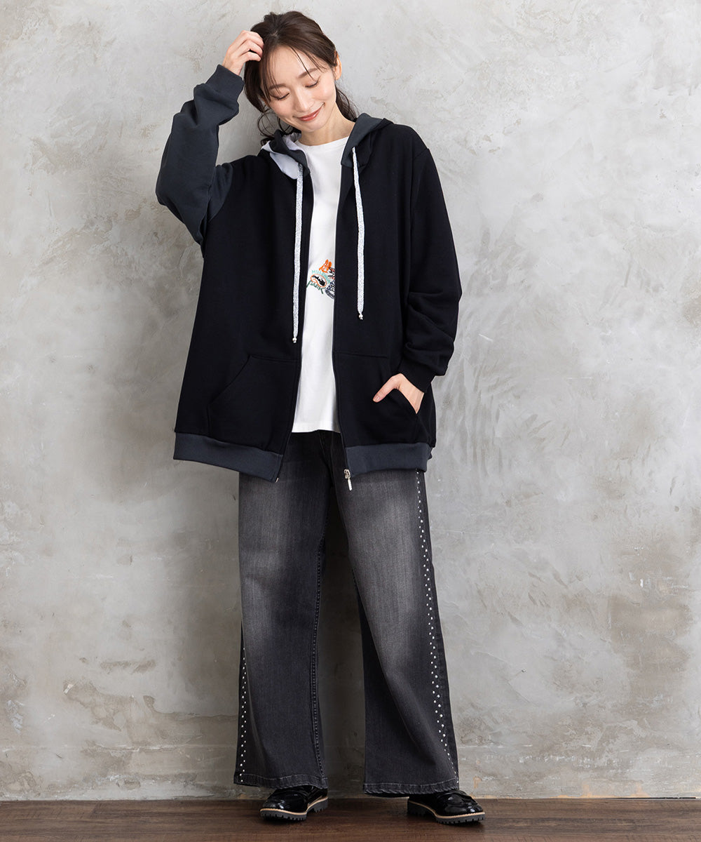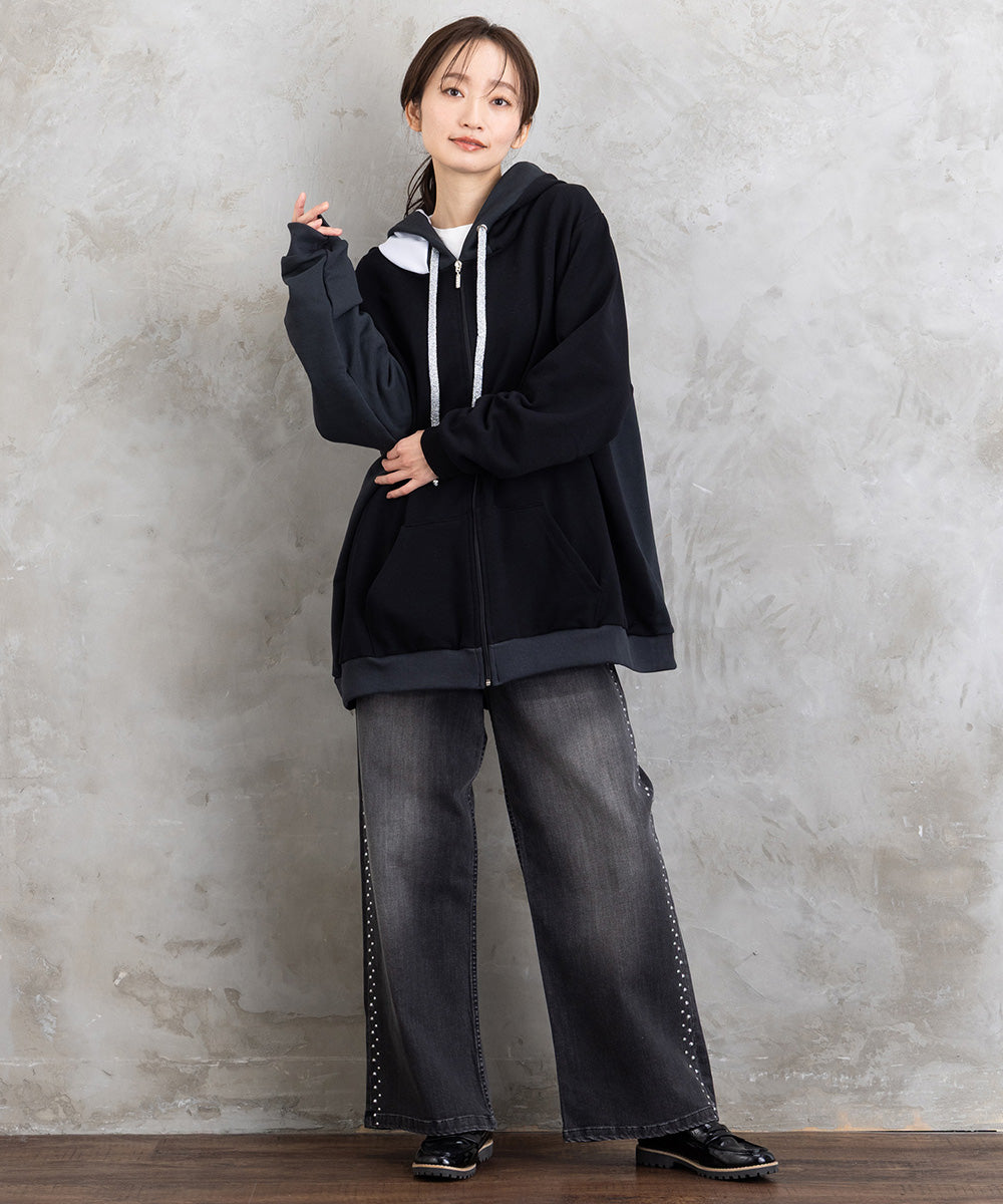 ・スタッズの縦ライン効果で脚長見え