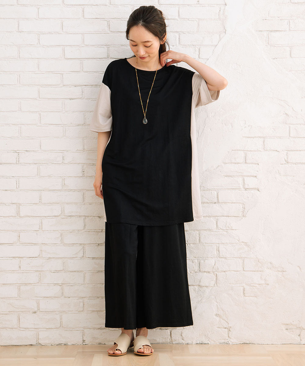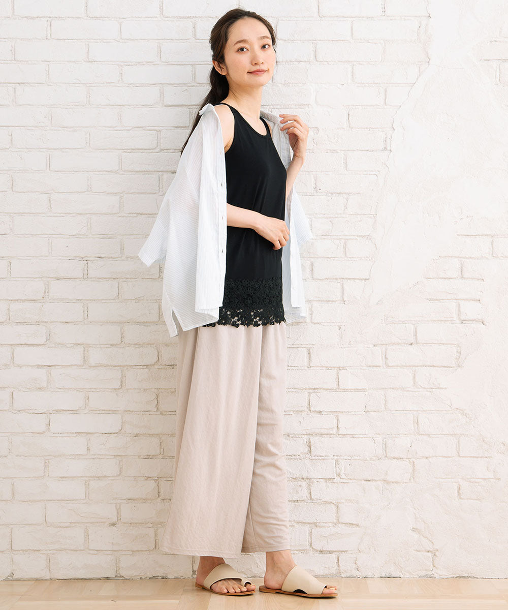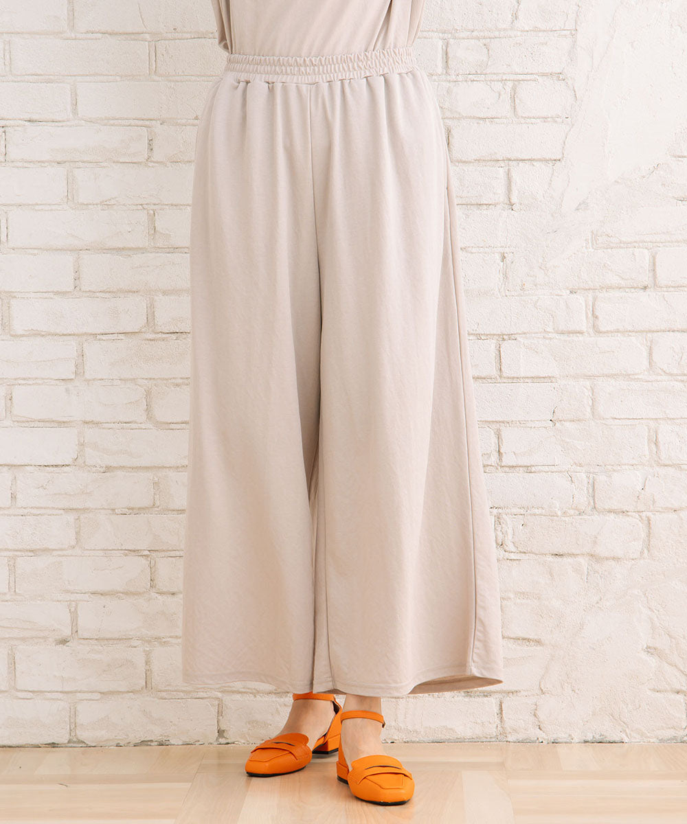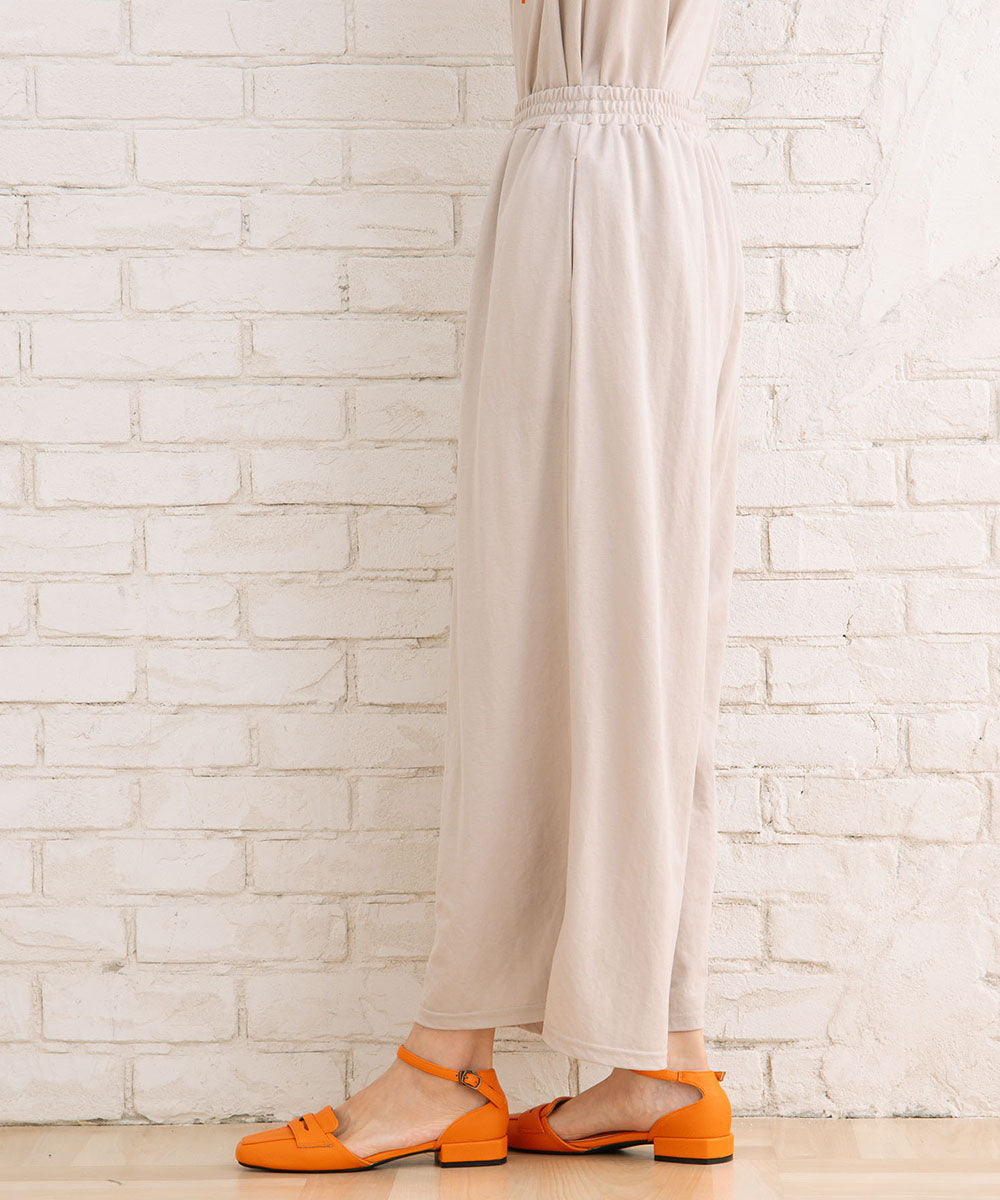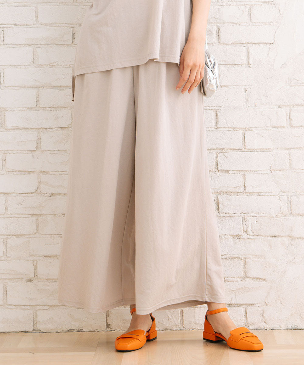 接触冷感素材を使用したリラクシーワイドパンツ。