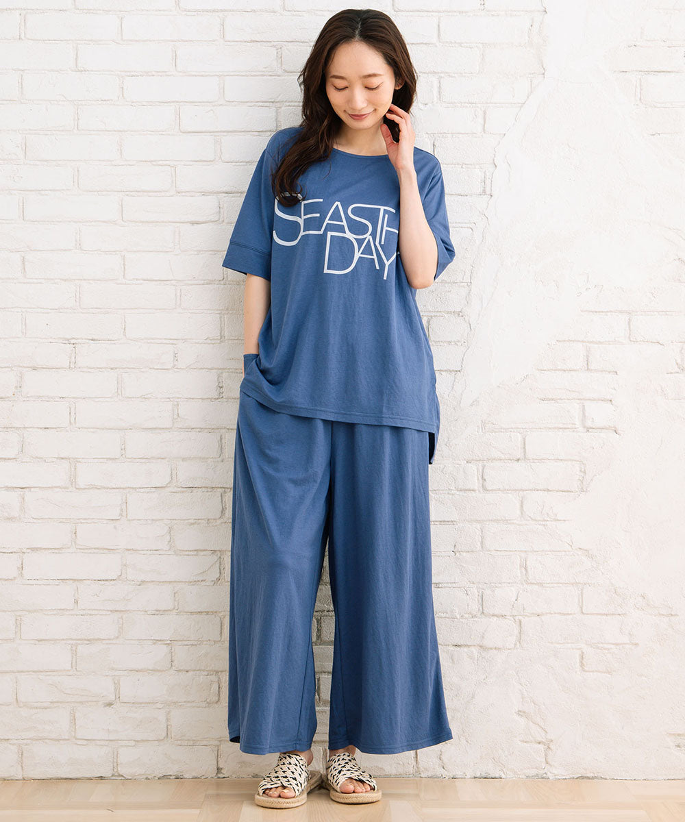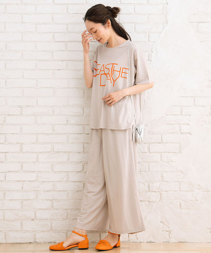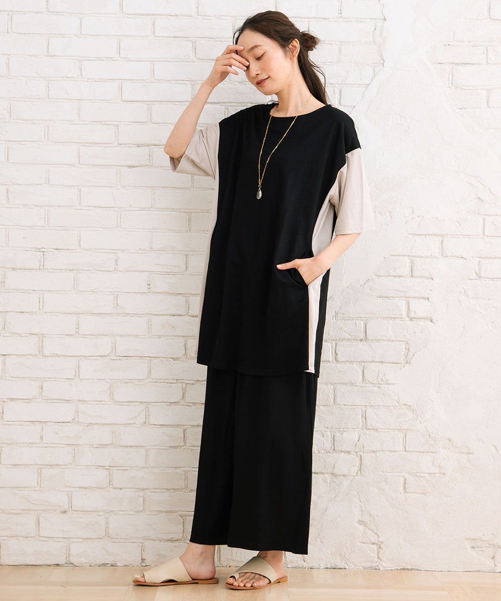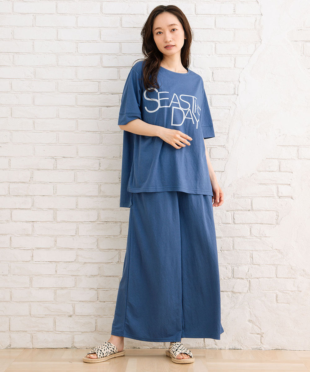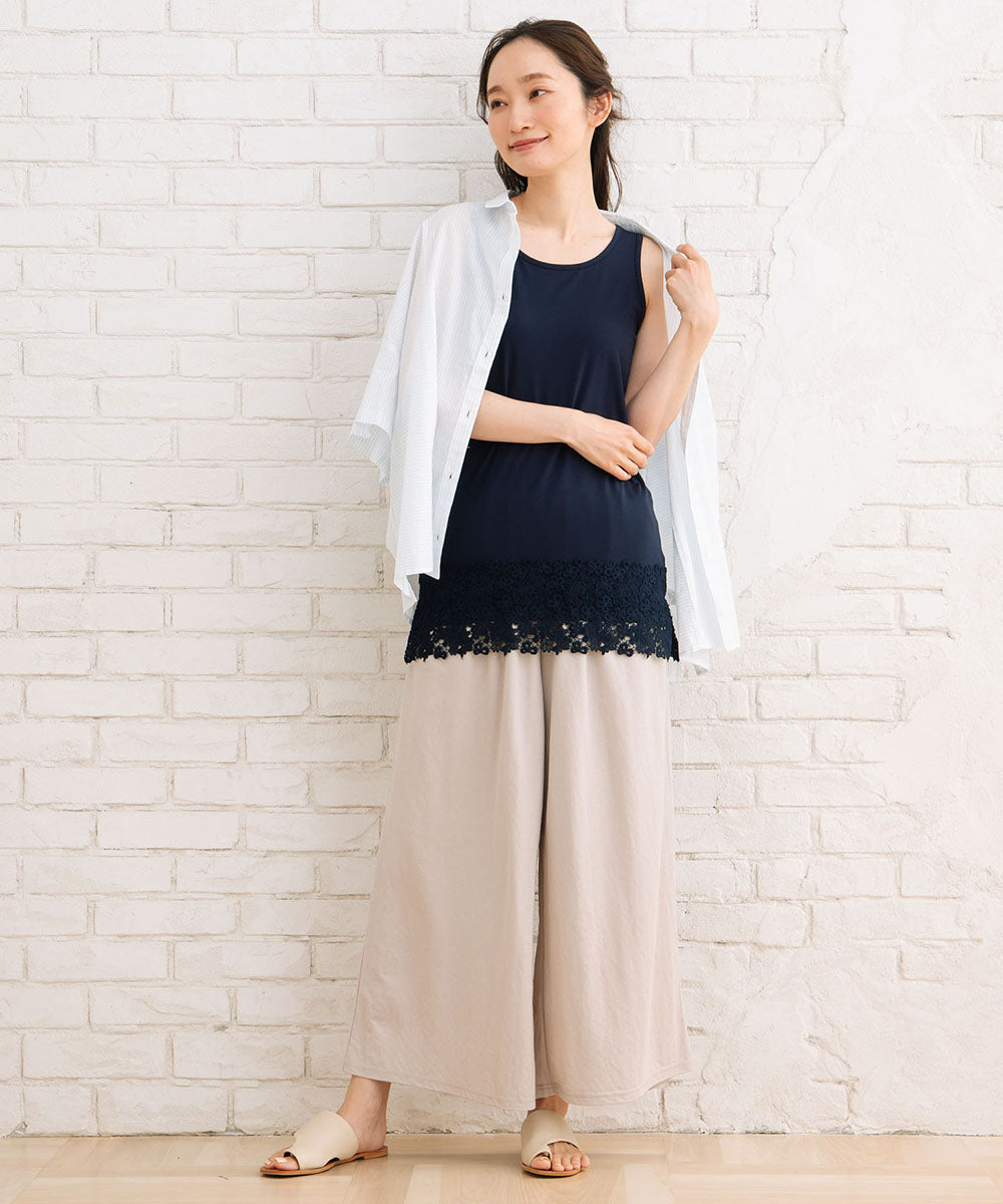 接触冷感素材を使用したリラクシーワイドパンツ。
