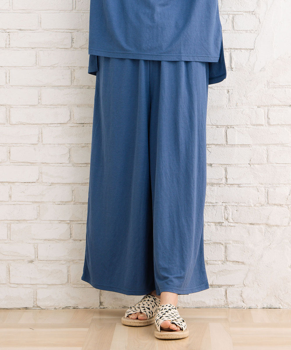 接触冷感素材を使用したリラクシーワイドパンツ。
