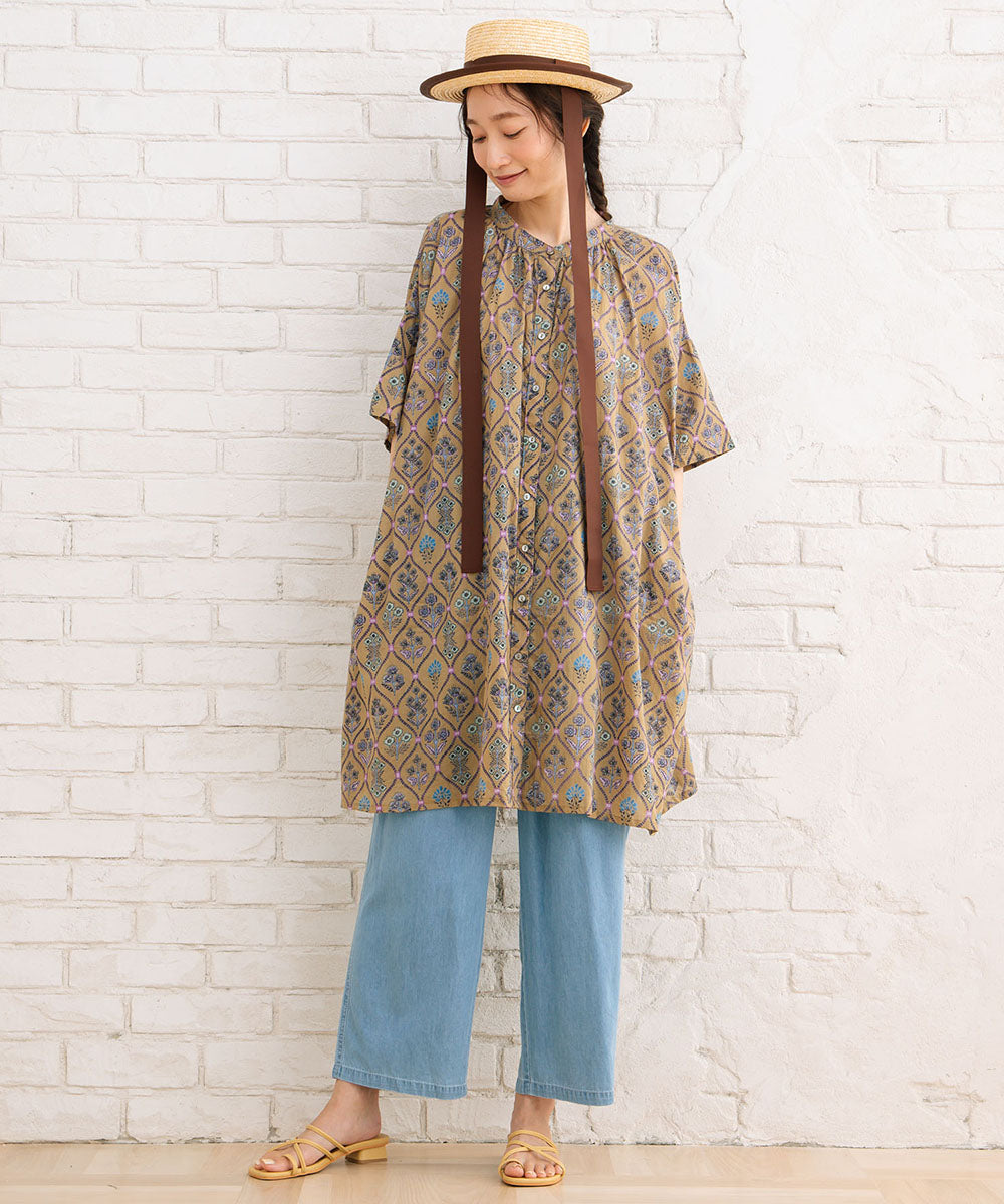 Tシャツやブラウスはもちろん、チュニックやワンピースなどの丈の長いアイテムと合わせても◎