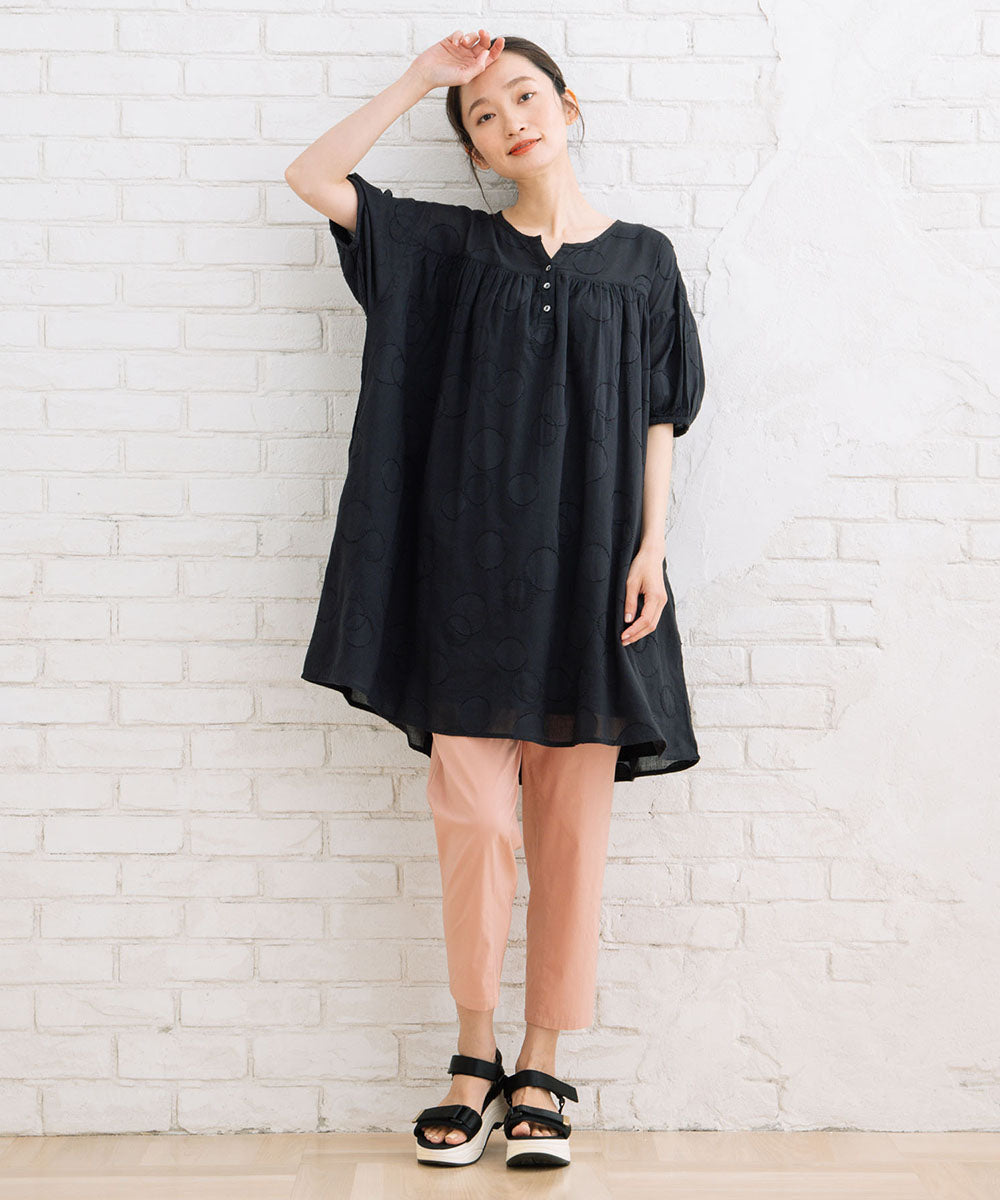 チュニック丈やブラウス、ワンピースなど様々なアイテムとの相性が◎