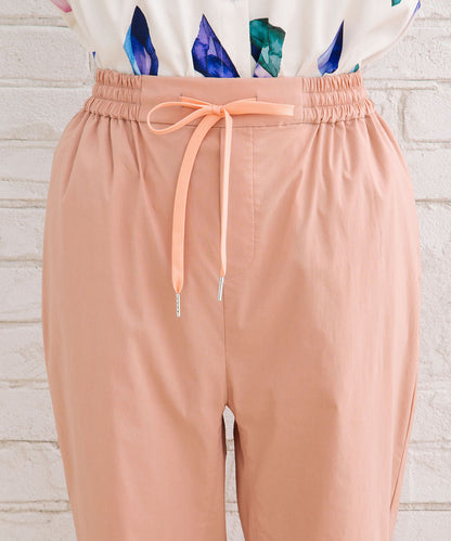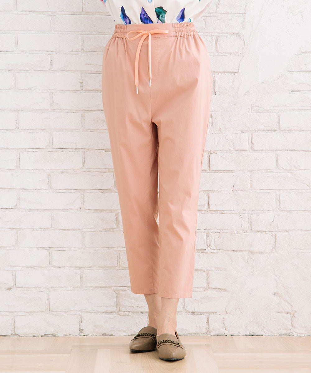 ストレッチの効いた素材と、ウエストはゴム仕様で、ウエストの紐は調節でき、快適でストレスフリーな穿き心地に。