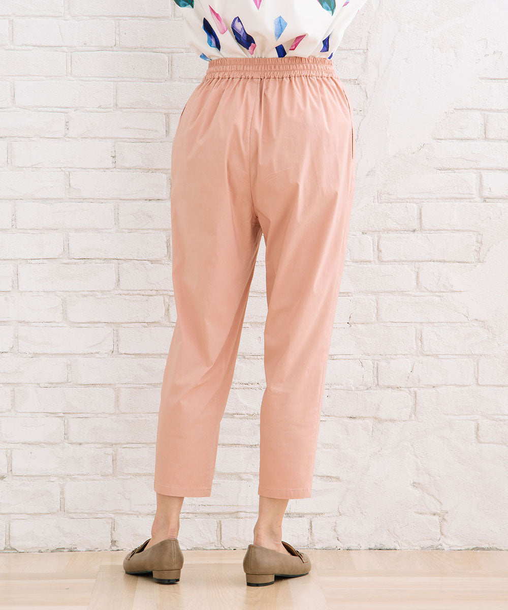 ドライタッチで軽やかな素材感、すっきりとしたテーパードシルエットが魅力のハイテンションテーパードパンツ。