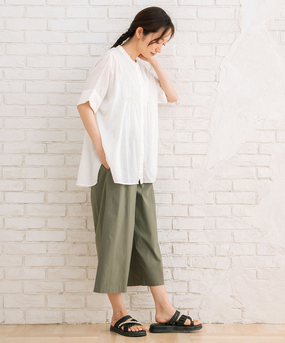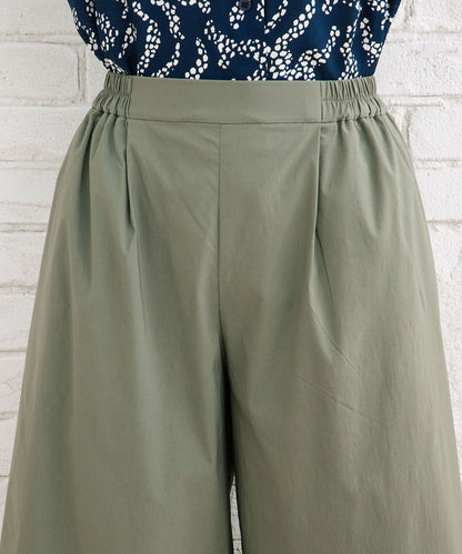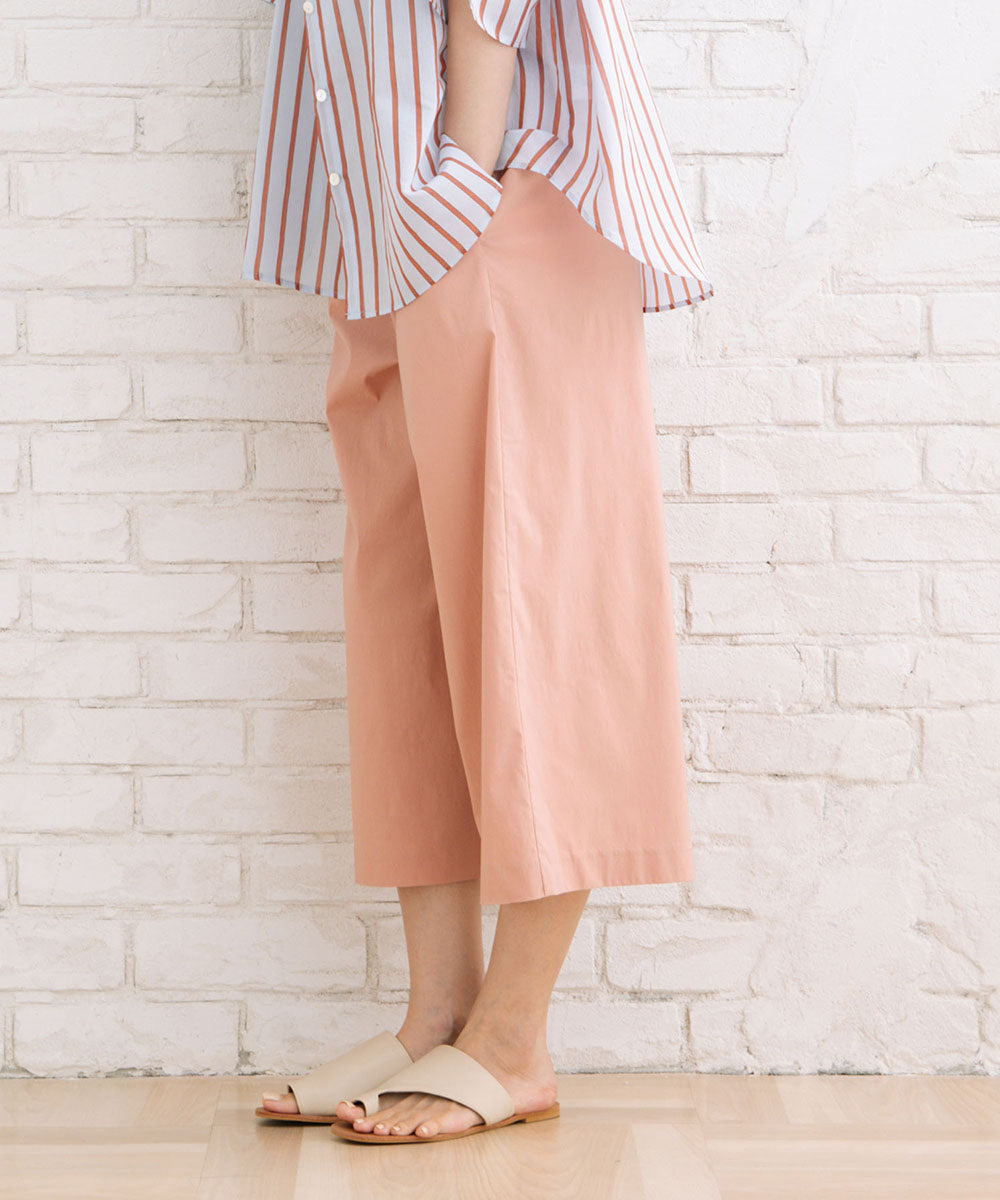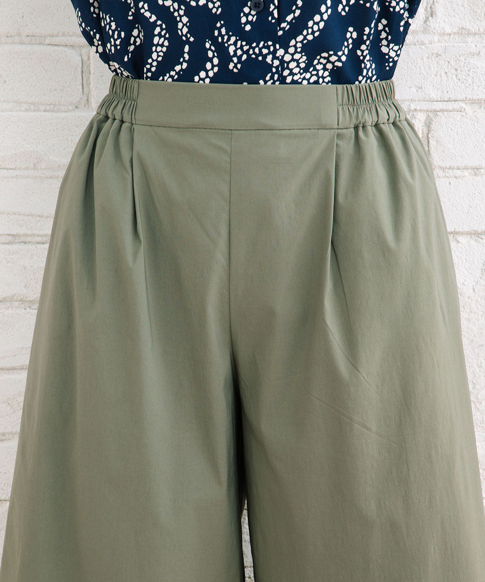 8分丈のバランスとタック入りのウエストデザインが、気になる体型を自然にカバーしながらきれいな落ち感を演出します。