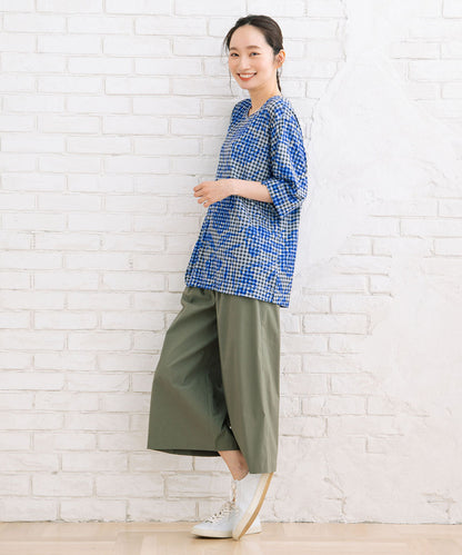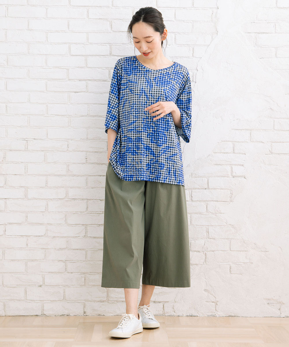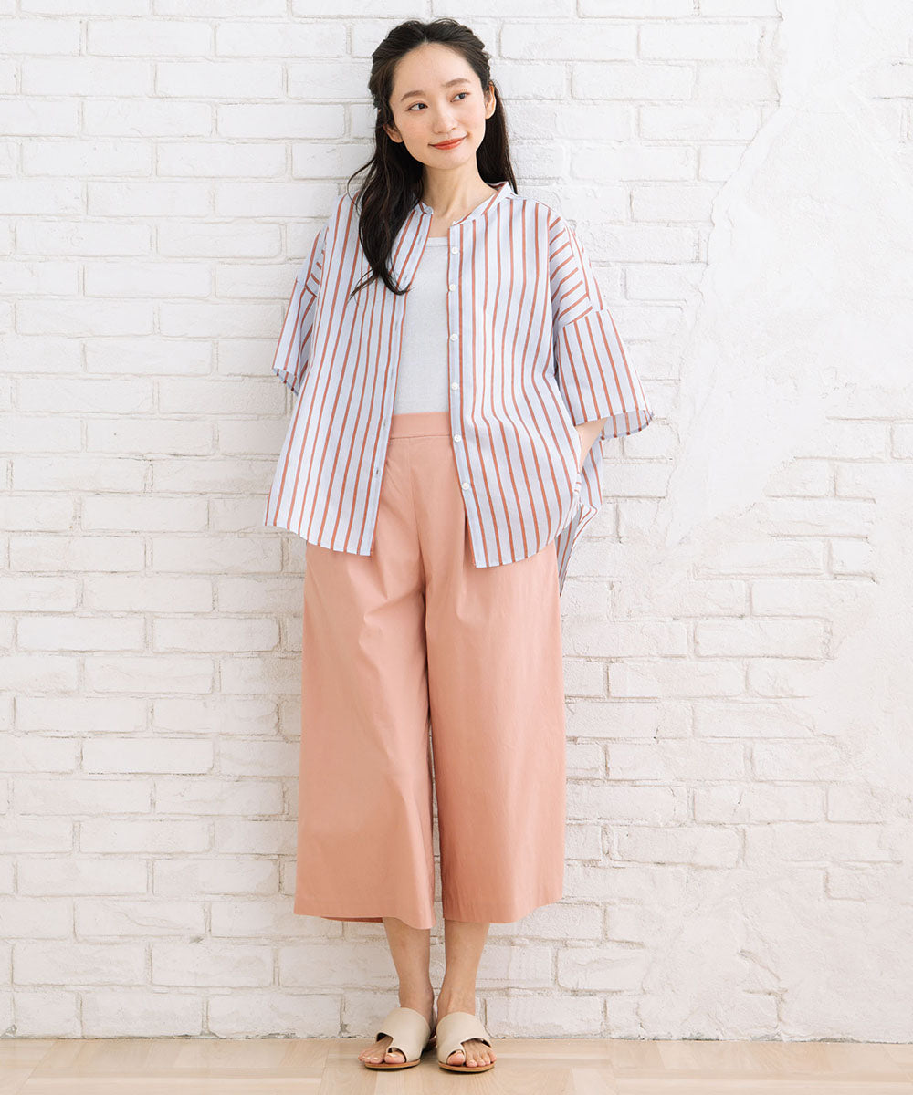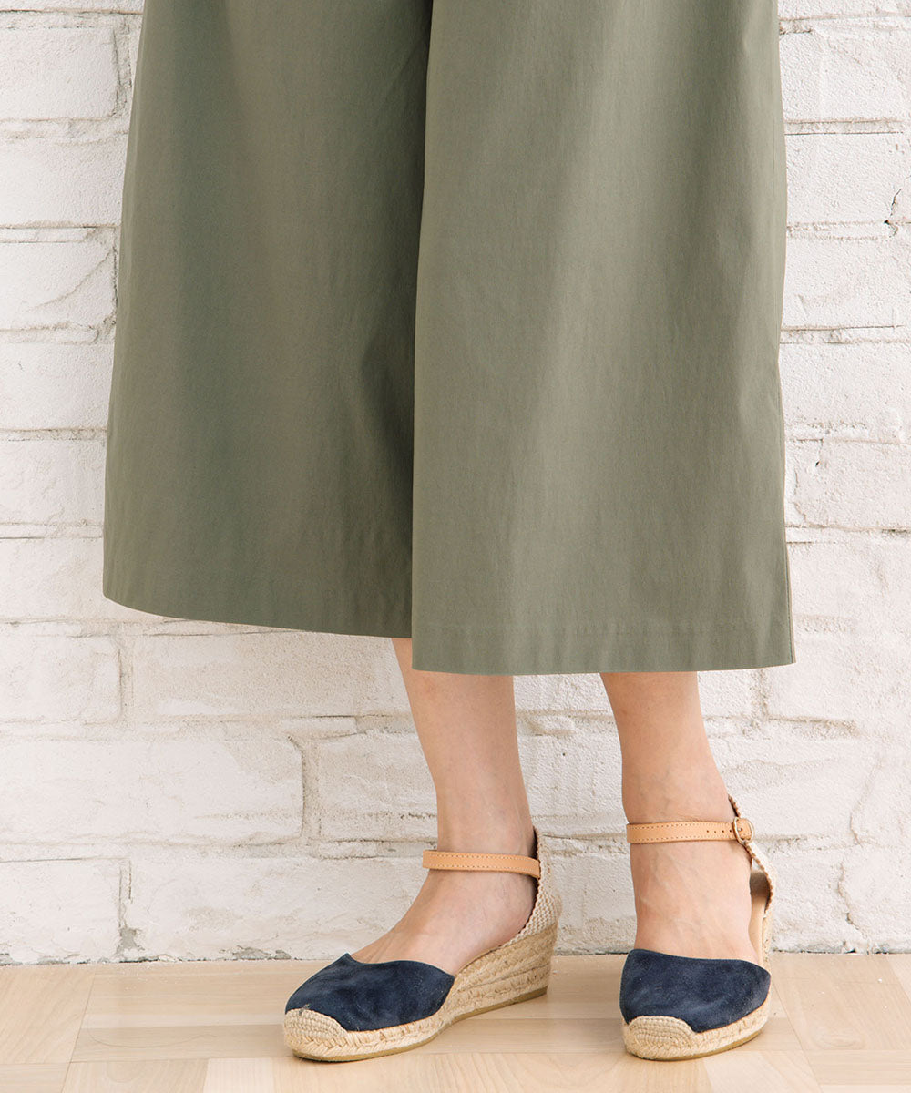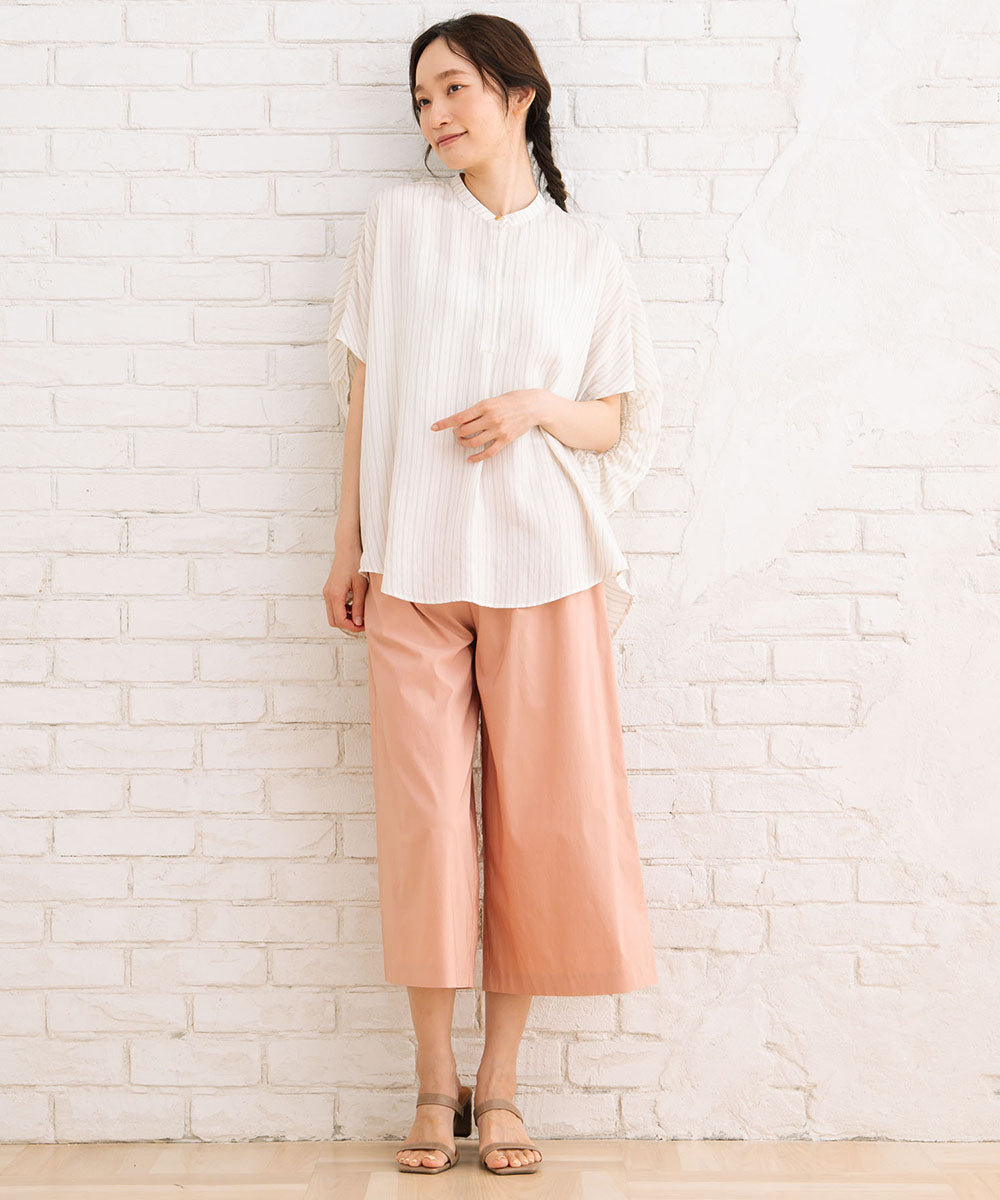 8分丈のバランスとタック入りのウエストデザインが、気になる体型を自然にカバーしながらきれいな落ち感を演出します。