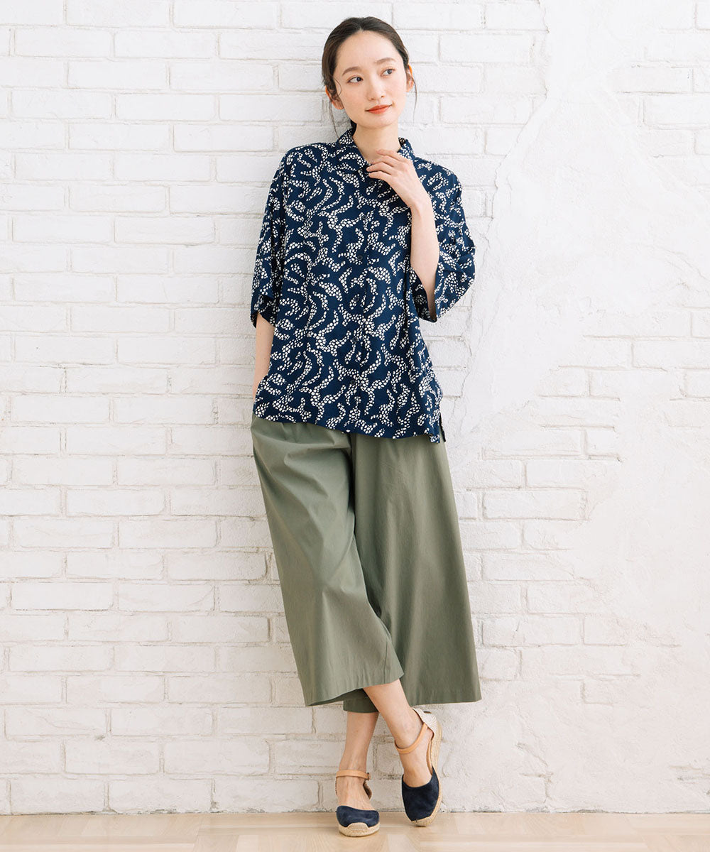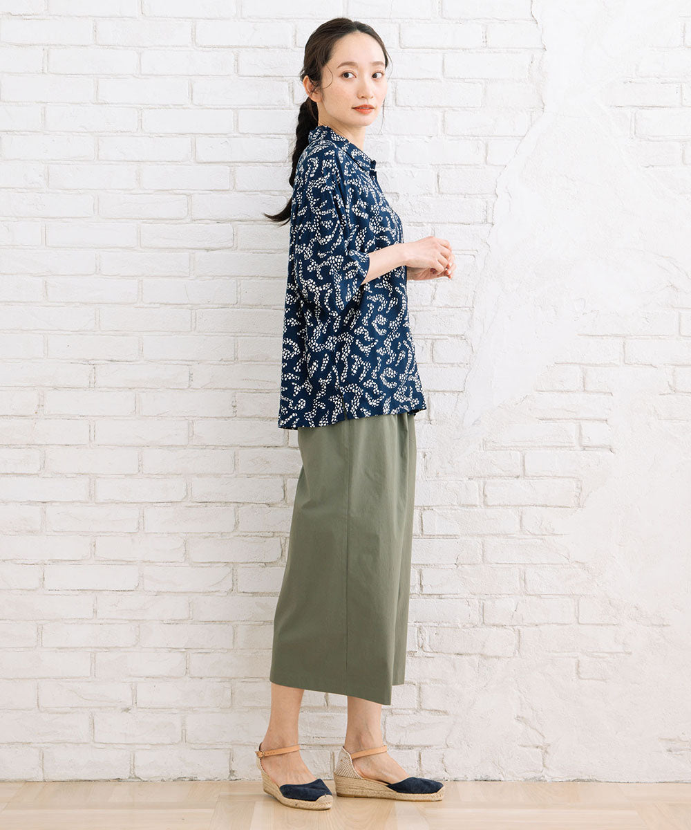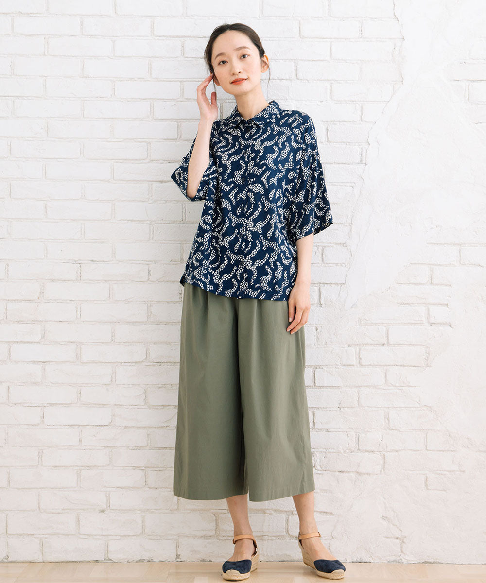 柄ブラウスやTシャツと合わせるだけで、こなれ感のあるリラックスコーデが完成。