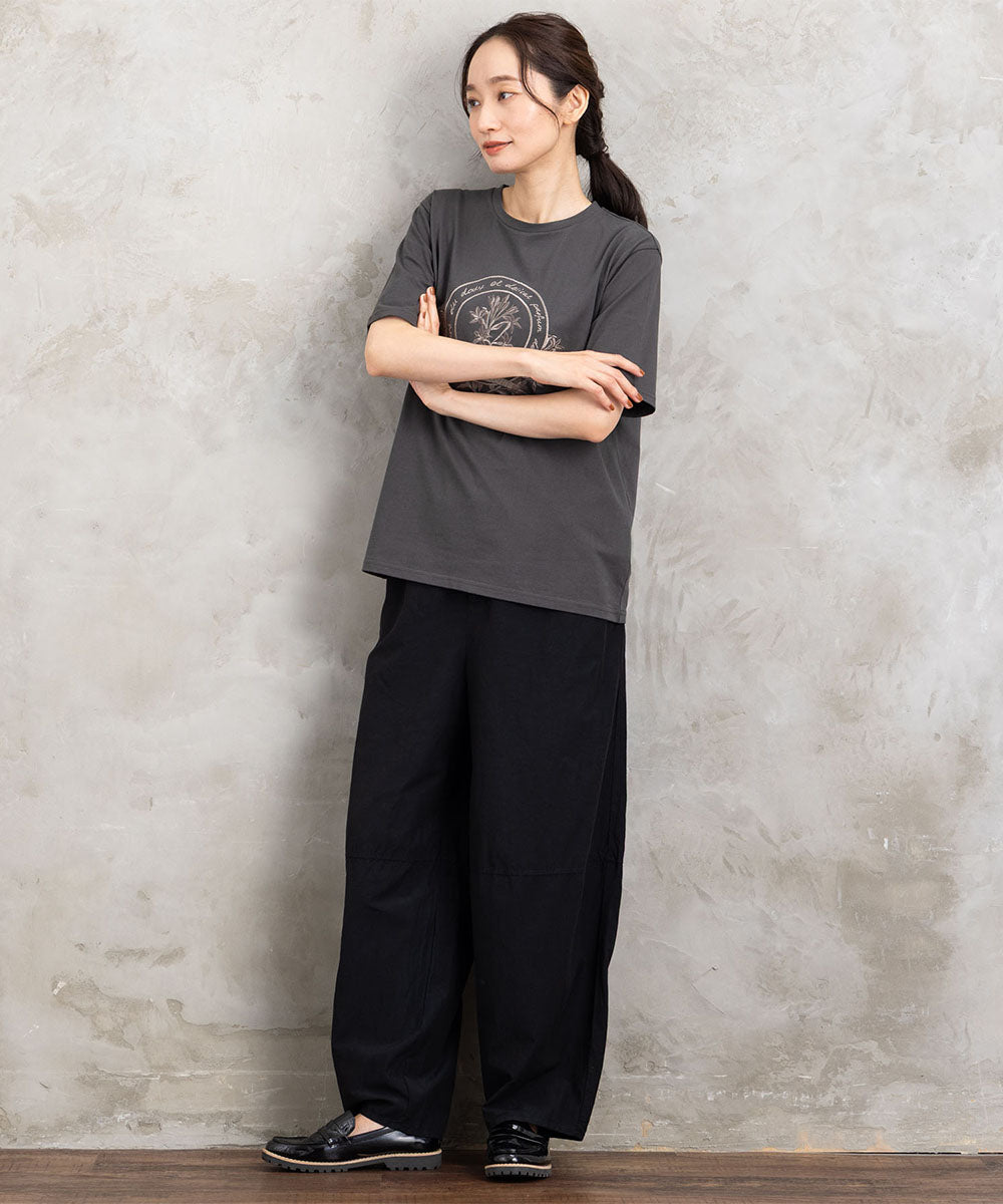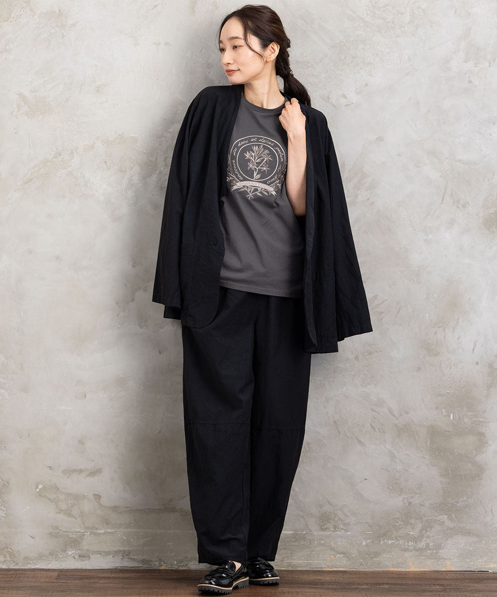 ・デザインポイント:表情感のある生地、ウエストゴム、ゆとりのあるシルエット