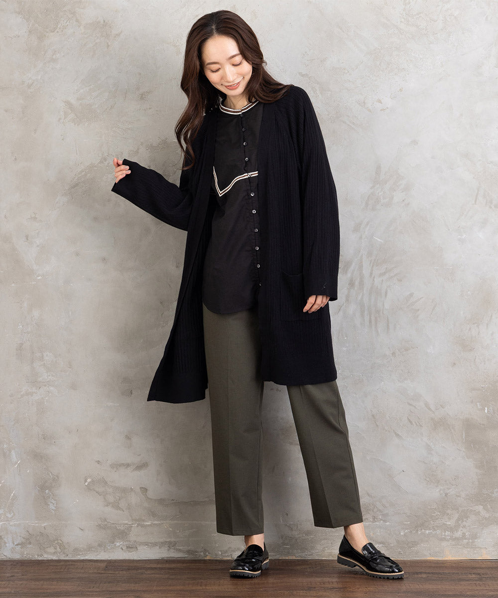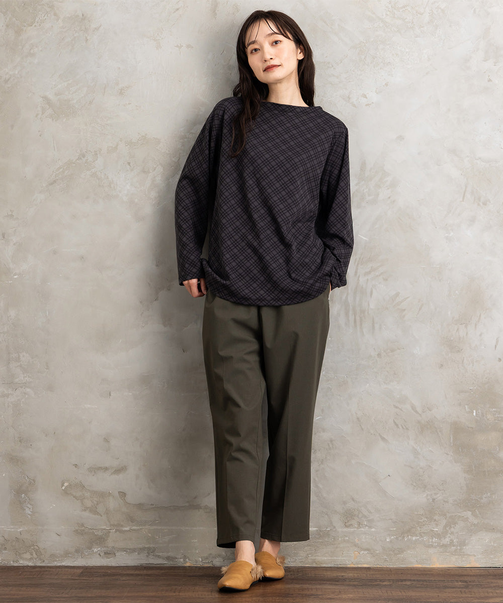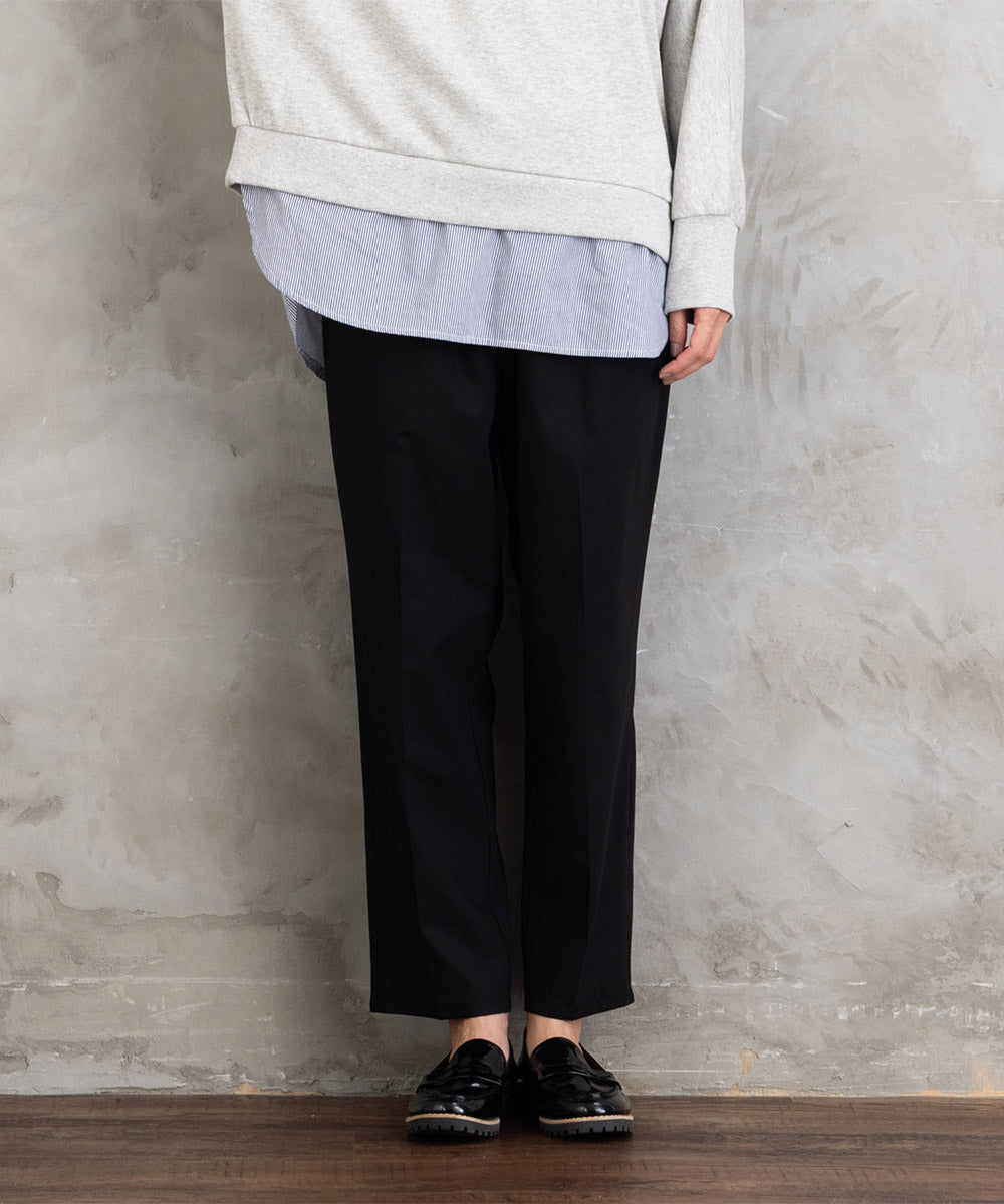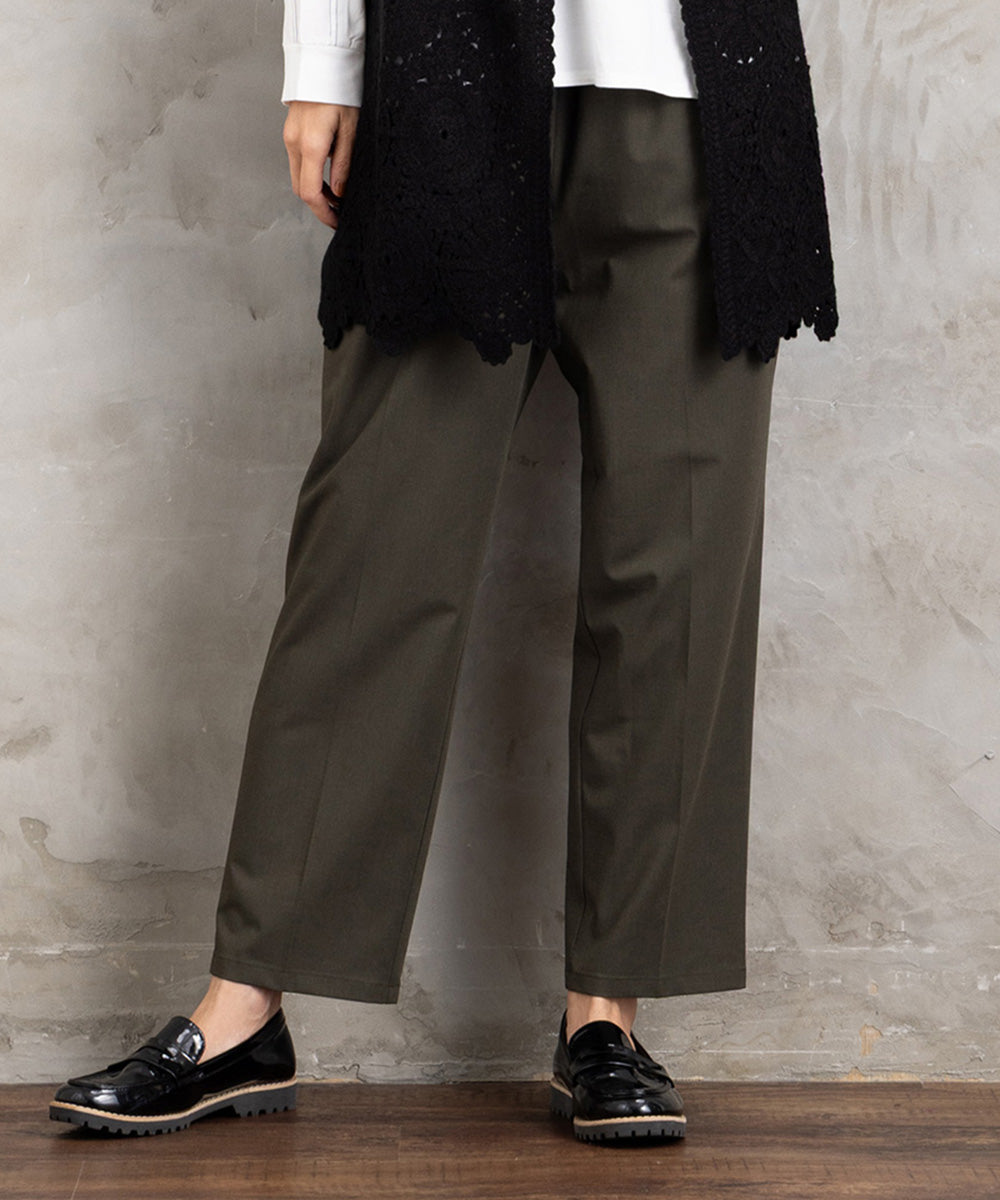 センタープレスが脚のラインをすっきりと見せ、大人のきれいめスタイルに仕上げます。