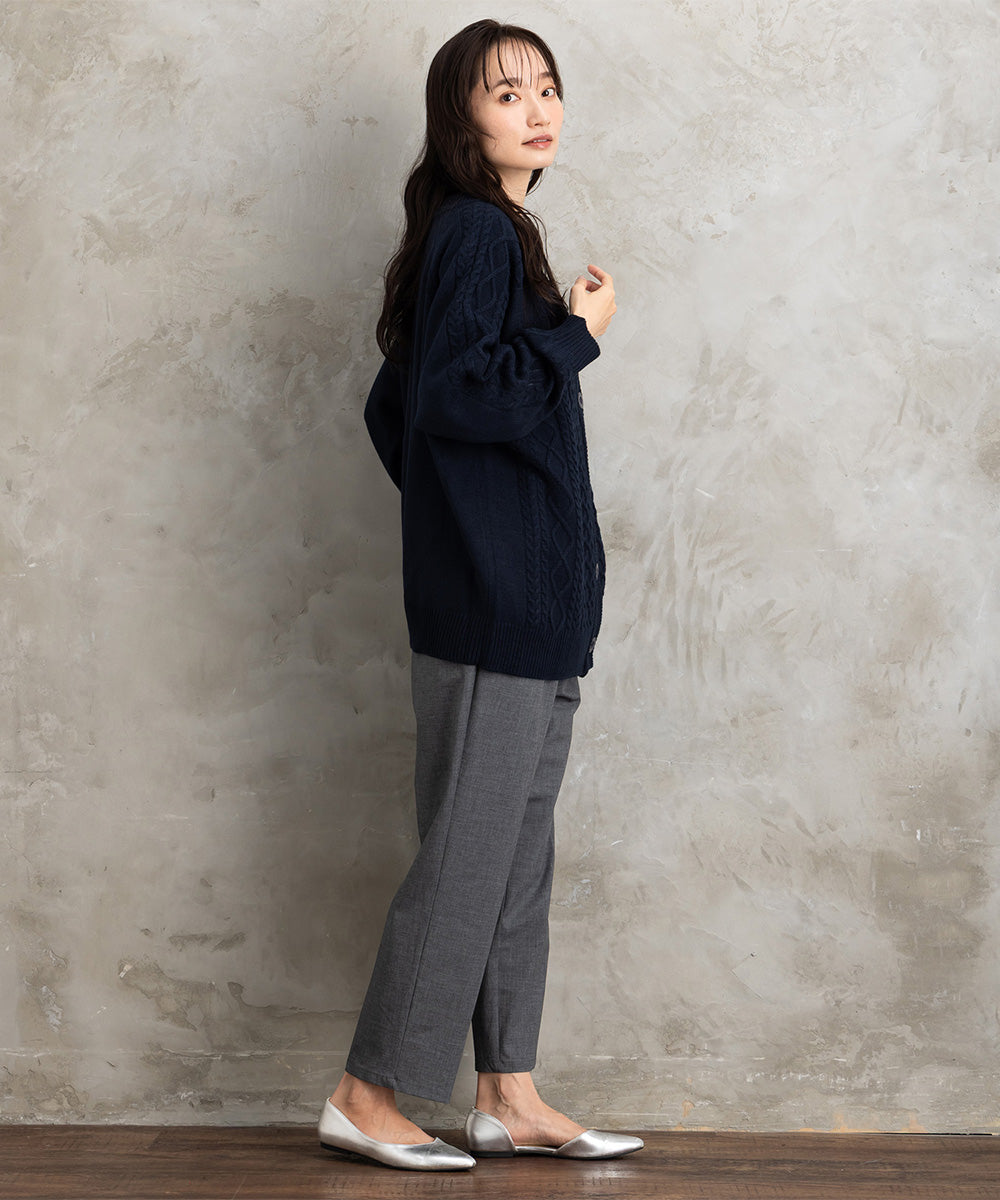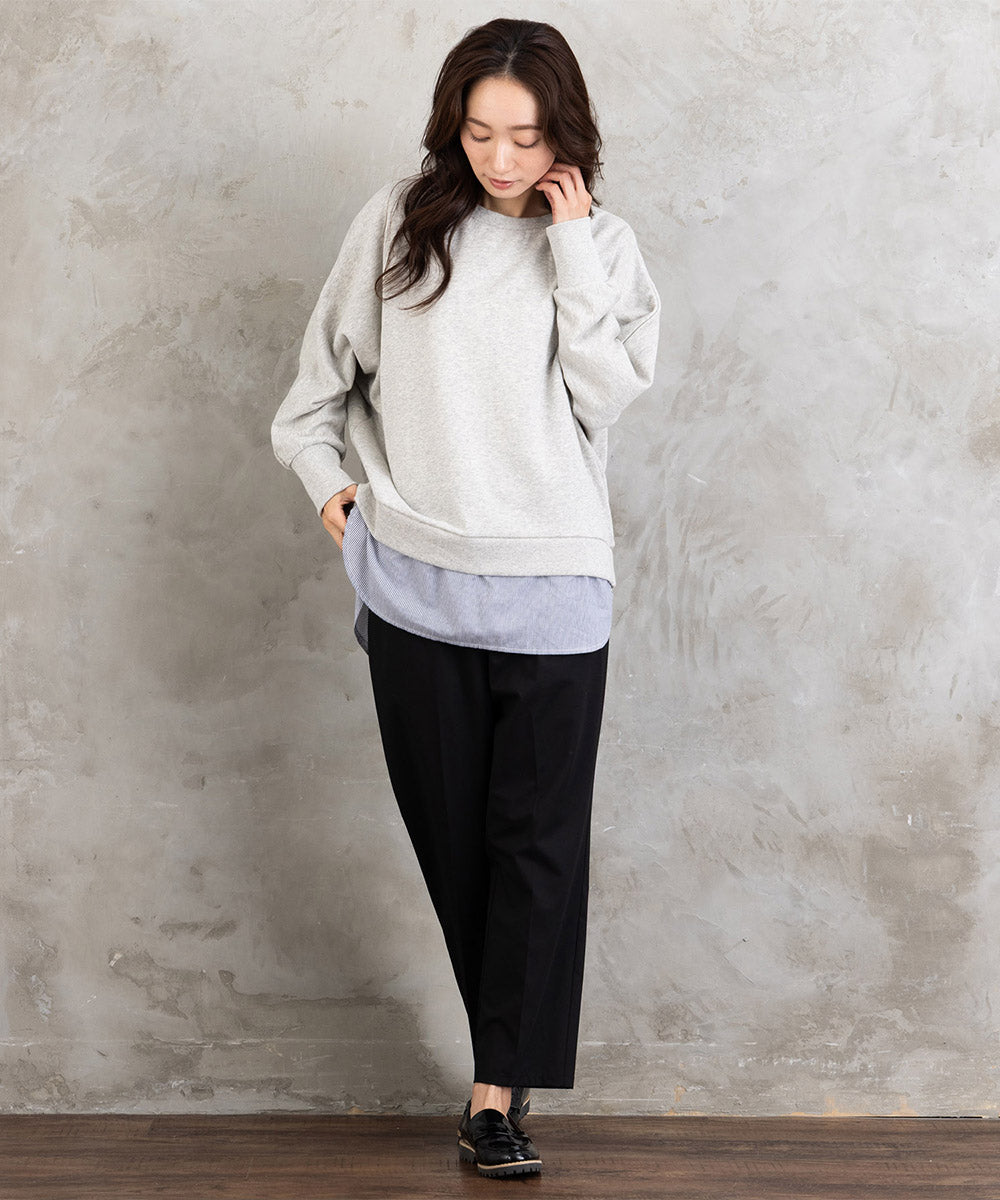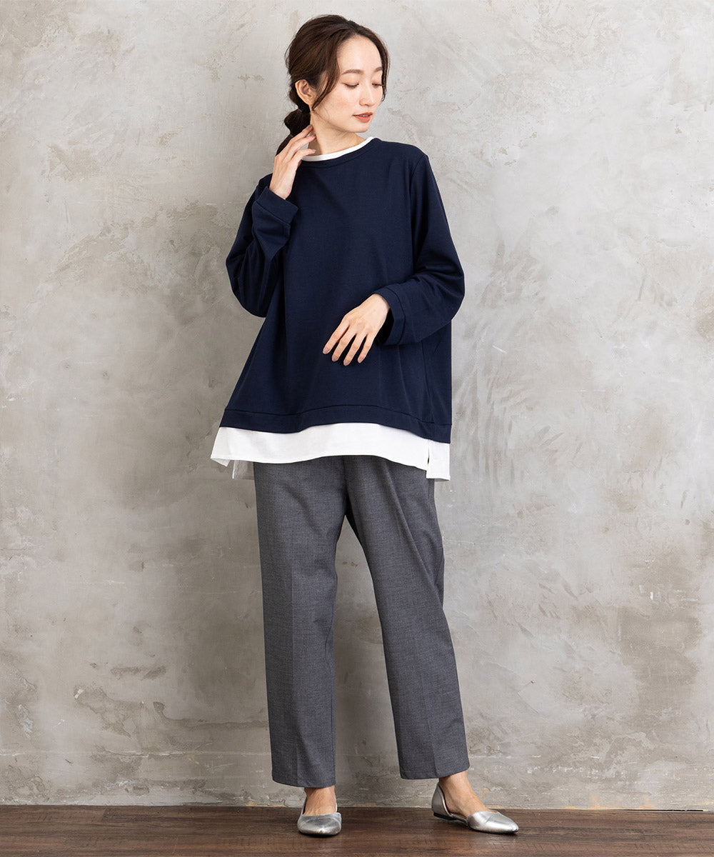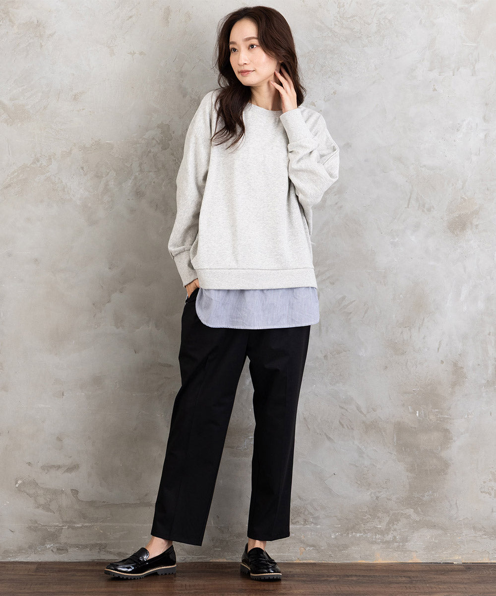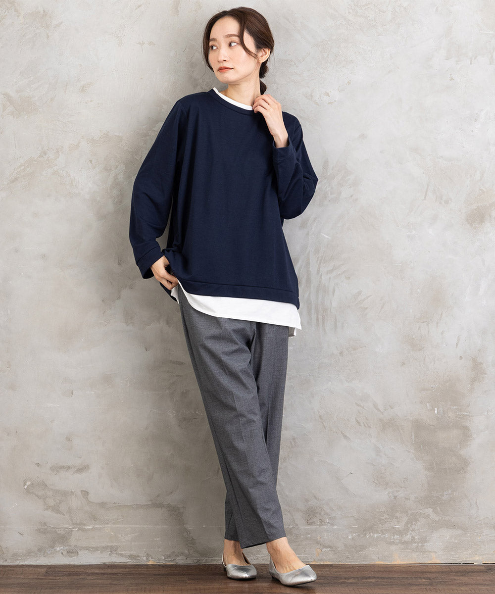 センタープレスが脚のラインをすっきりと見せ、大人のきれいめスタイルに仕上げます。