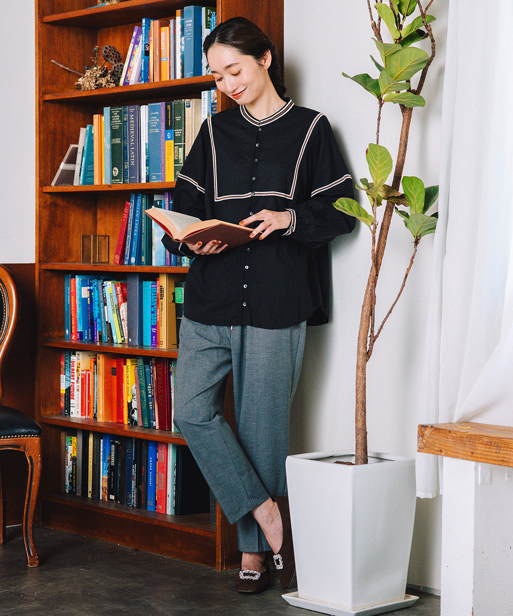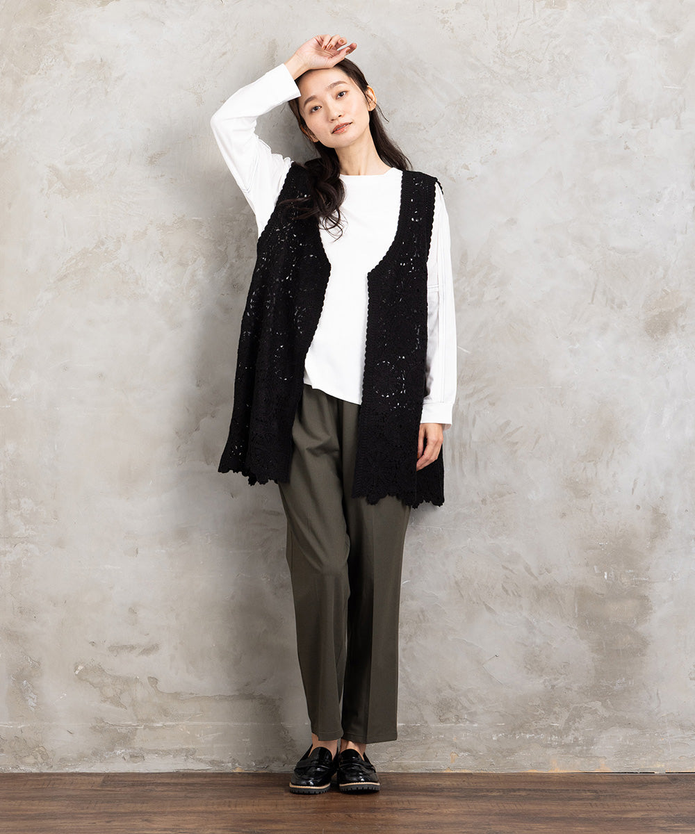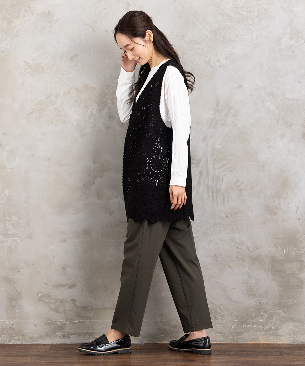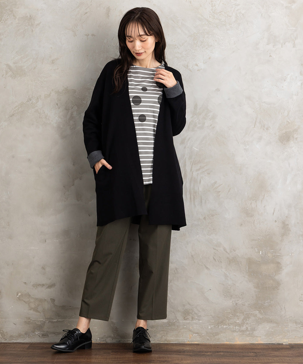 センタープレスが脚のラインをすっきりと見せ、大人のきれいめスタイルに仕上げます。