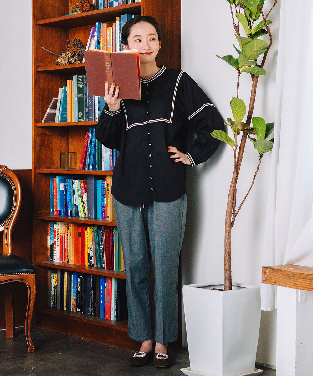 【美脚シルエットが叶う、トロピカルウールテーパードパンツ】