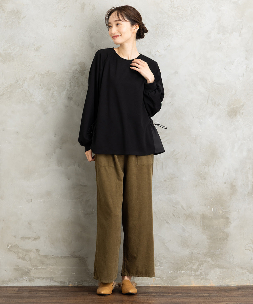 ウエストは総ゴム仕様で、リラックスした穿き心地ながらもすっきり見えが叶います。