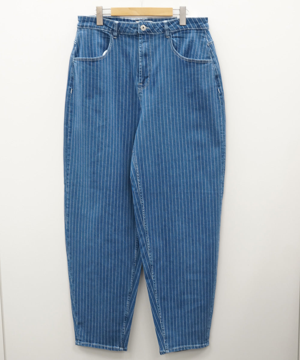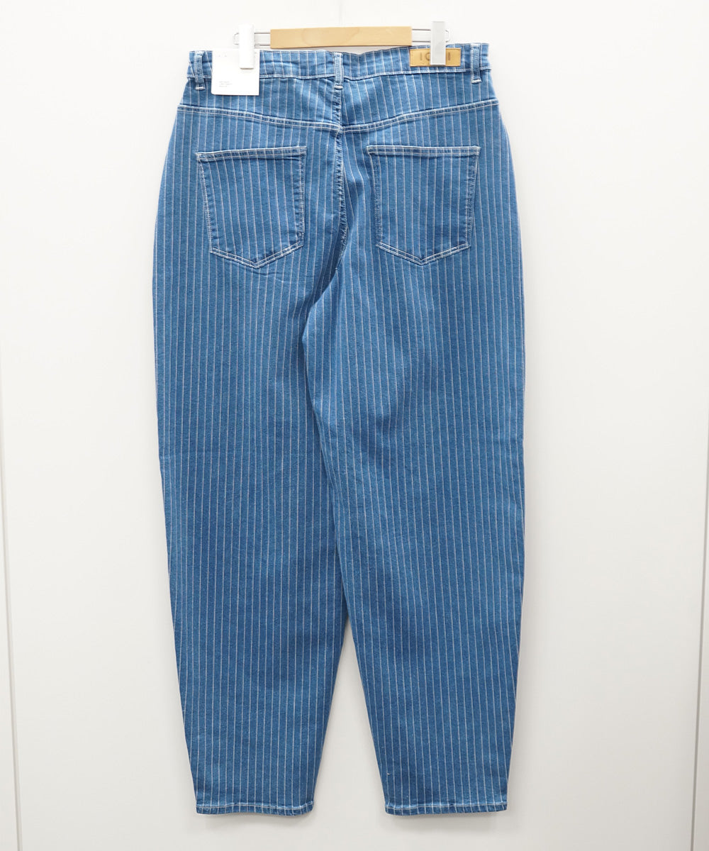 さりげないストライプ柄がアクセントになったカーブシルエットのデニム。
