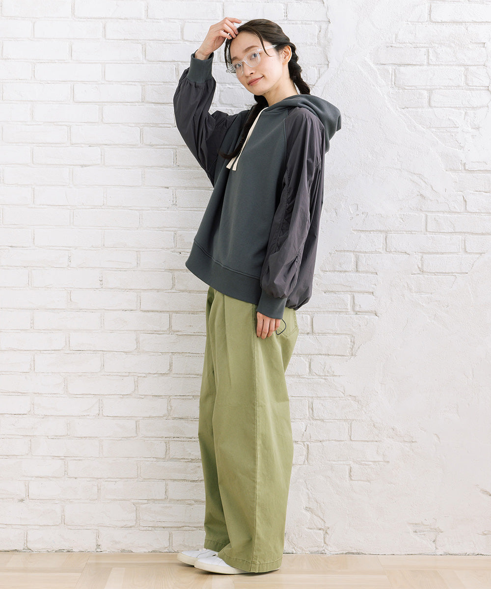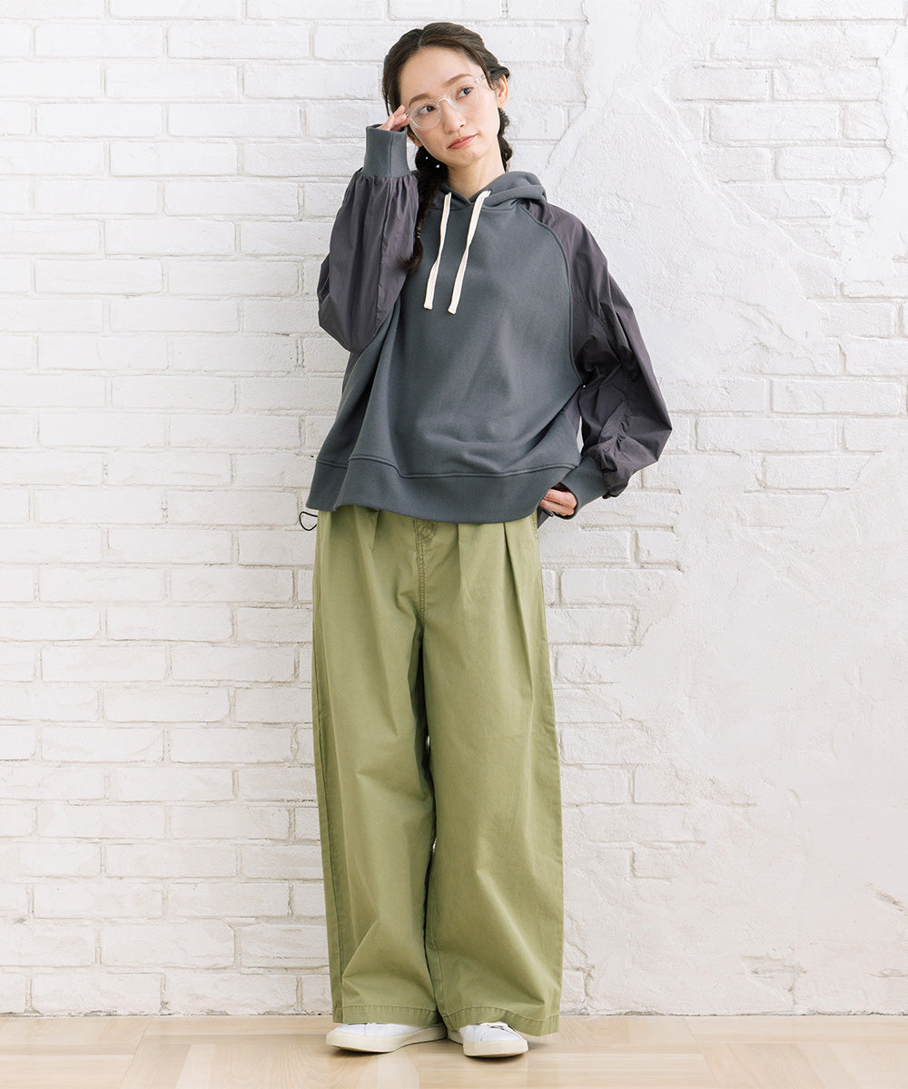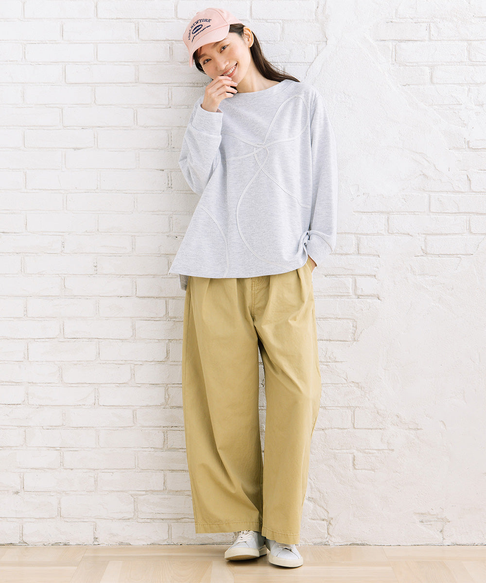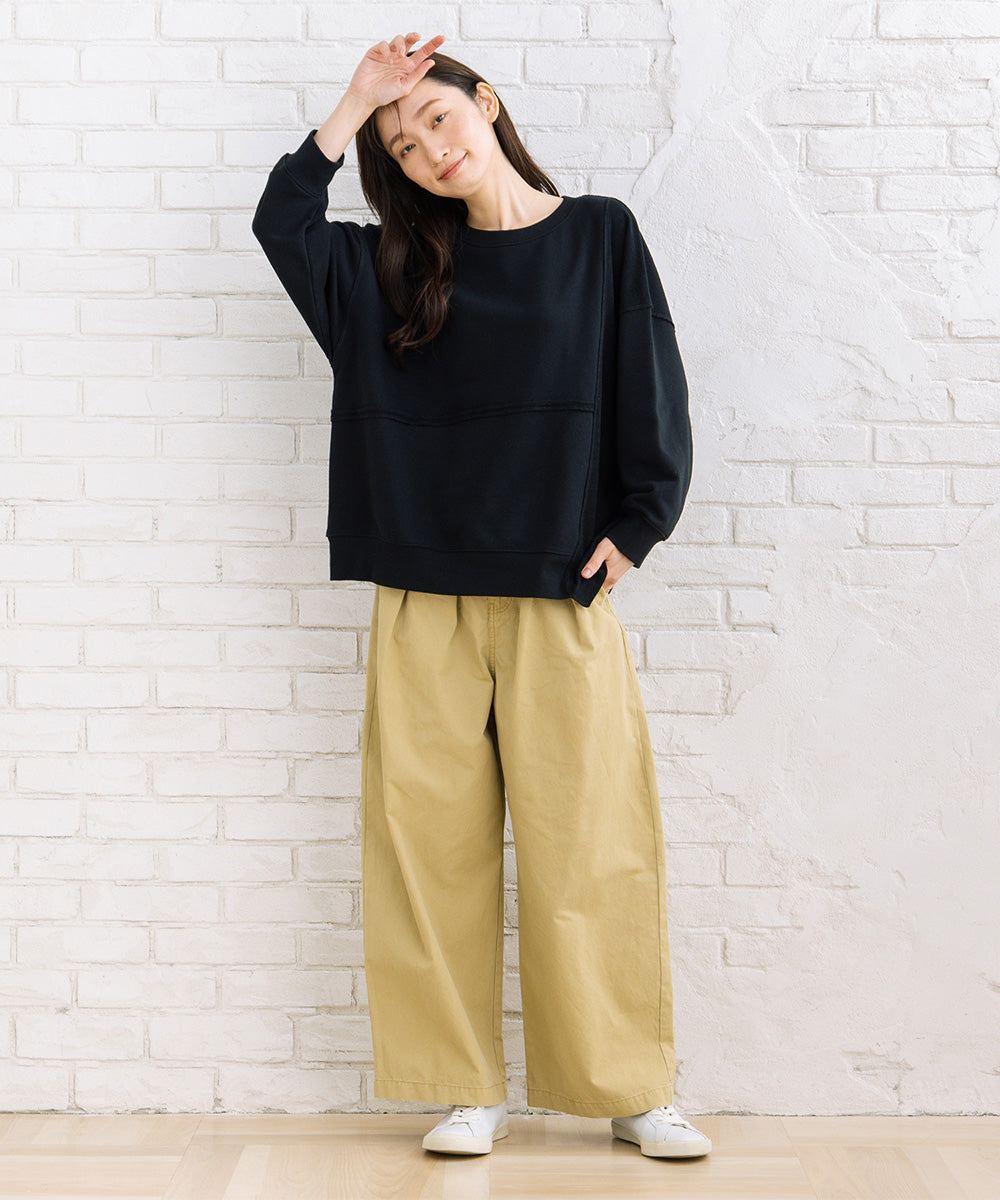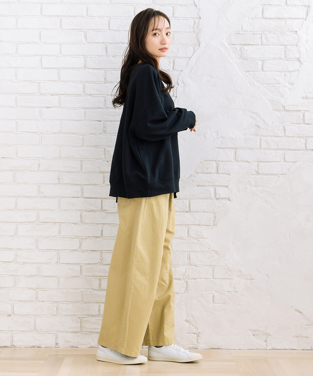 フロントタック入りのワイドシルエットで、ほどよく力の抜けた大人カジュアルが楽しめます。