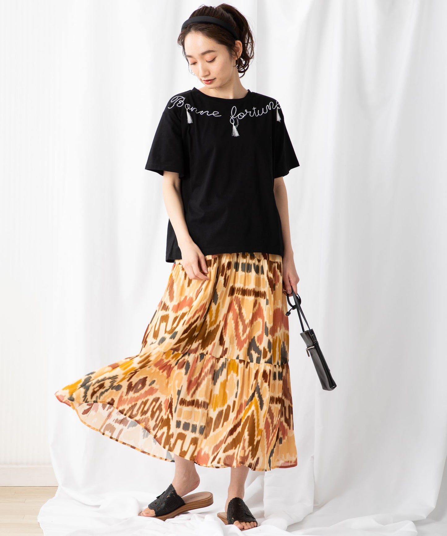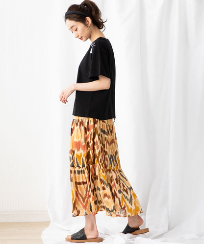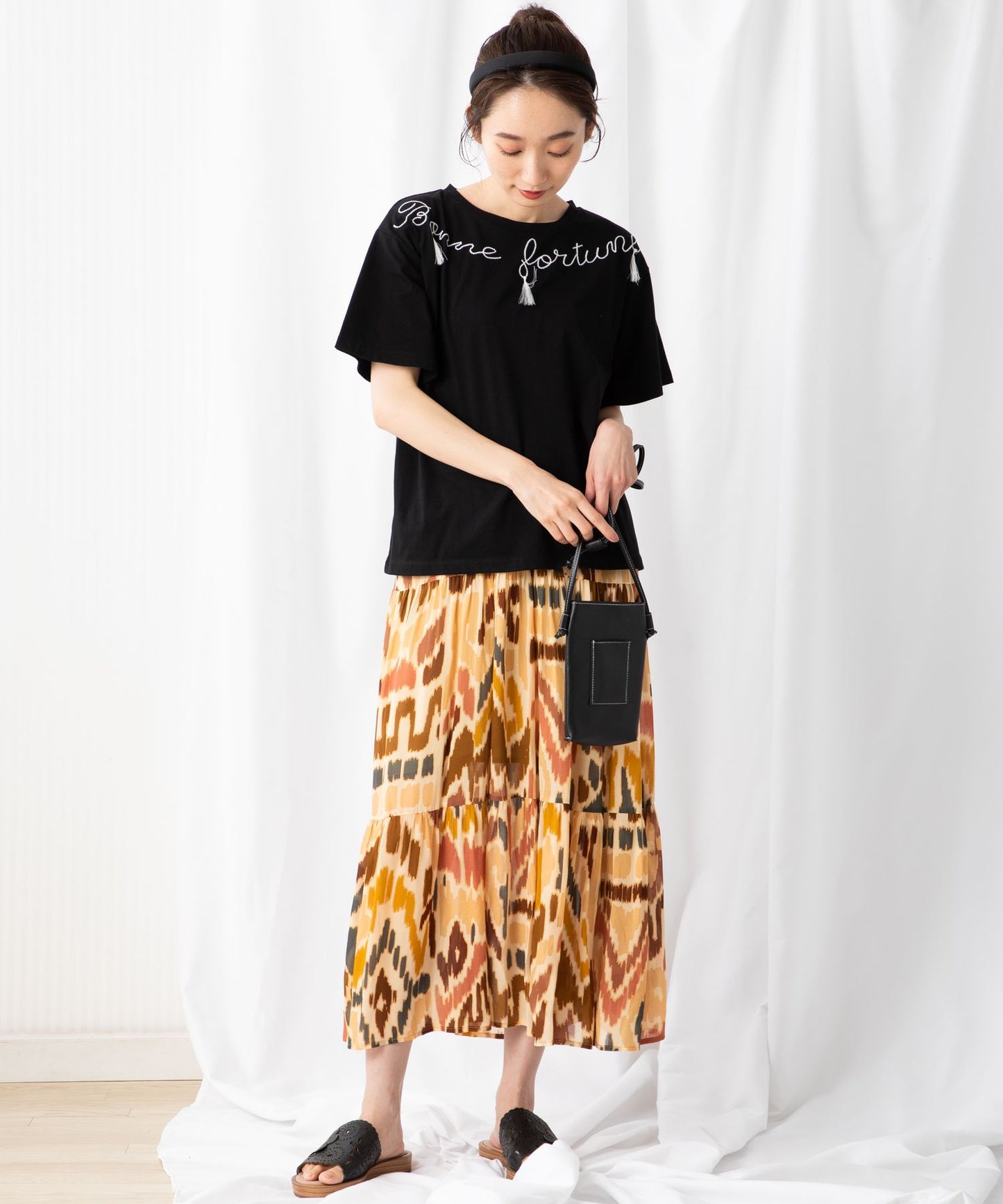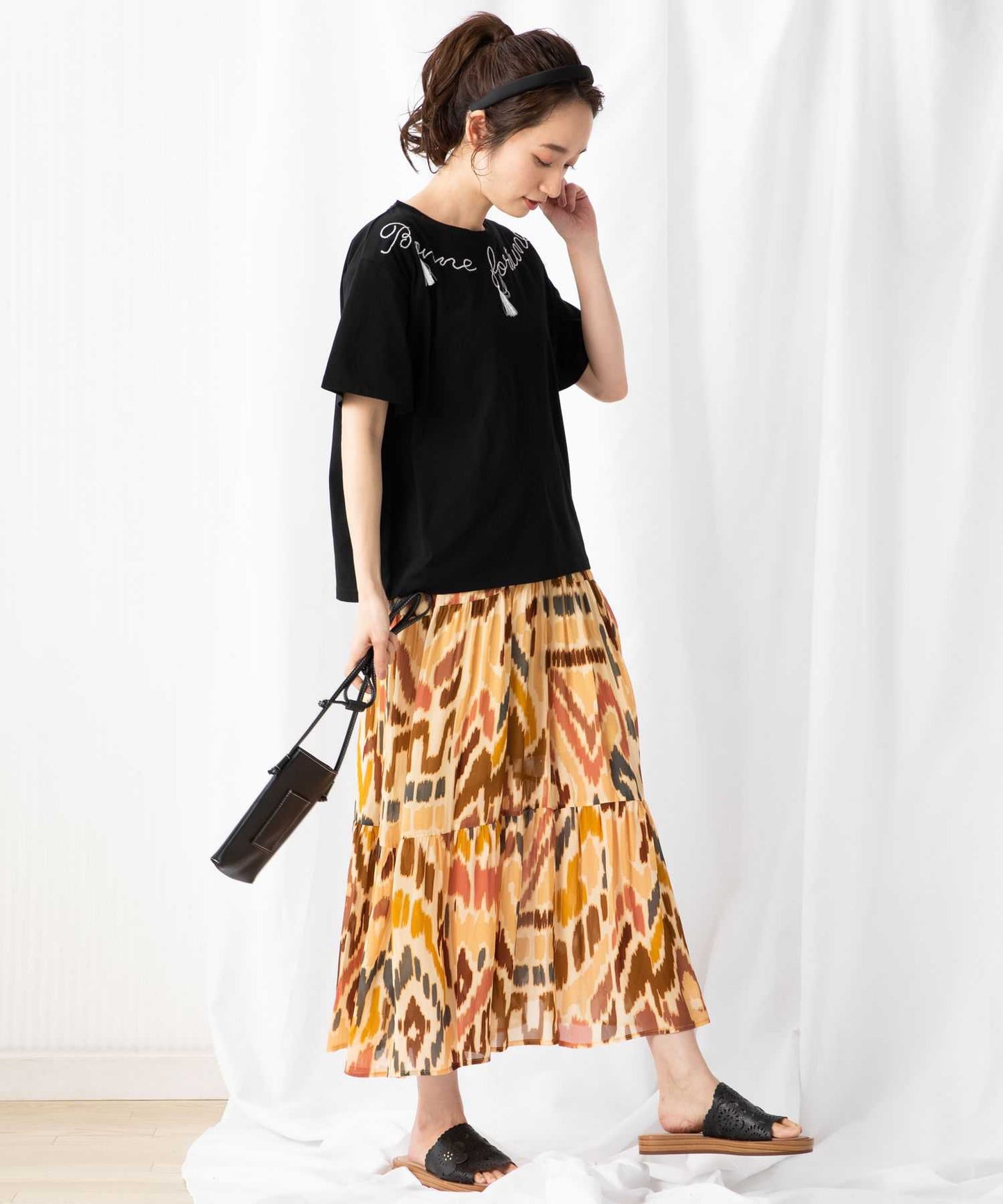エスニックな雰囲気が春夏ムードを高めるティアードスカート。