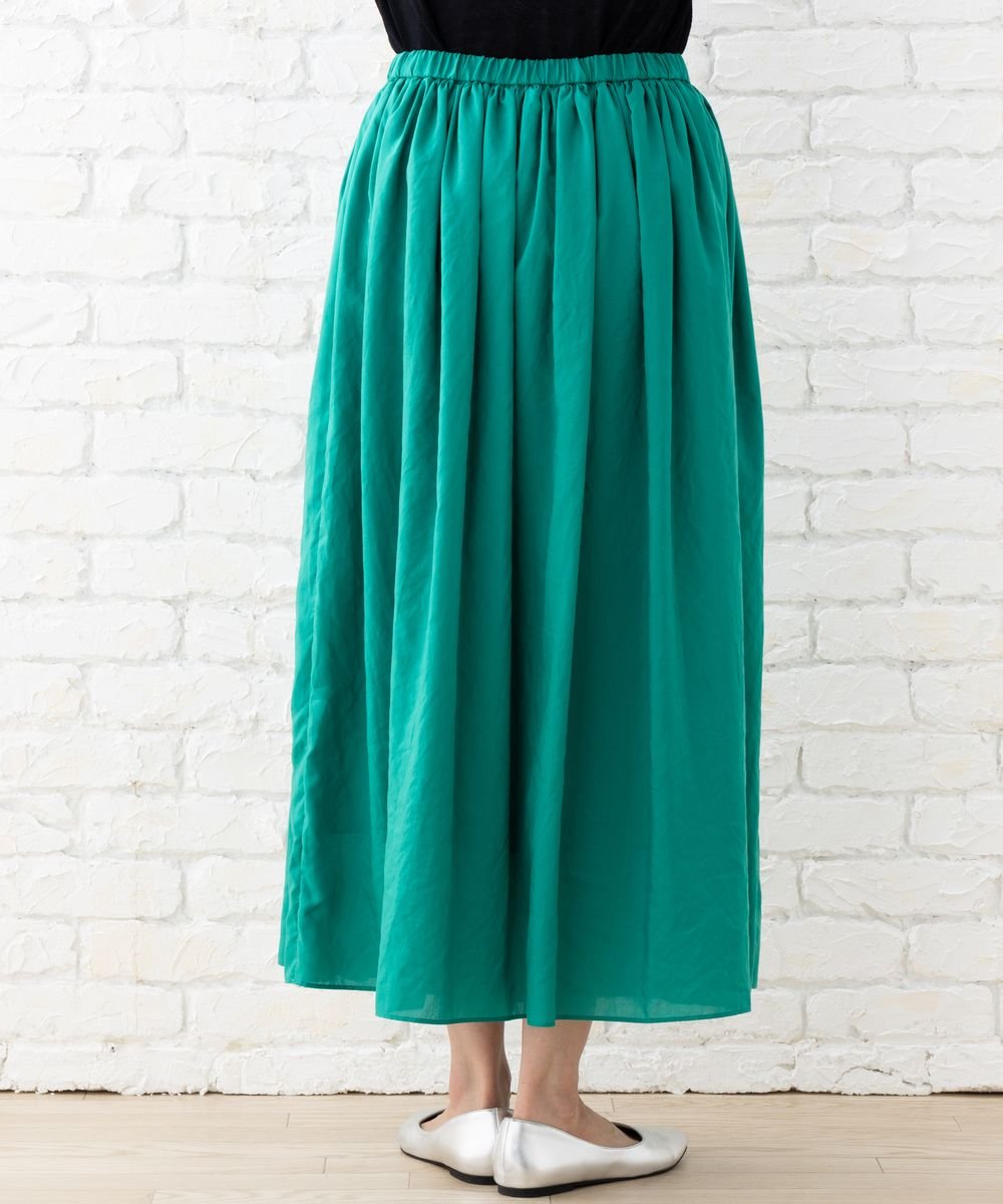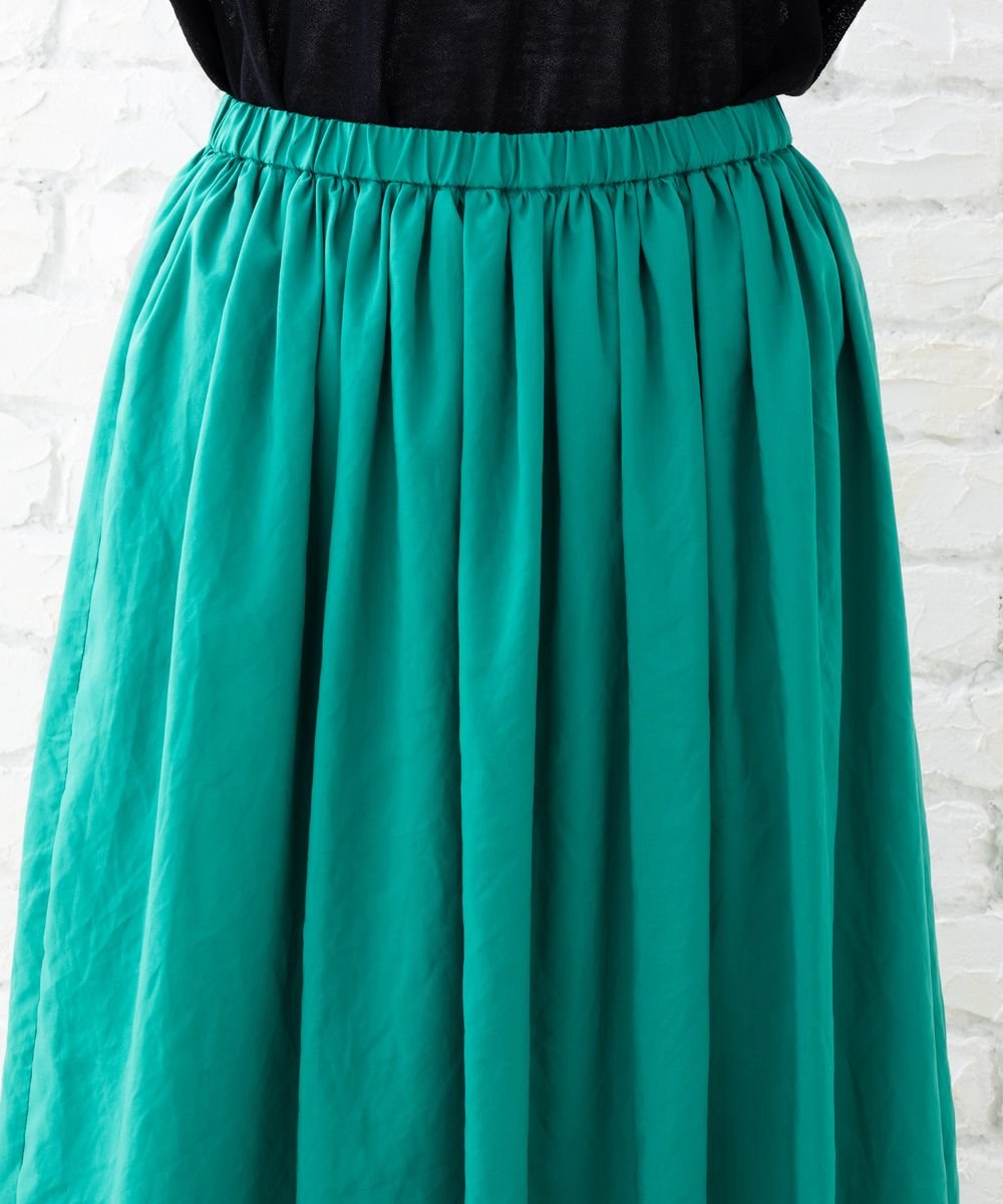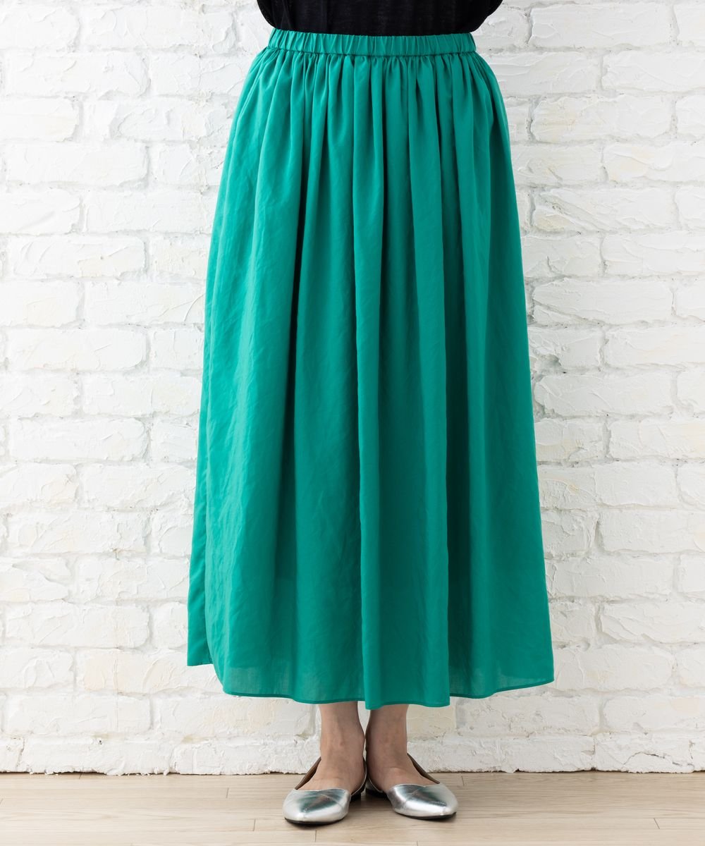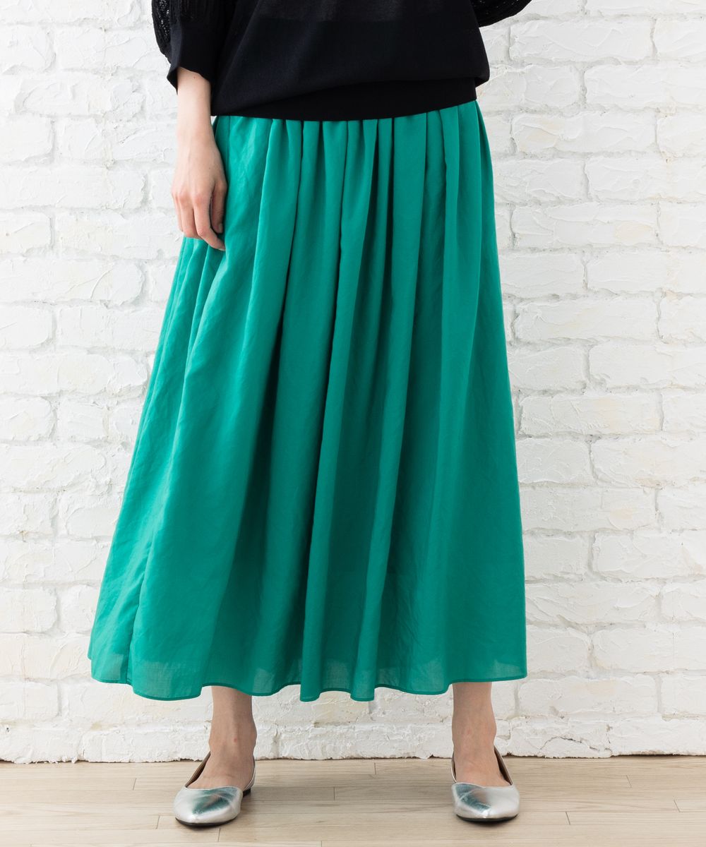 ボリュームたっぷりなふんわりギャザースカートですが、薄手でライトな生地を使用しているので広がり過ぎずに上品な印象に。
