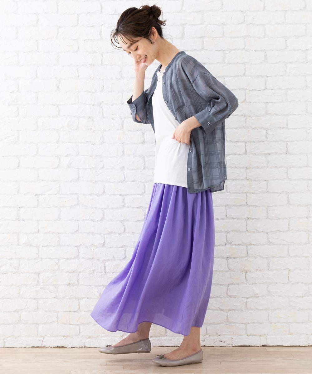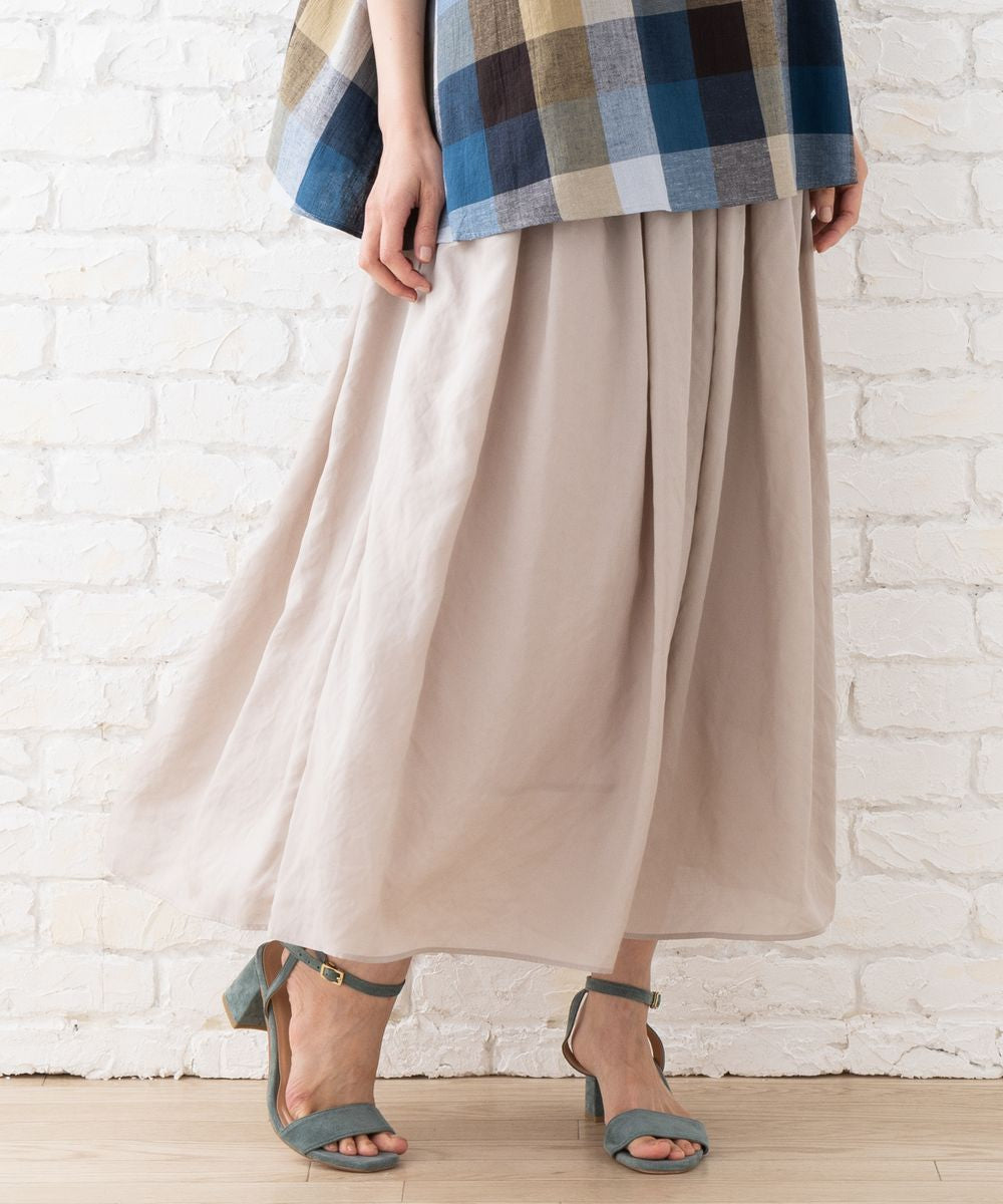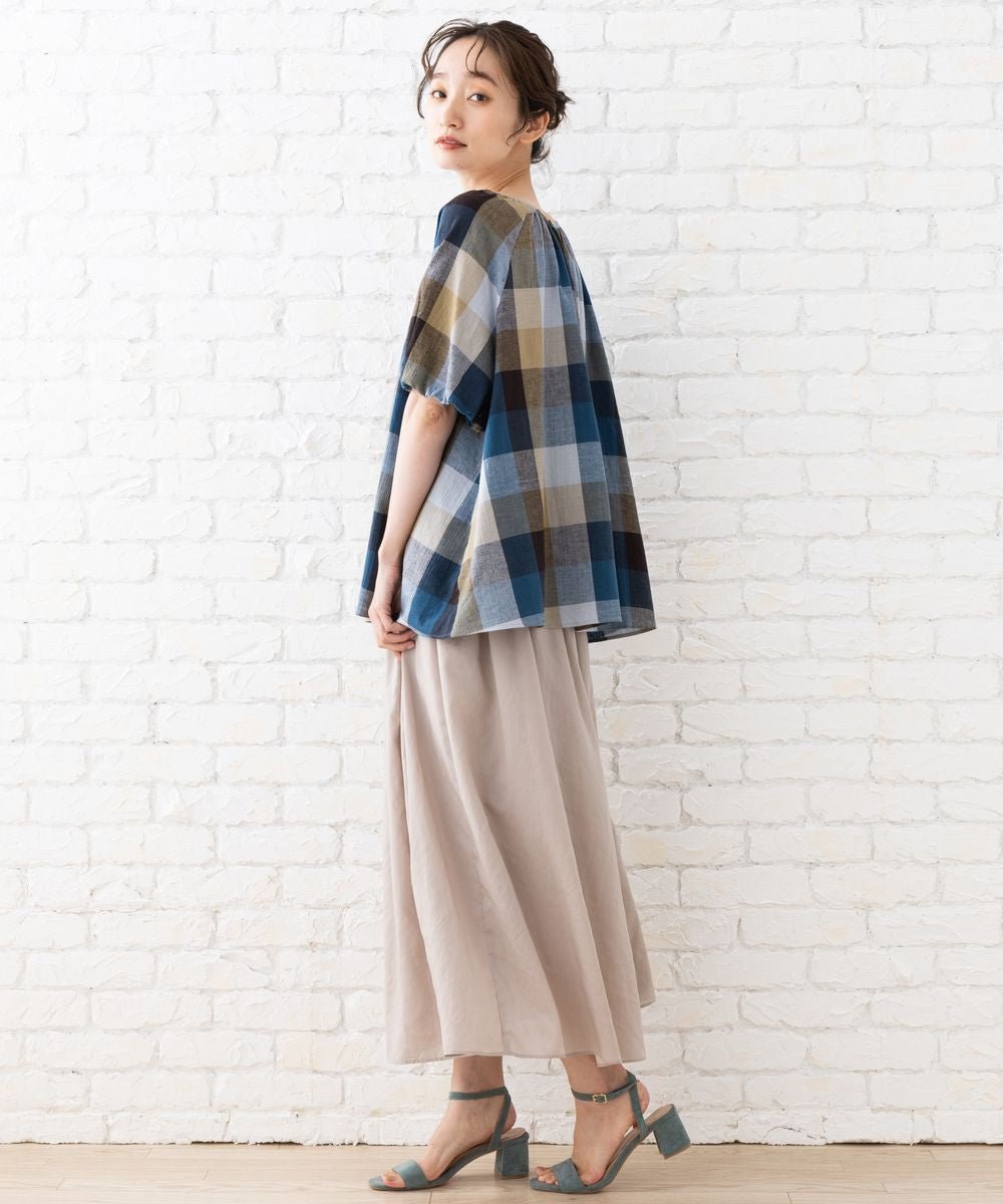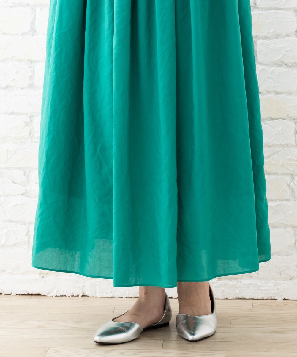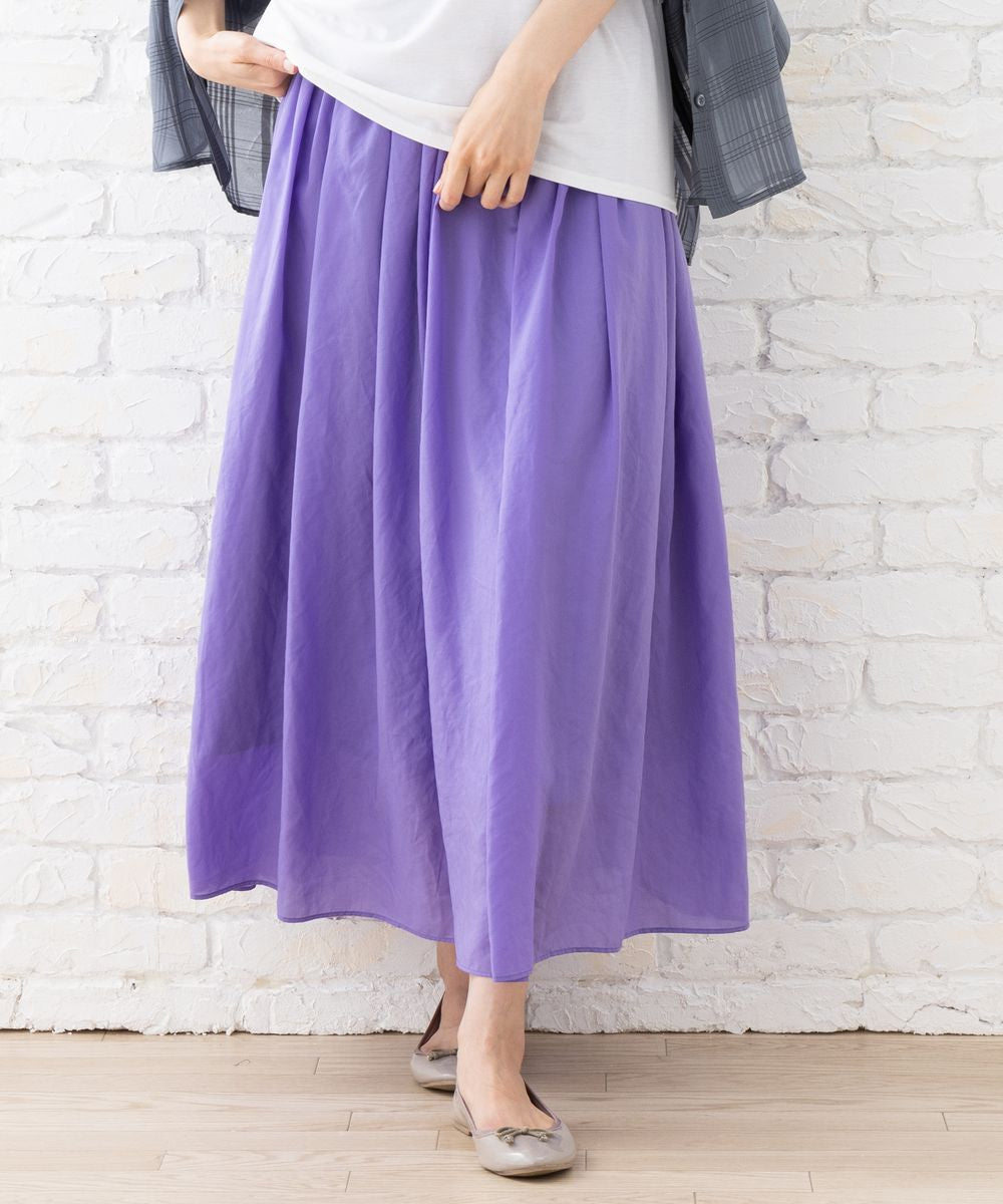 ボリュームたっぷりなふんわりギャザースカートですが、薄手でライトな生地を使用しているので広がり過ぎずに上品な印象に。