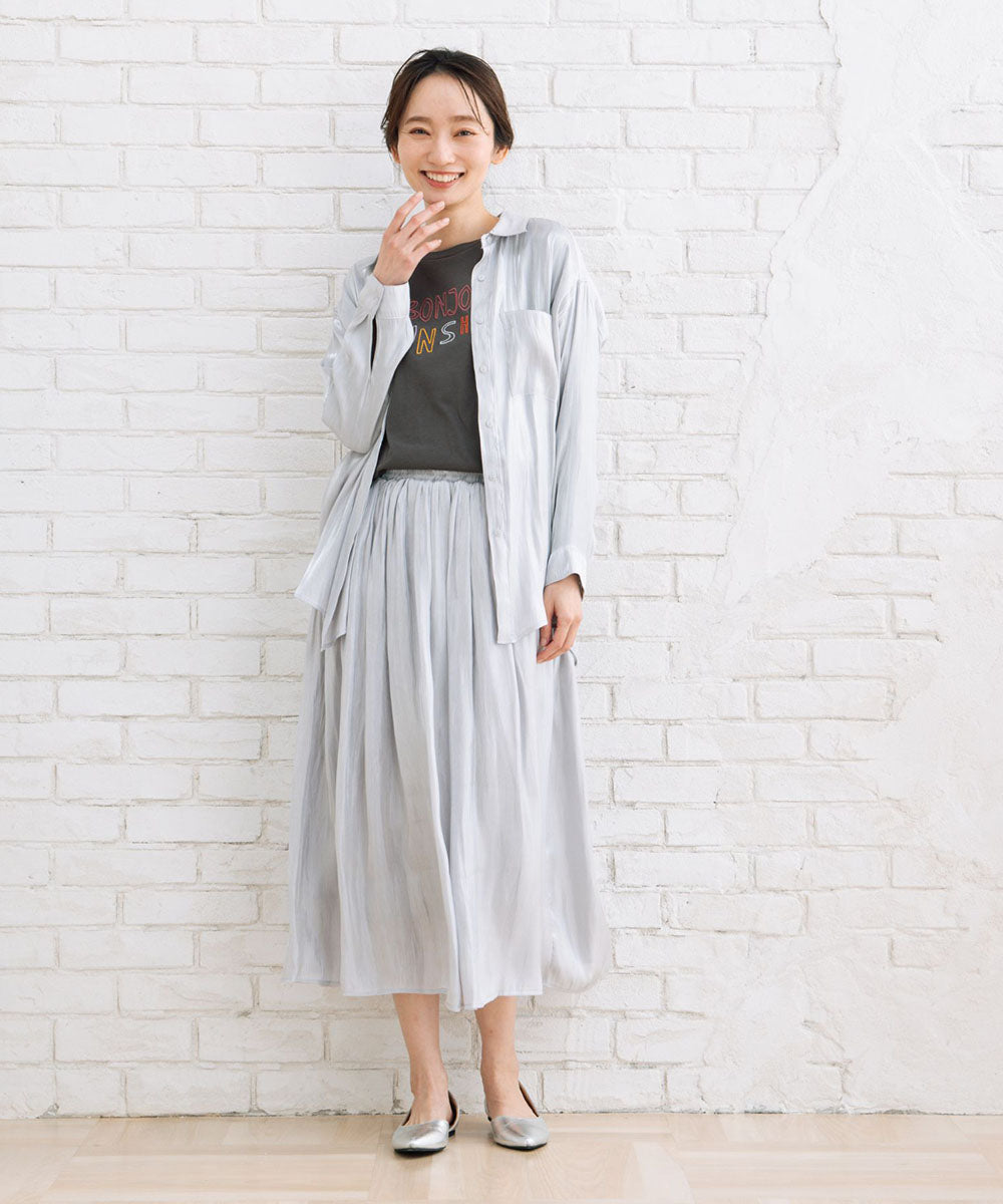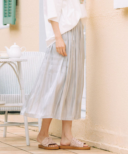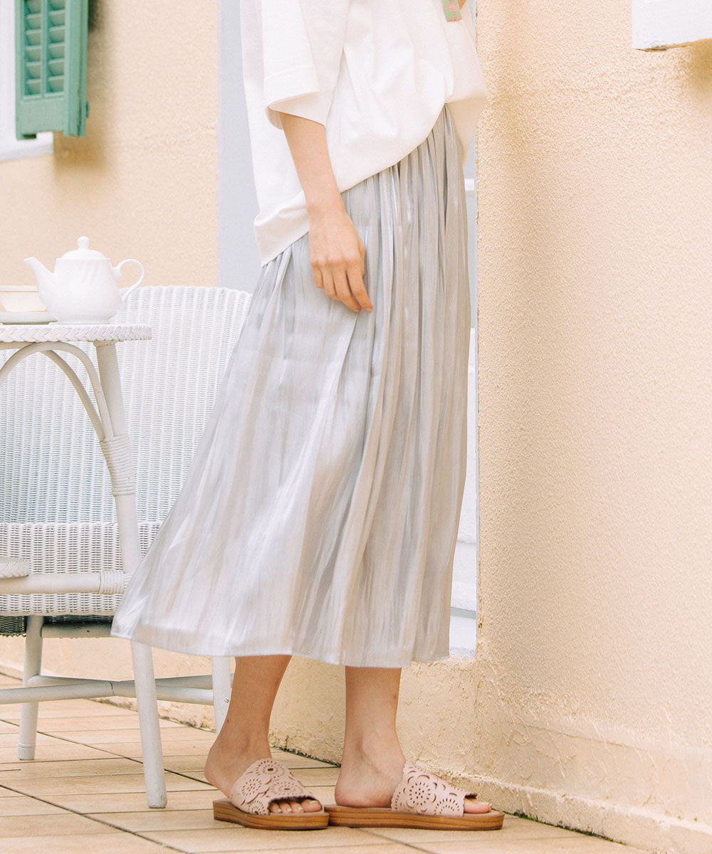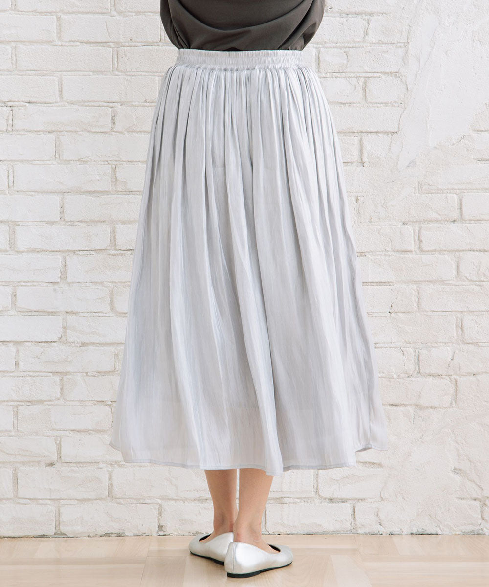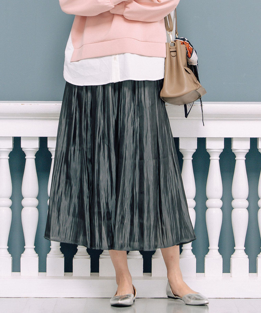 光沢感と揺れ感が魅力的なシャイニーサテンワッシャースカート。