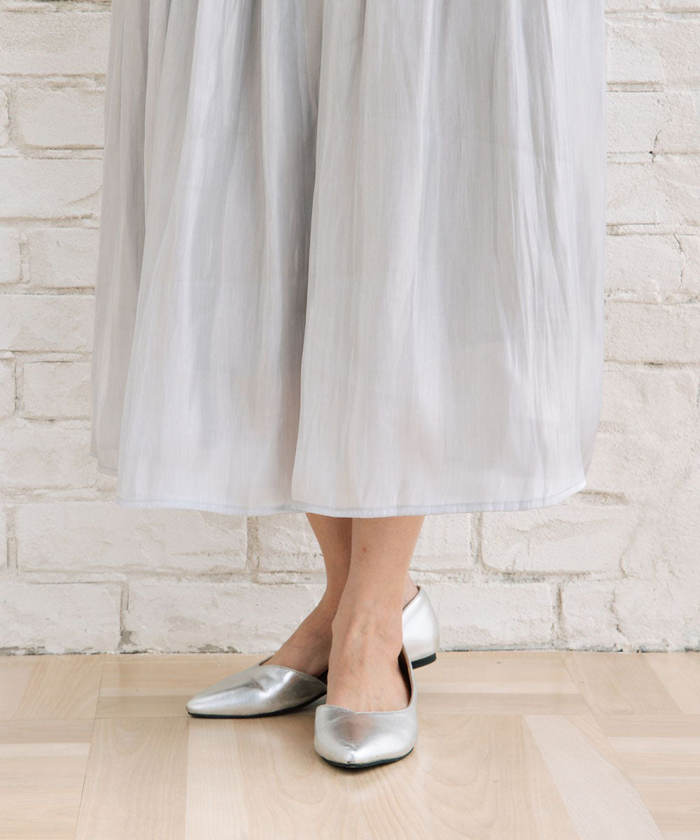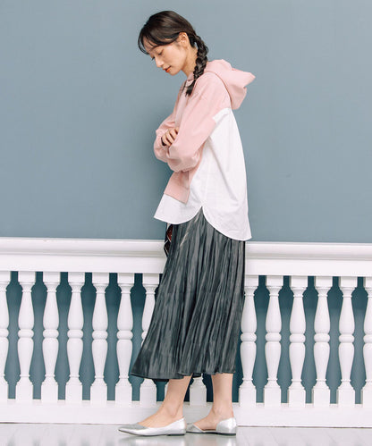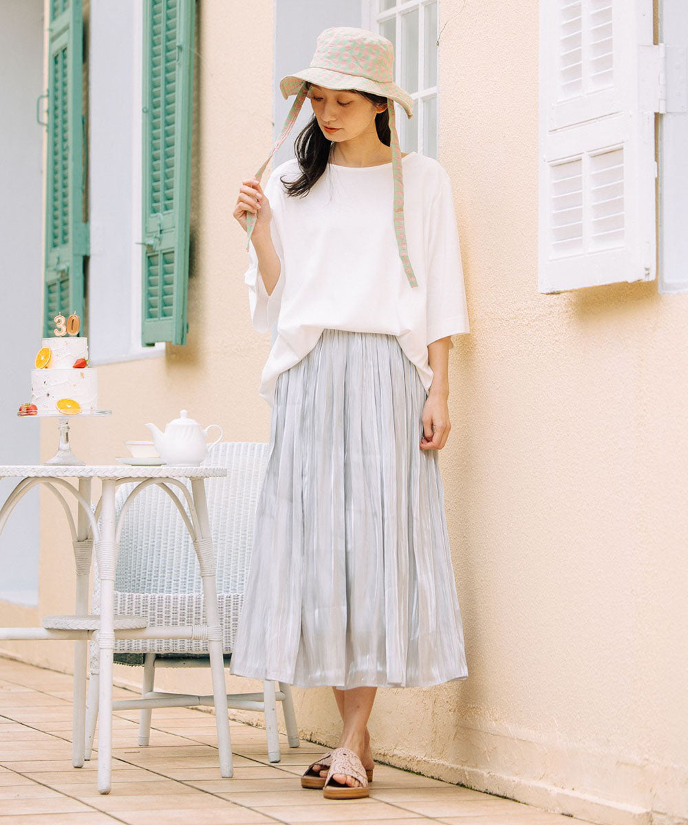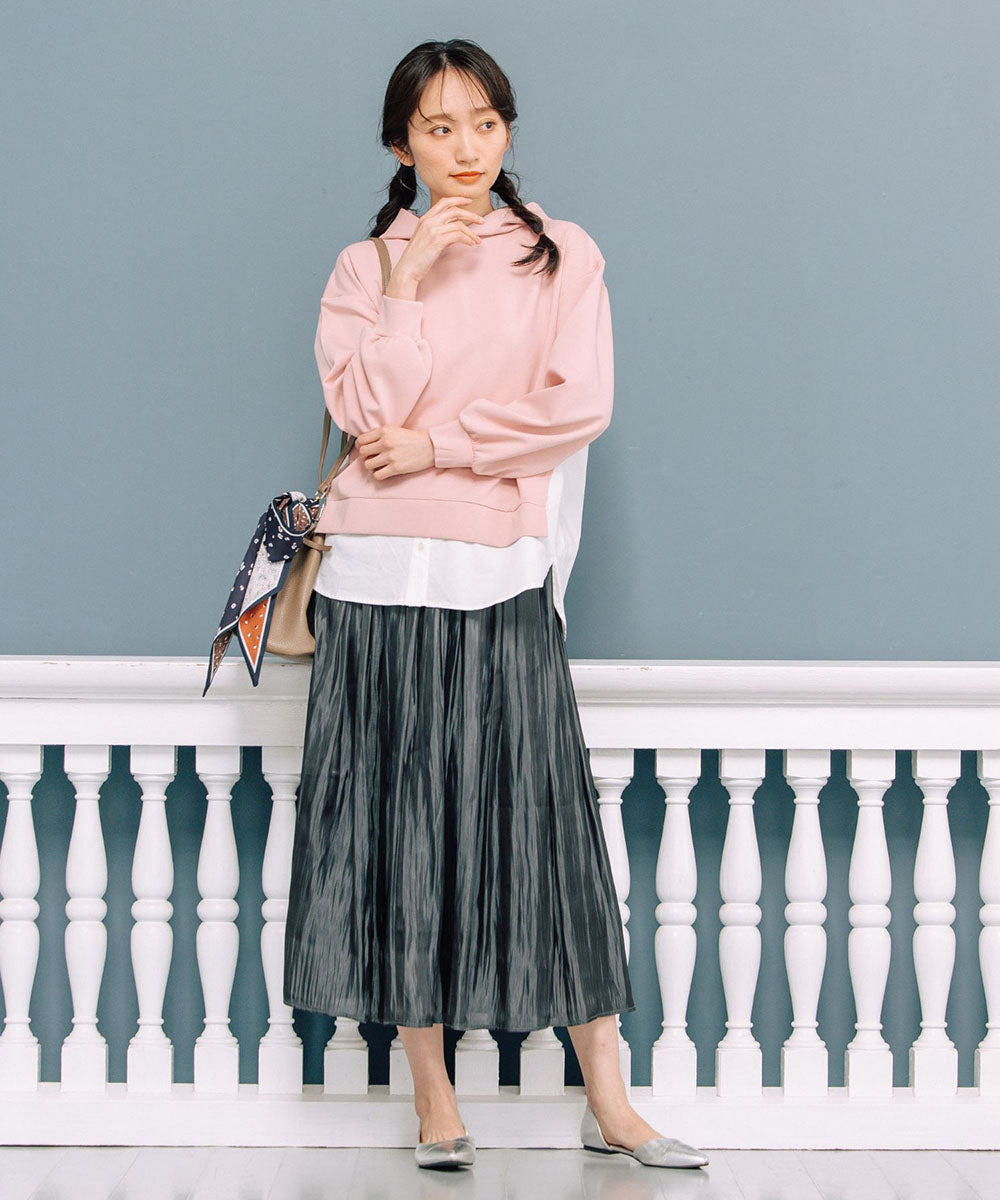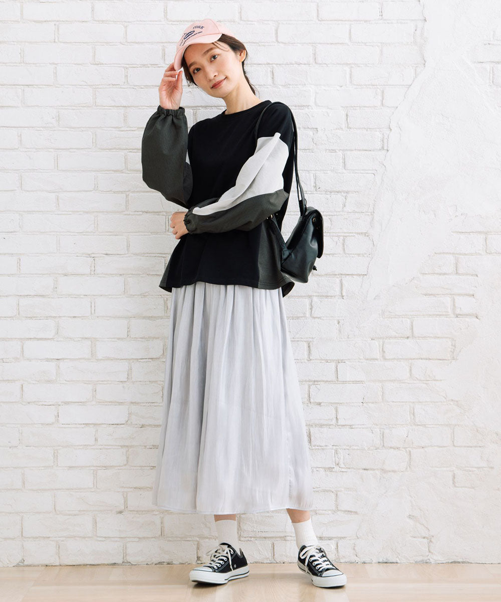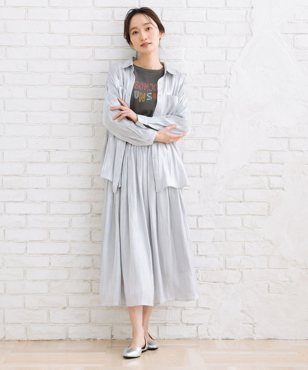 光沢感と揺れ感が魅力的なシャイニーサテンワッシャースカート。