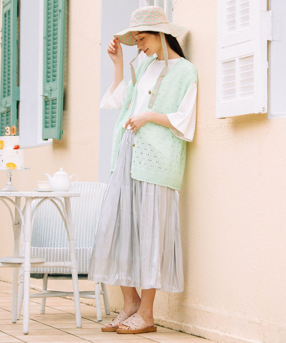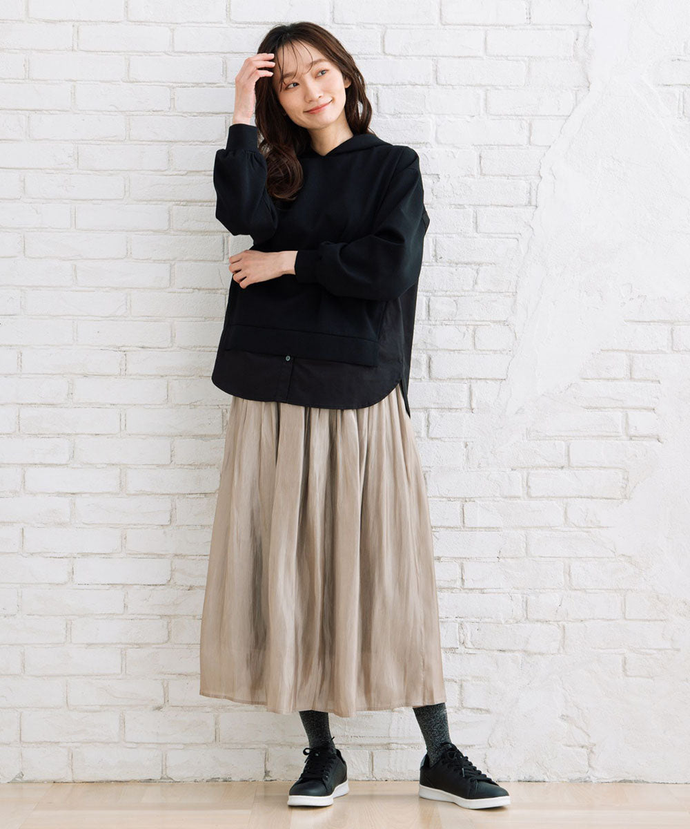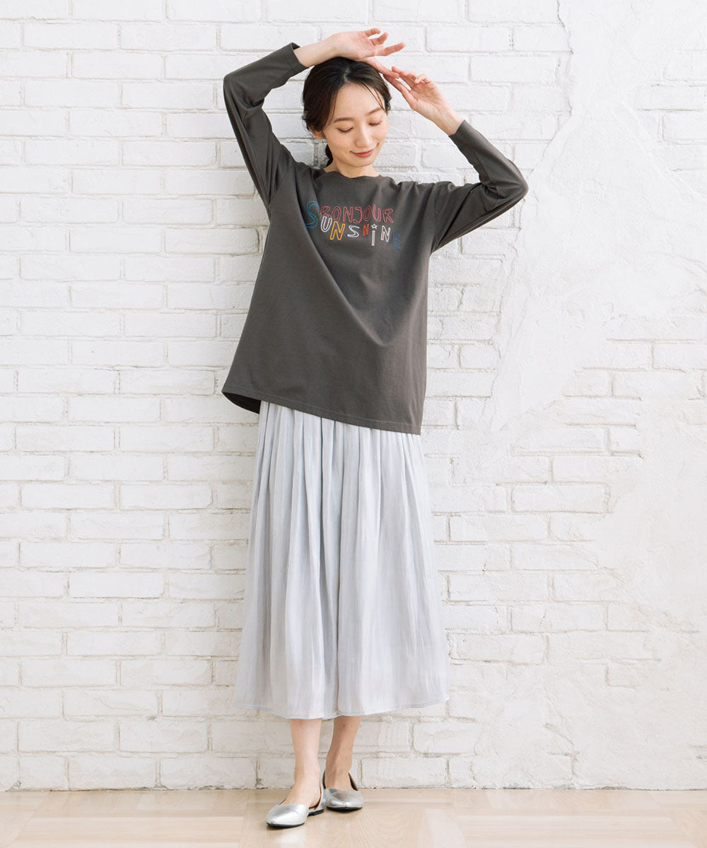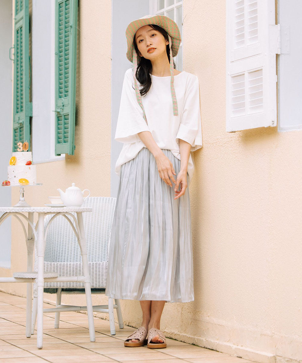 ウエストゴムで楽チンな着心地でありながら、上品見えを叶える優秀アイテムです。