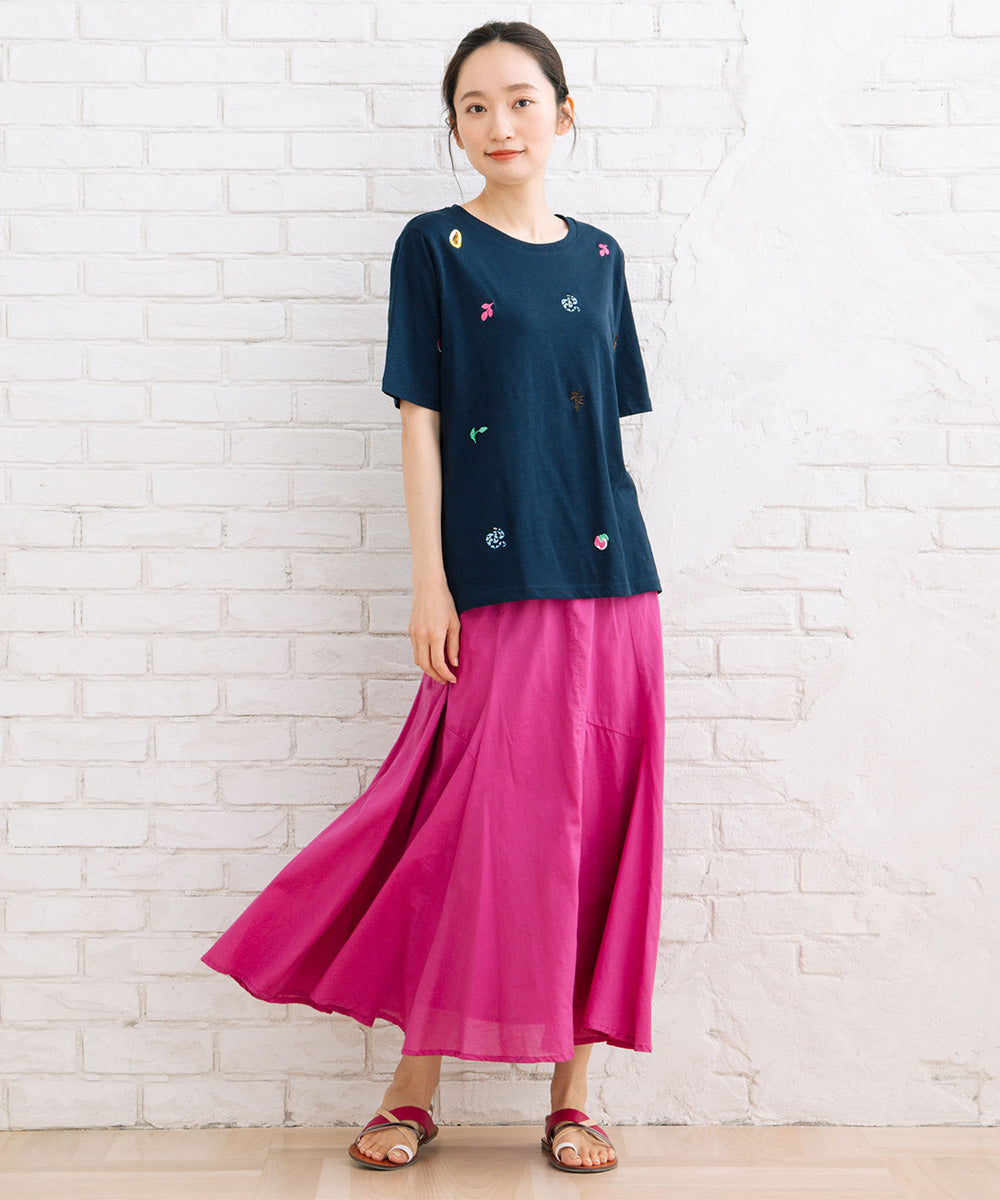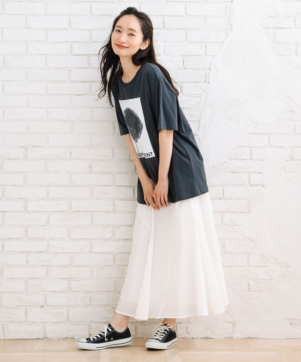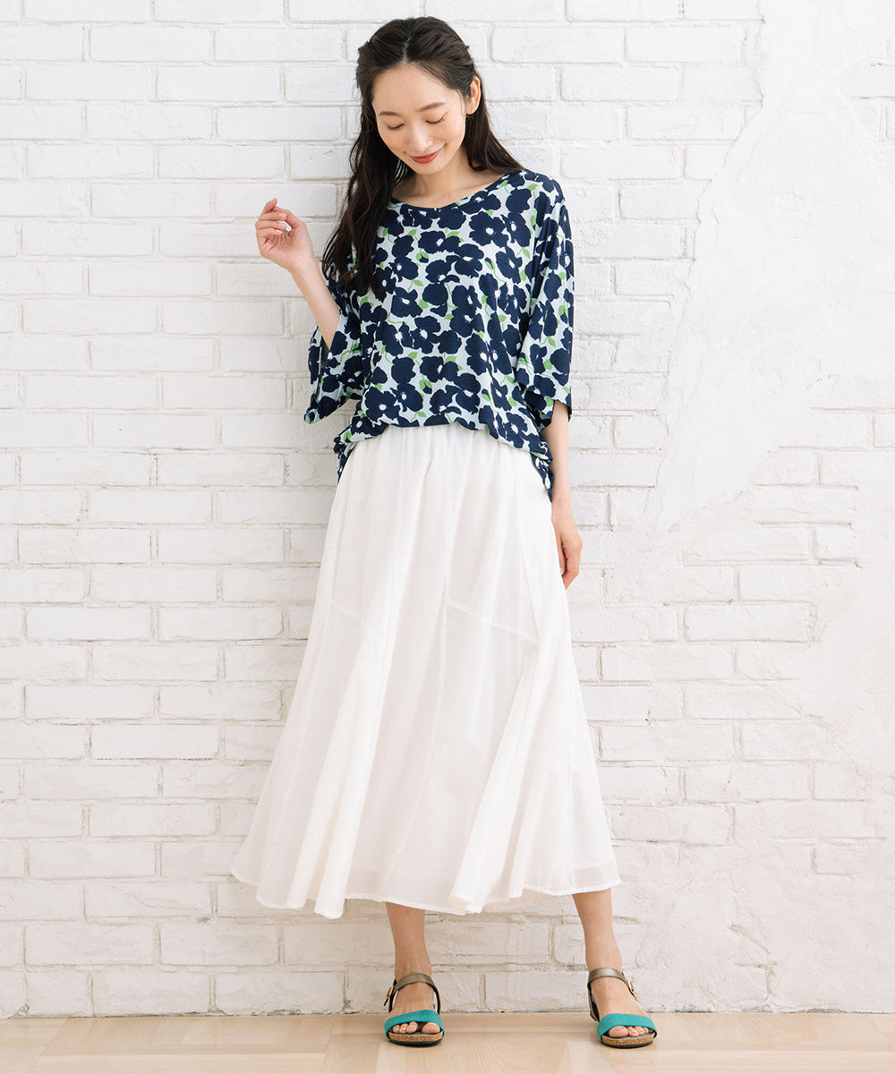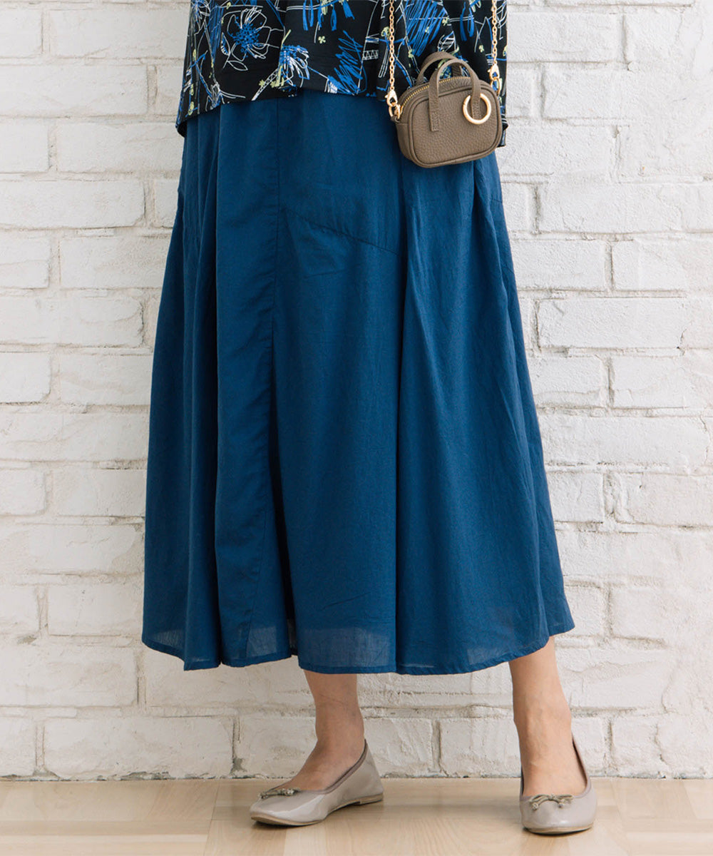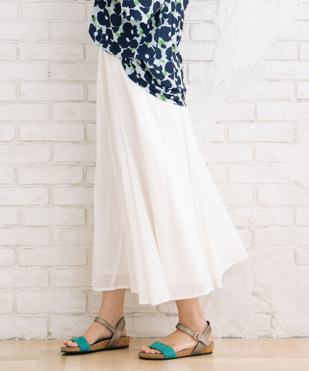ふわりと優しい肌触りのオーガニックコットン100%仕立てのフレアハギスカート。