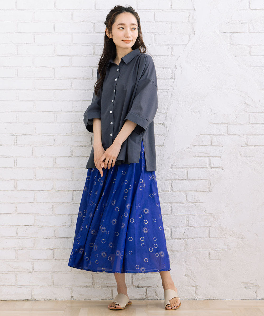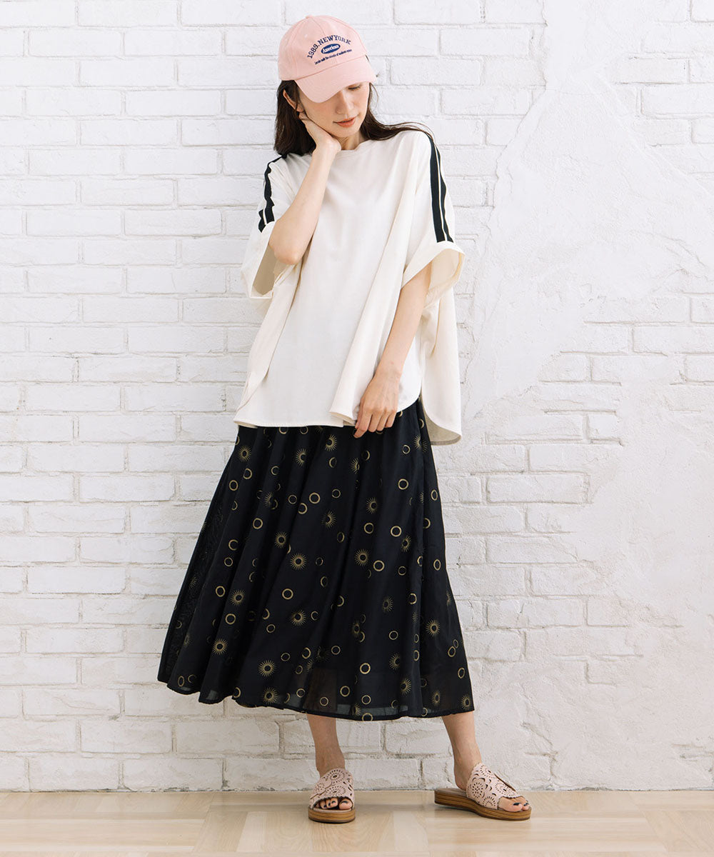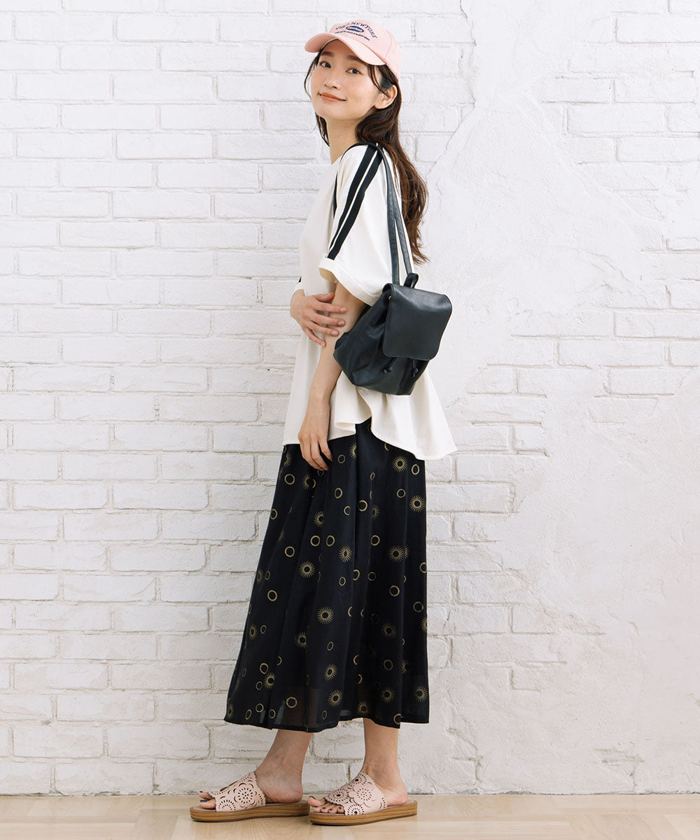 サークルホイルプリント模様が魅力的なスカート。