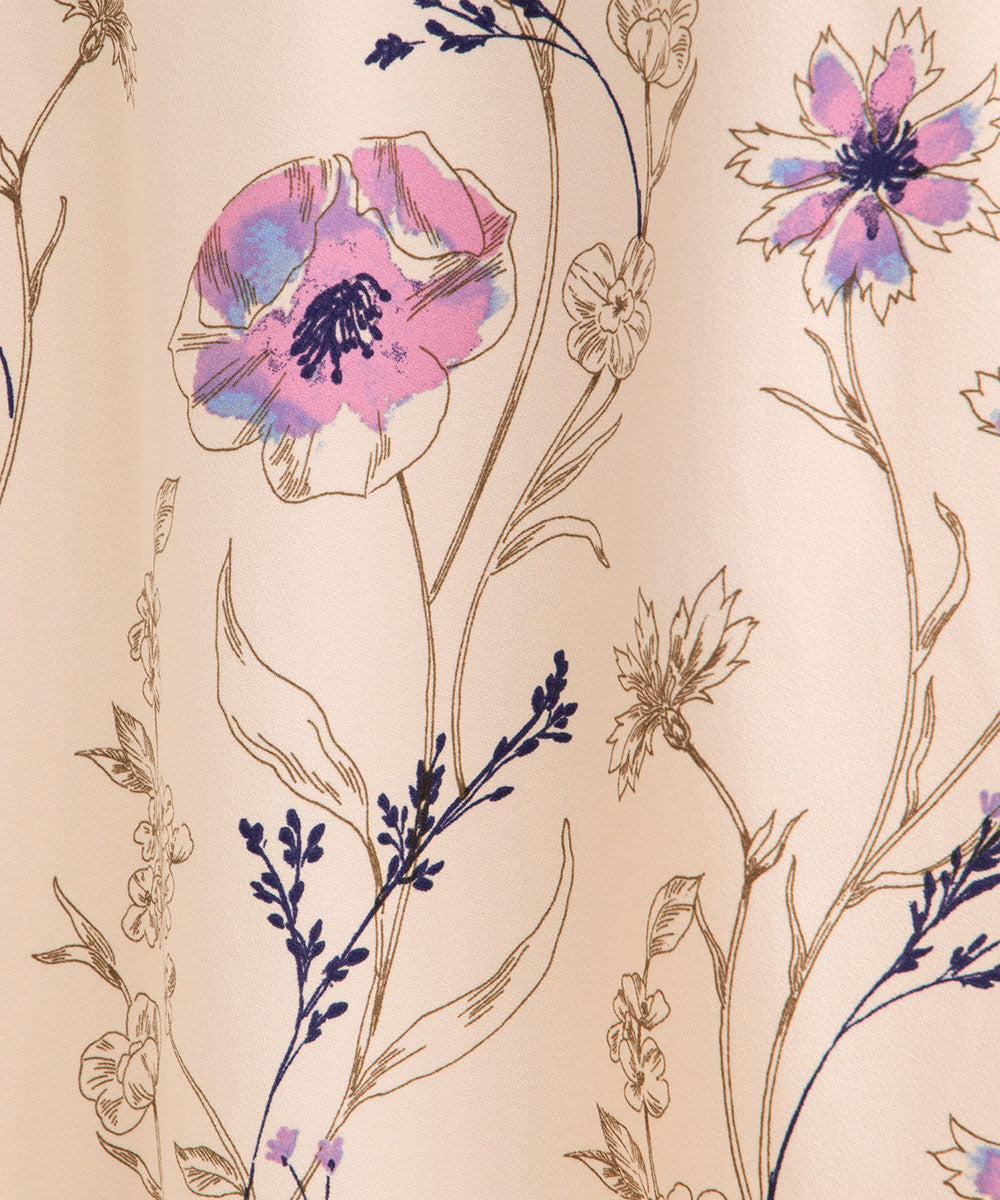 柔らかなベージュをベースに、繊細なタッチで描かれた花柄が、コーディネートに上品な華やかさをプラスしてくれます。