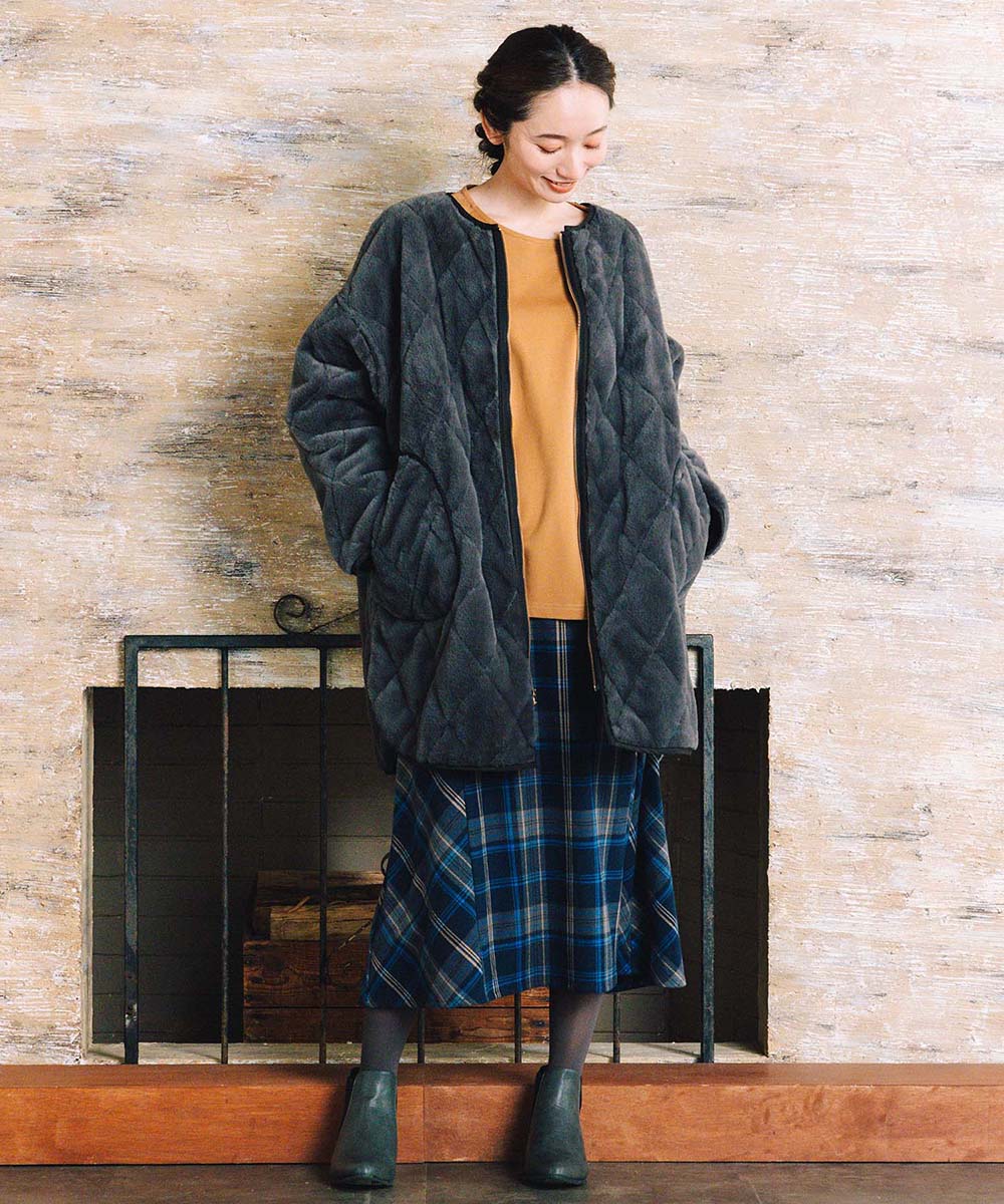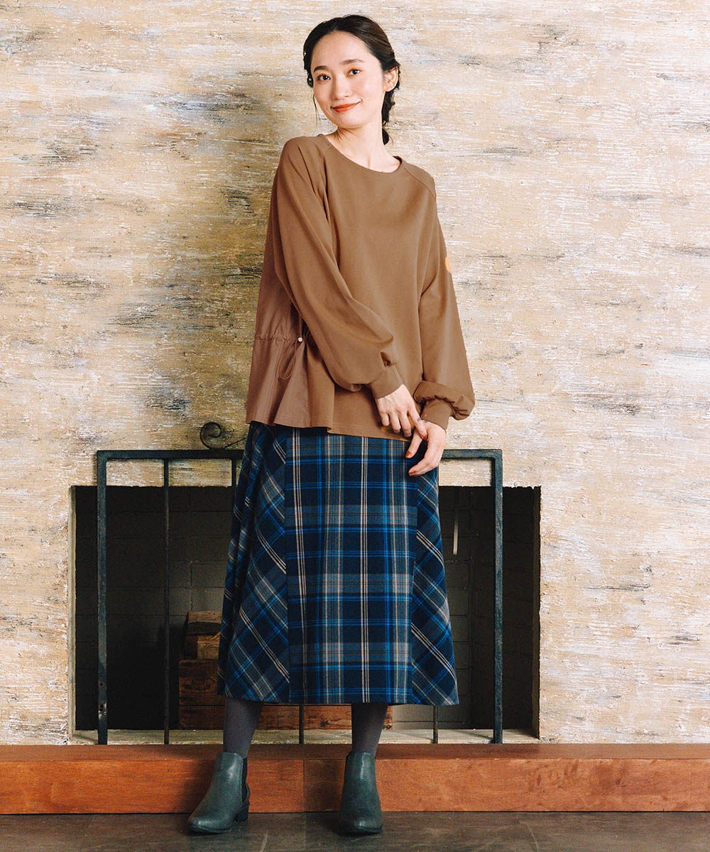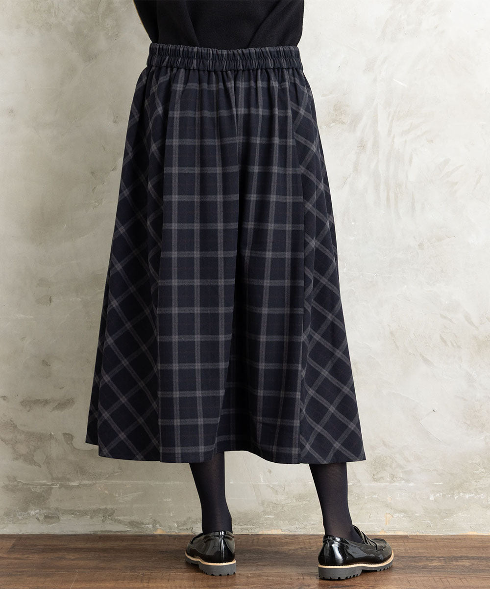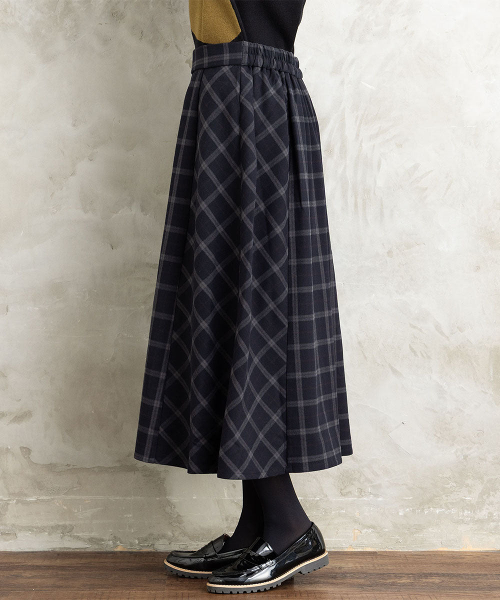 やわらかく起毛した素材があたたかみを感じさせる、上品なチェックスカート。
