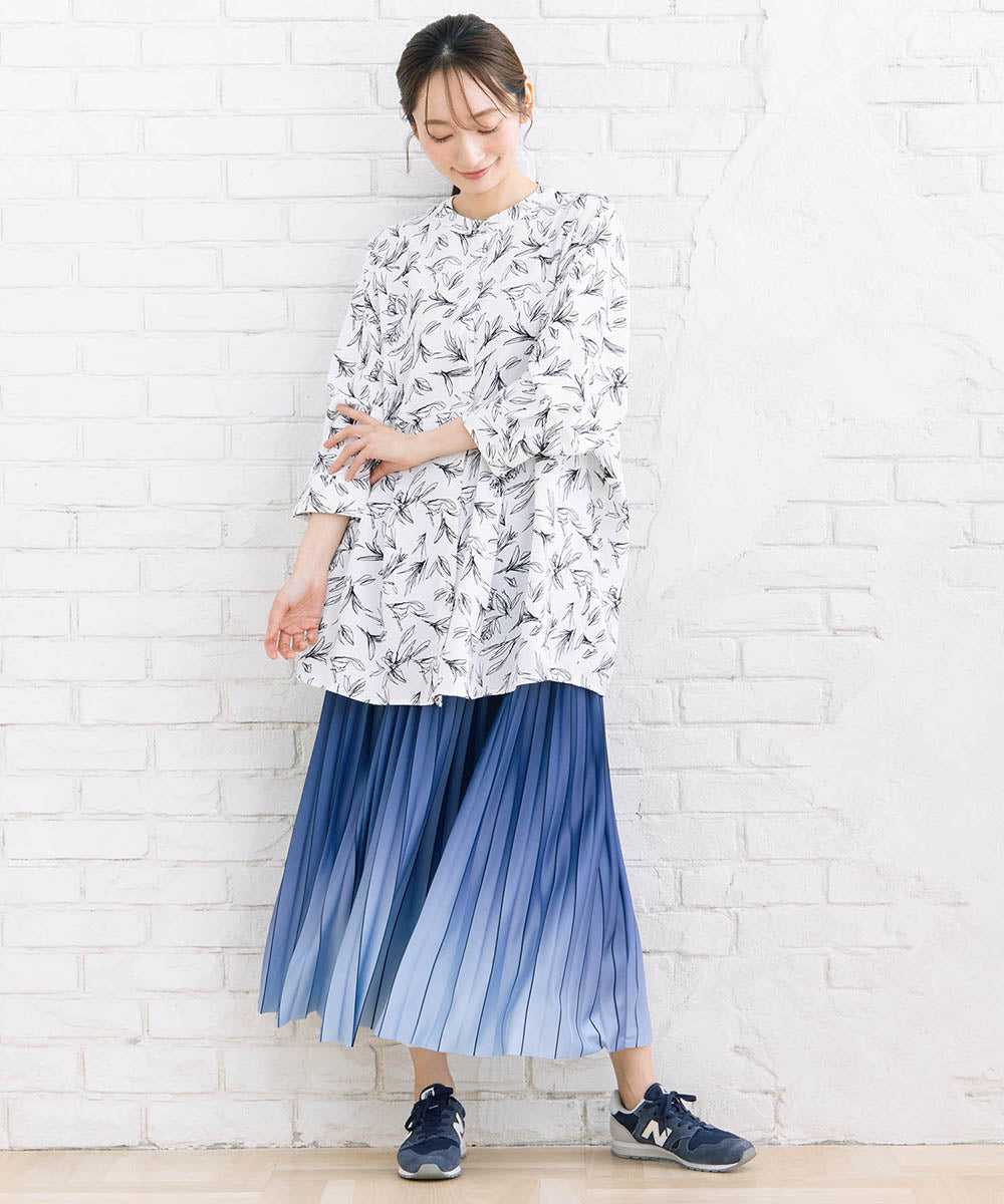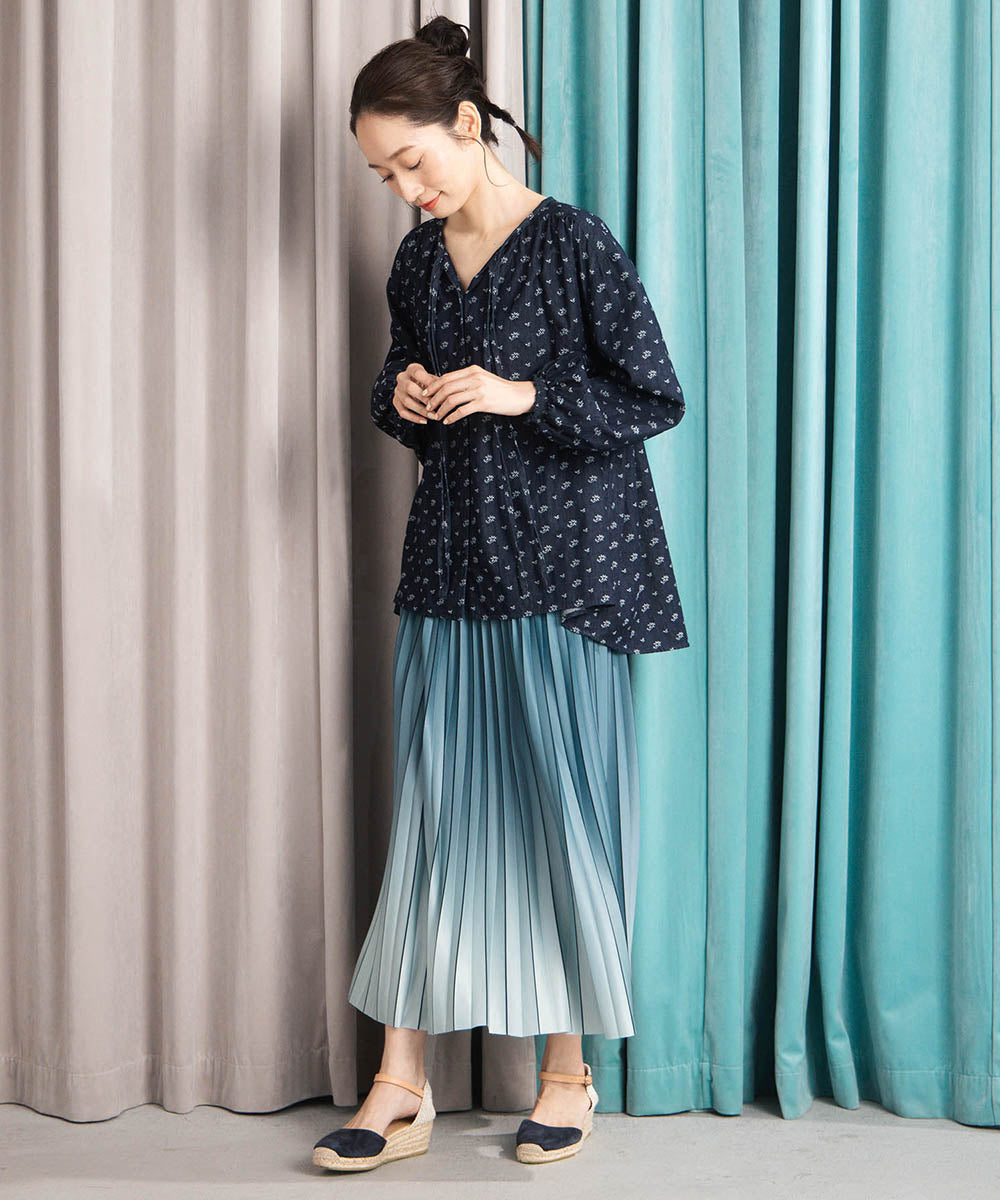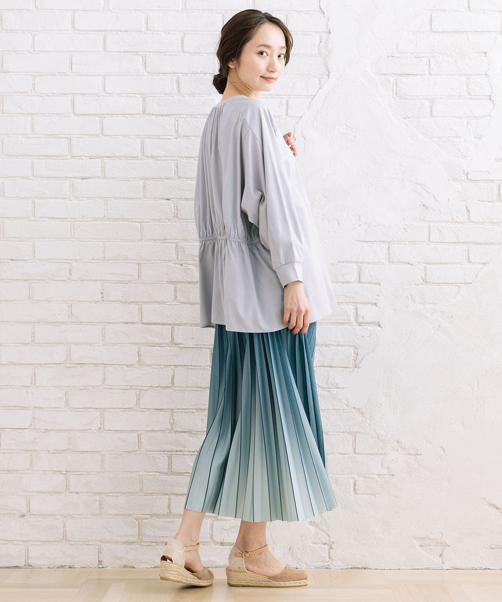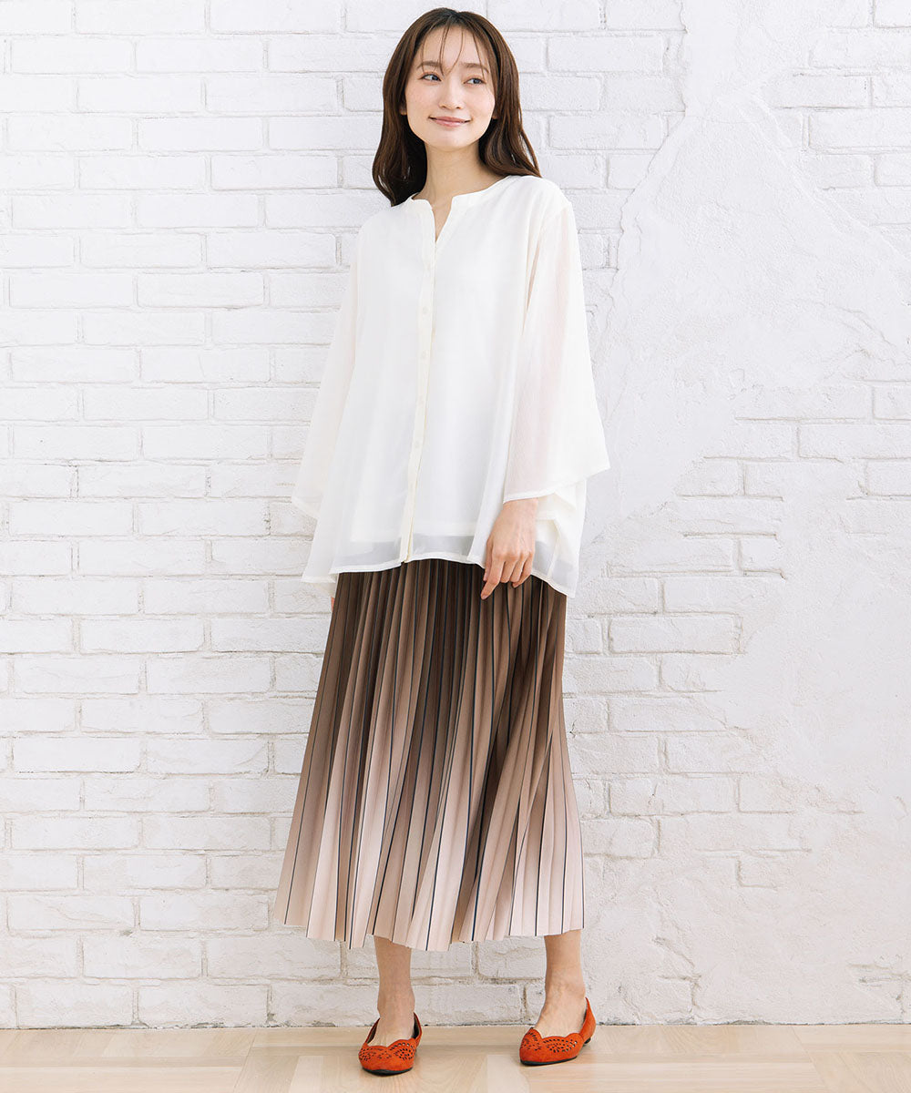 繊細なプリーツに、奥行きを感じるグラデーションカラーをのせた一枚。