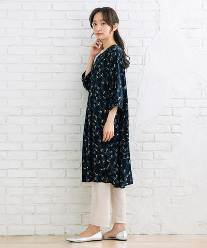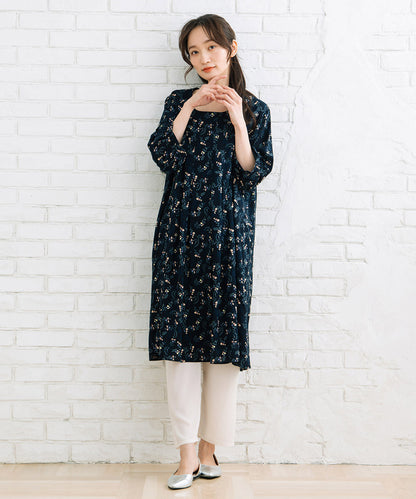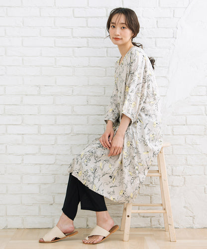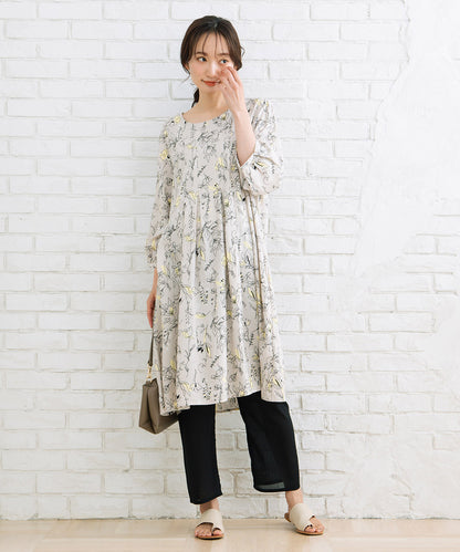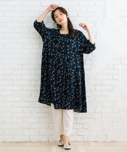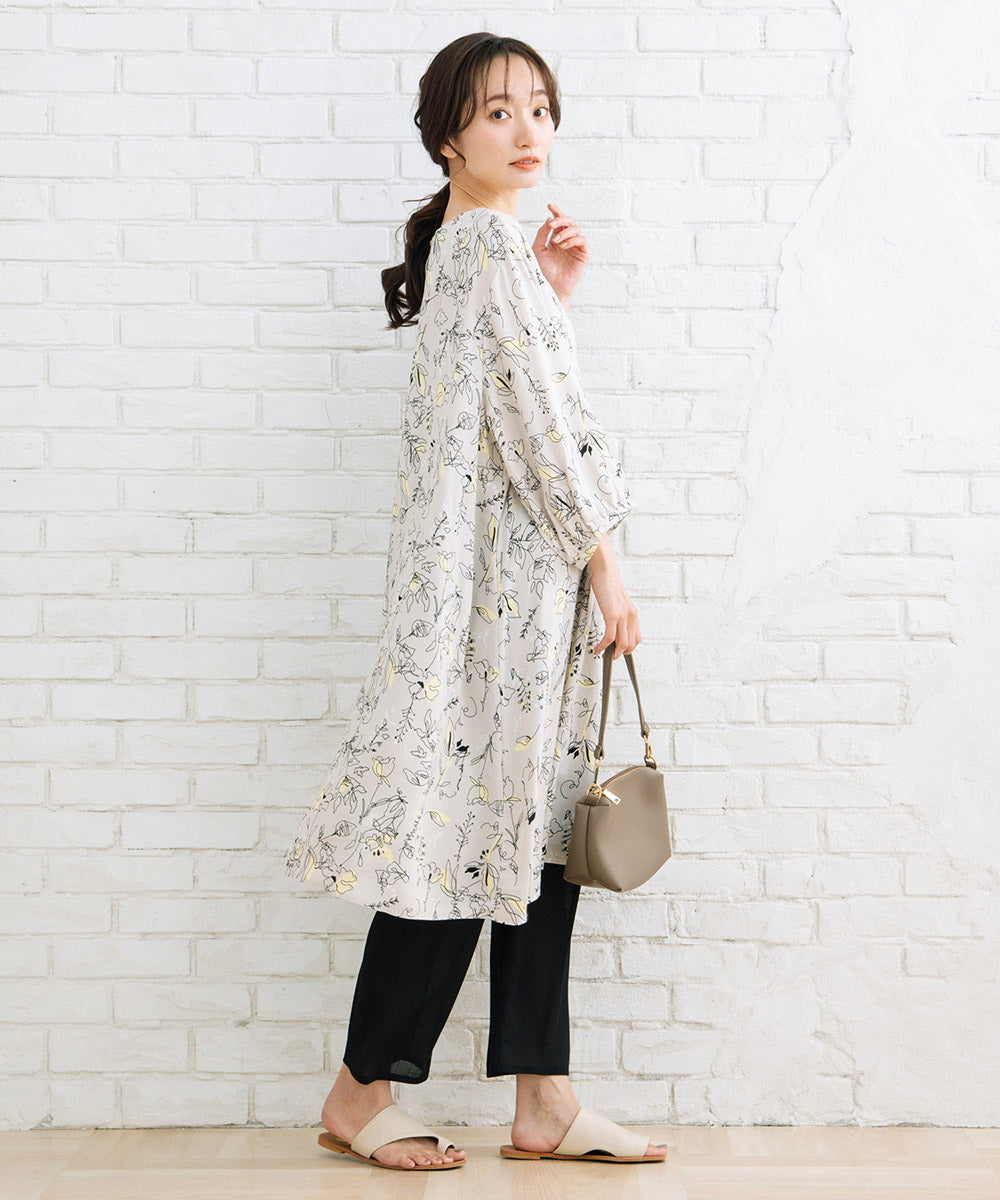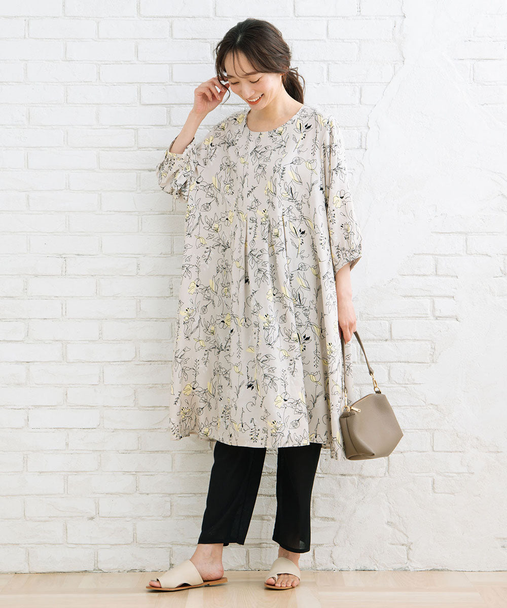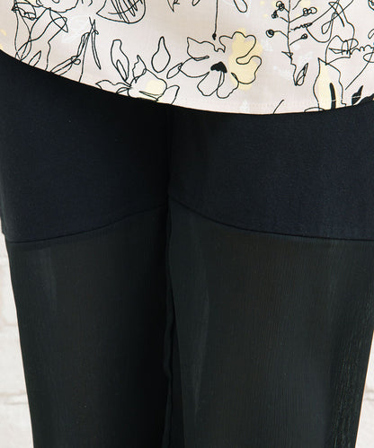 カットソー素材に、膝下からのシアー素材が軽やかさと抜け感をプラス。