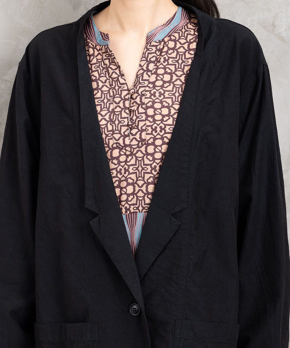 ナチュラルな風合いが魅力の、キュプラ混素材を使用した一重仕立てのジャケット。