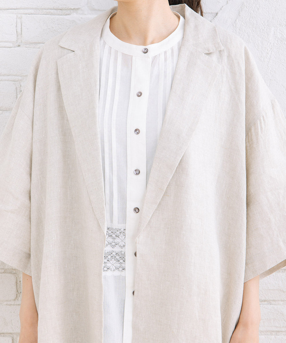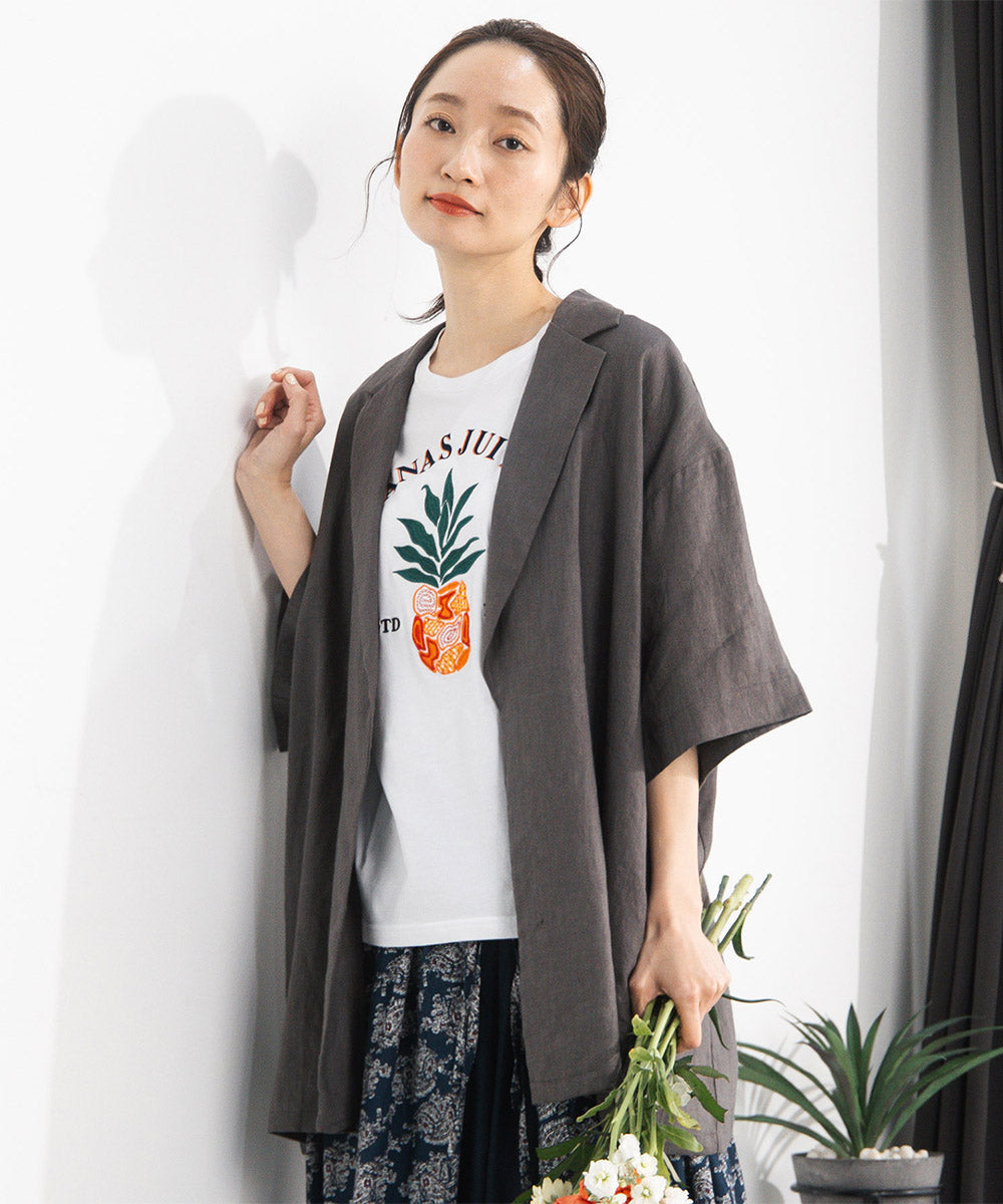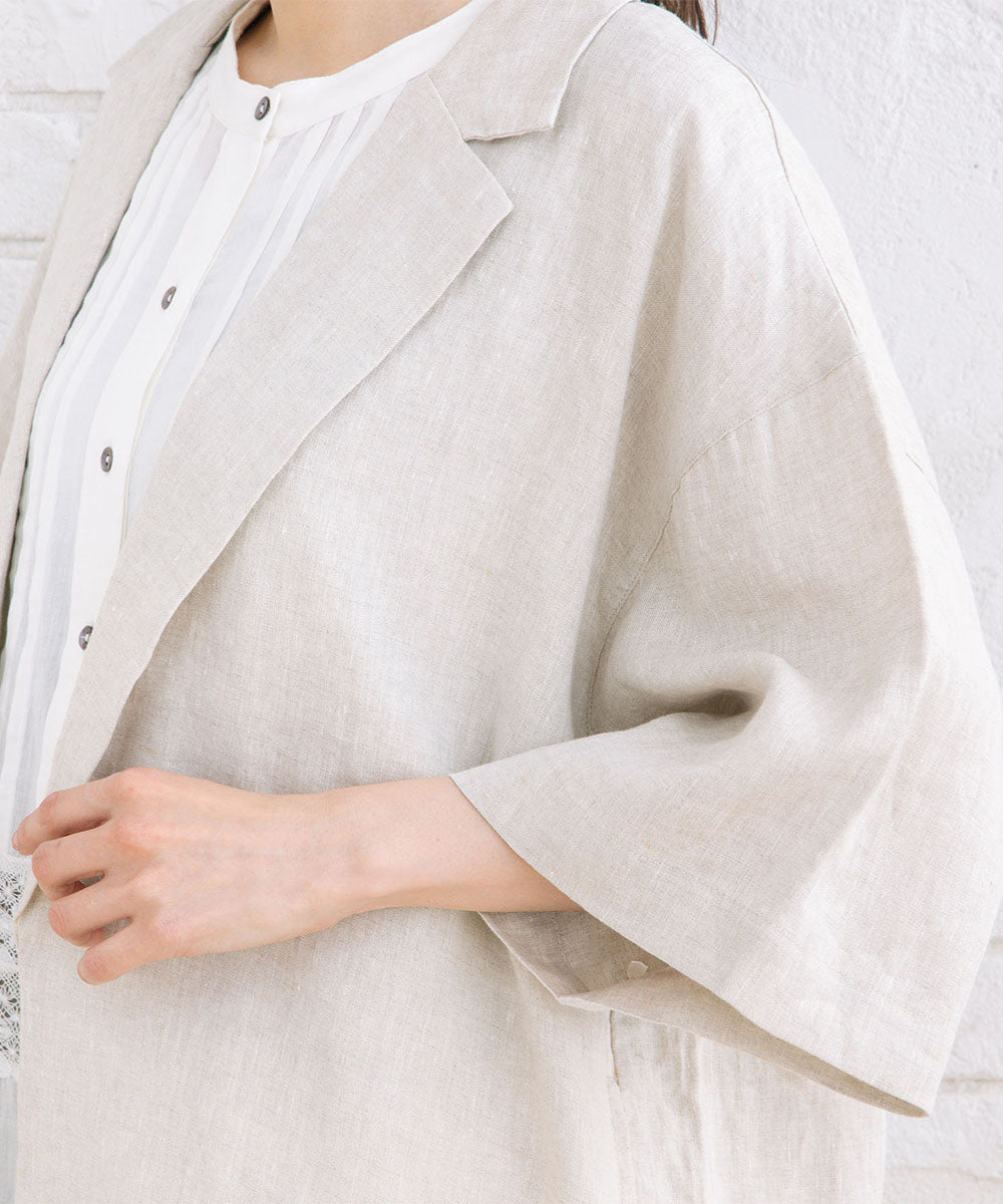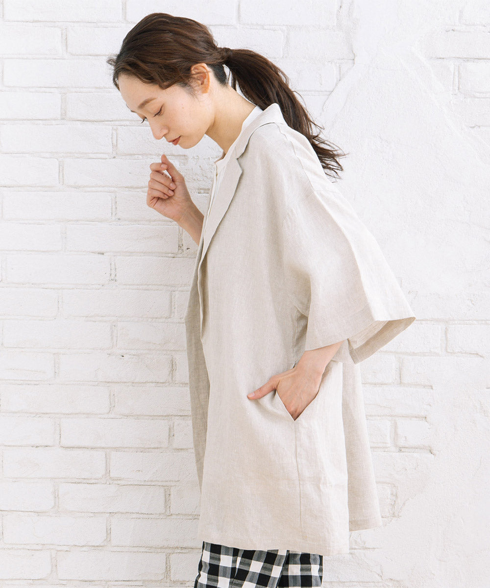 麻100%ならではのナチュラルな風合いが魅力のハーフスリーブジャケット。