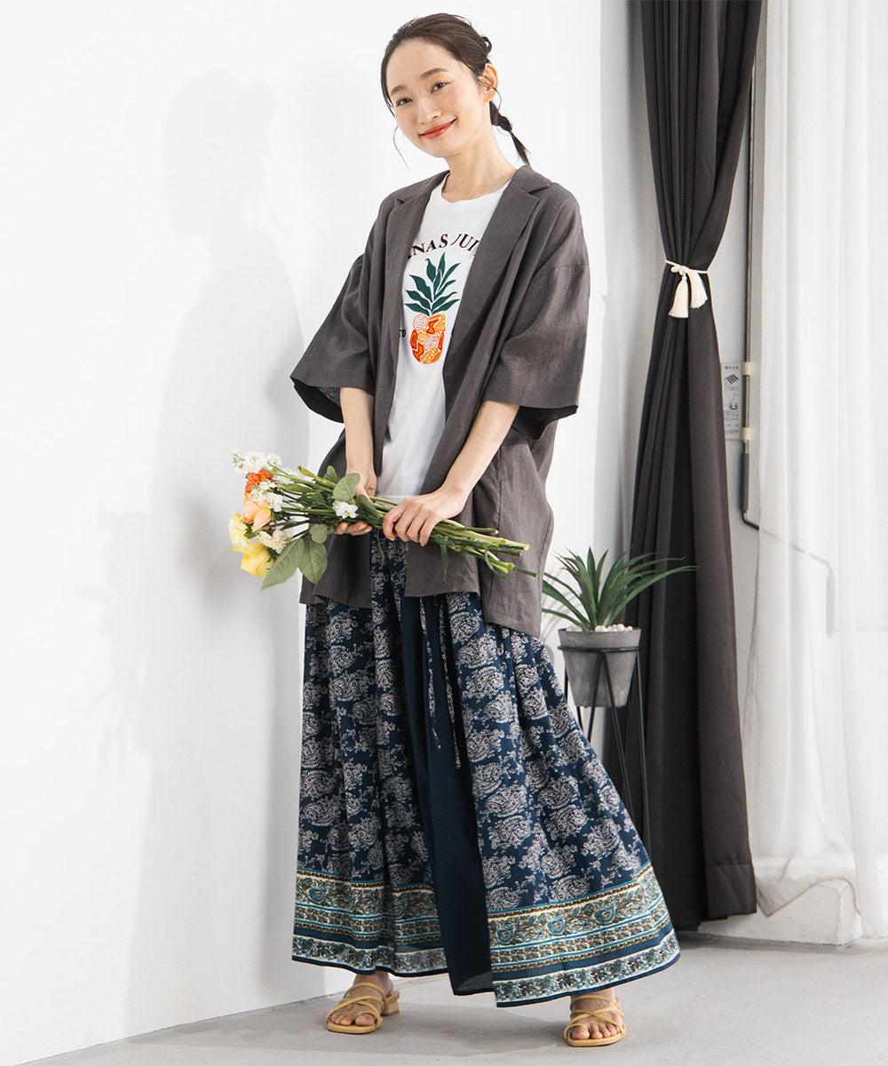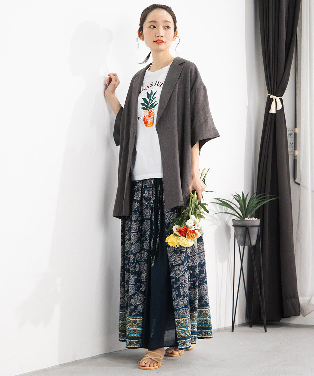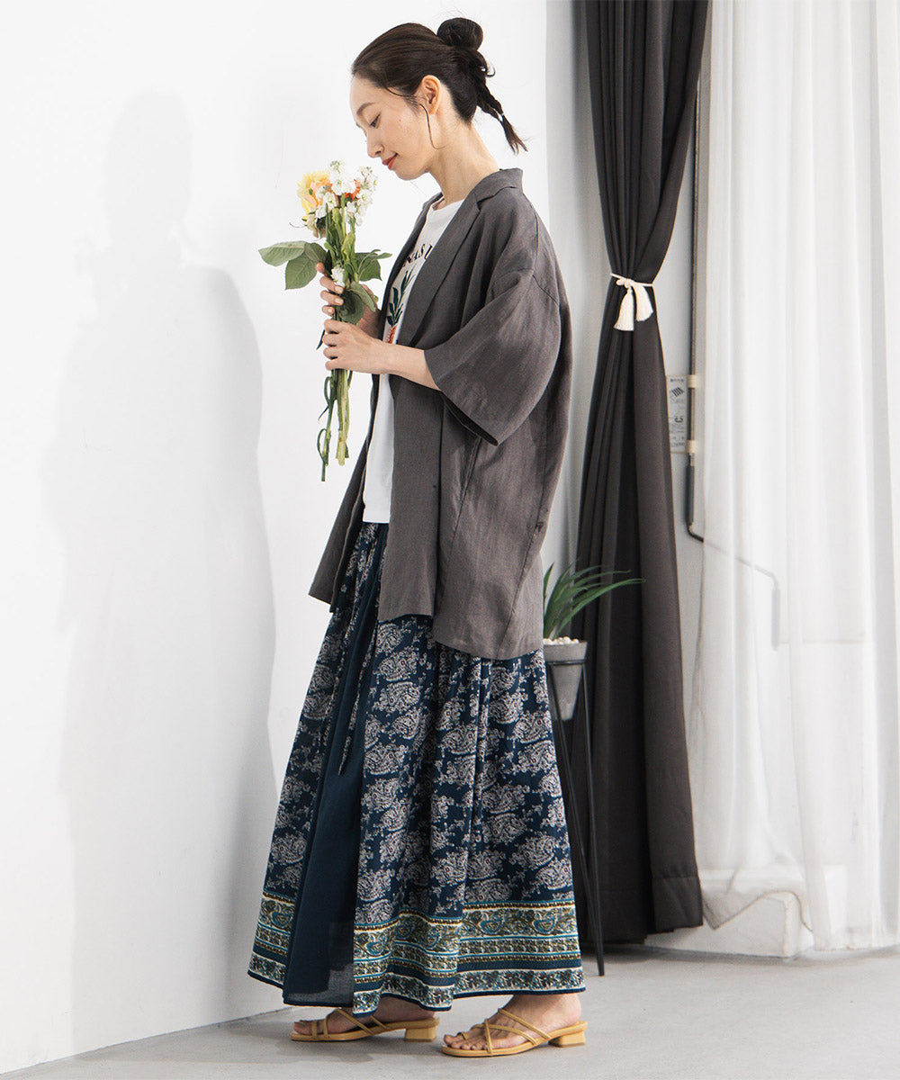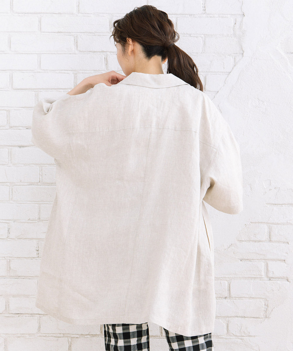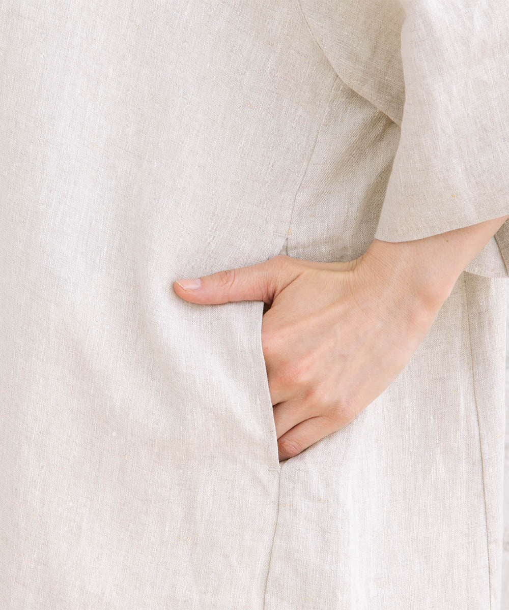 麻100%ならではのナチュラルな風合いが魅力のハーフスリーブジャケット。
