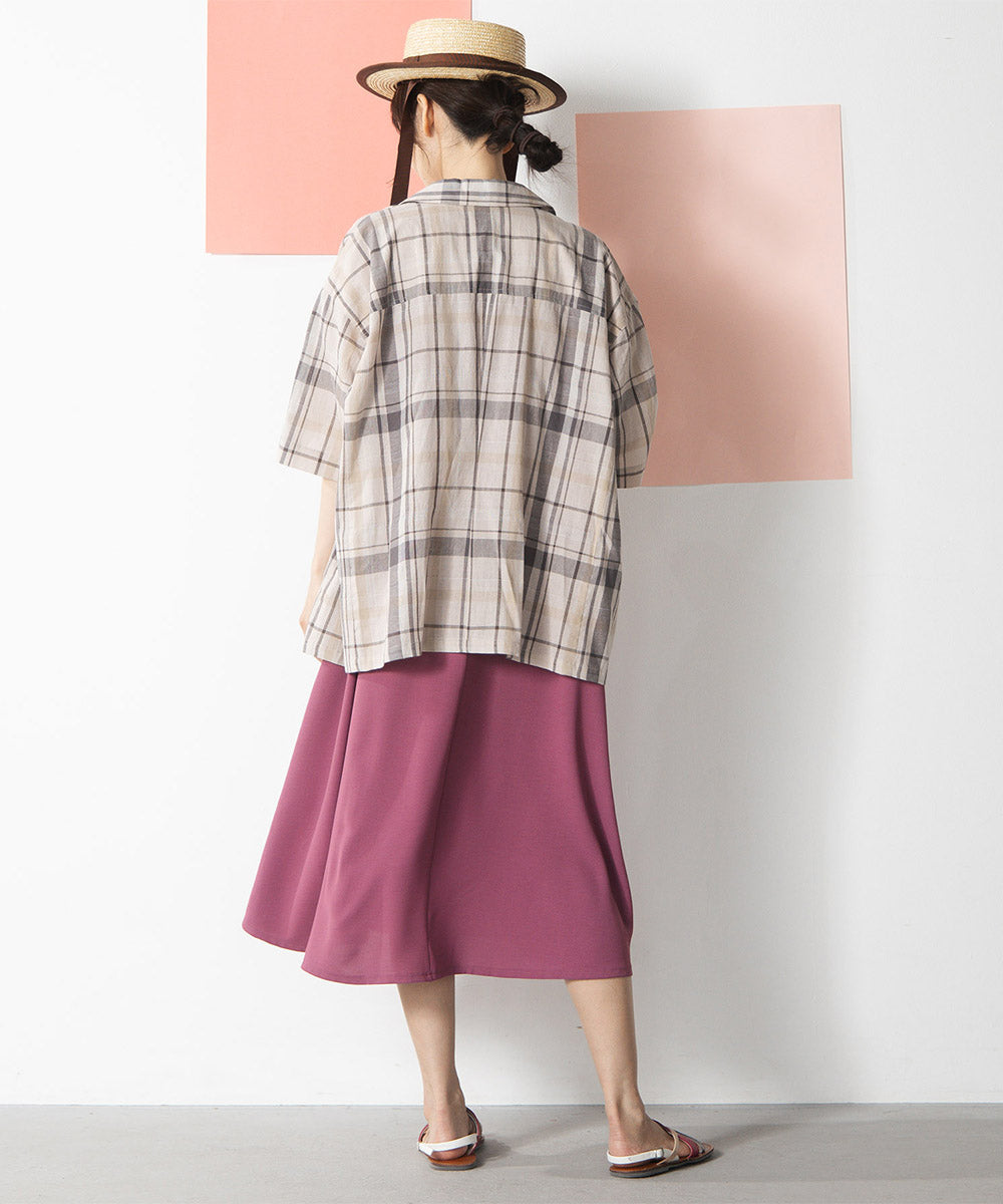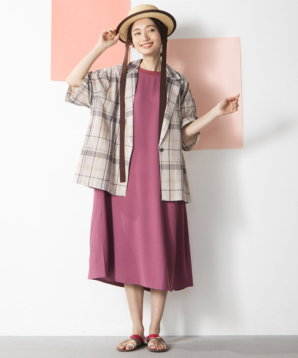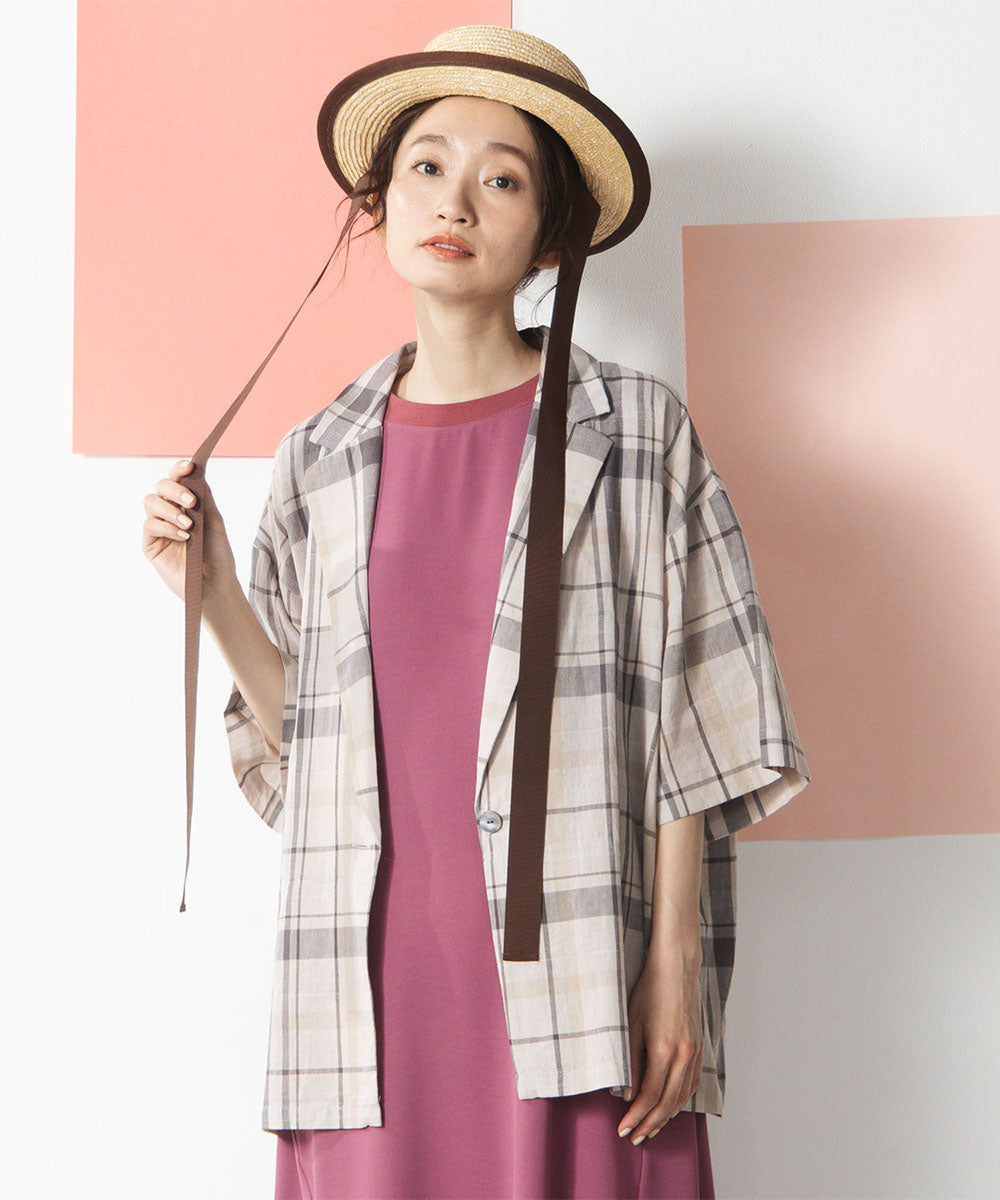 綿麻素材のやわらかな風合いに、大きめのドビーチェックが映える半袖ジャケット。