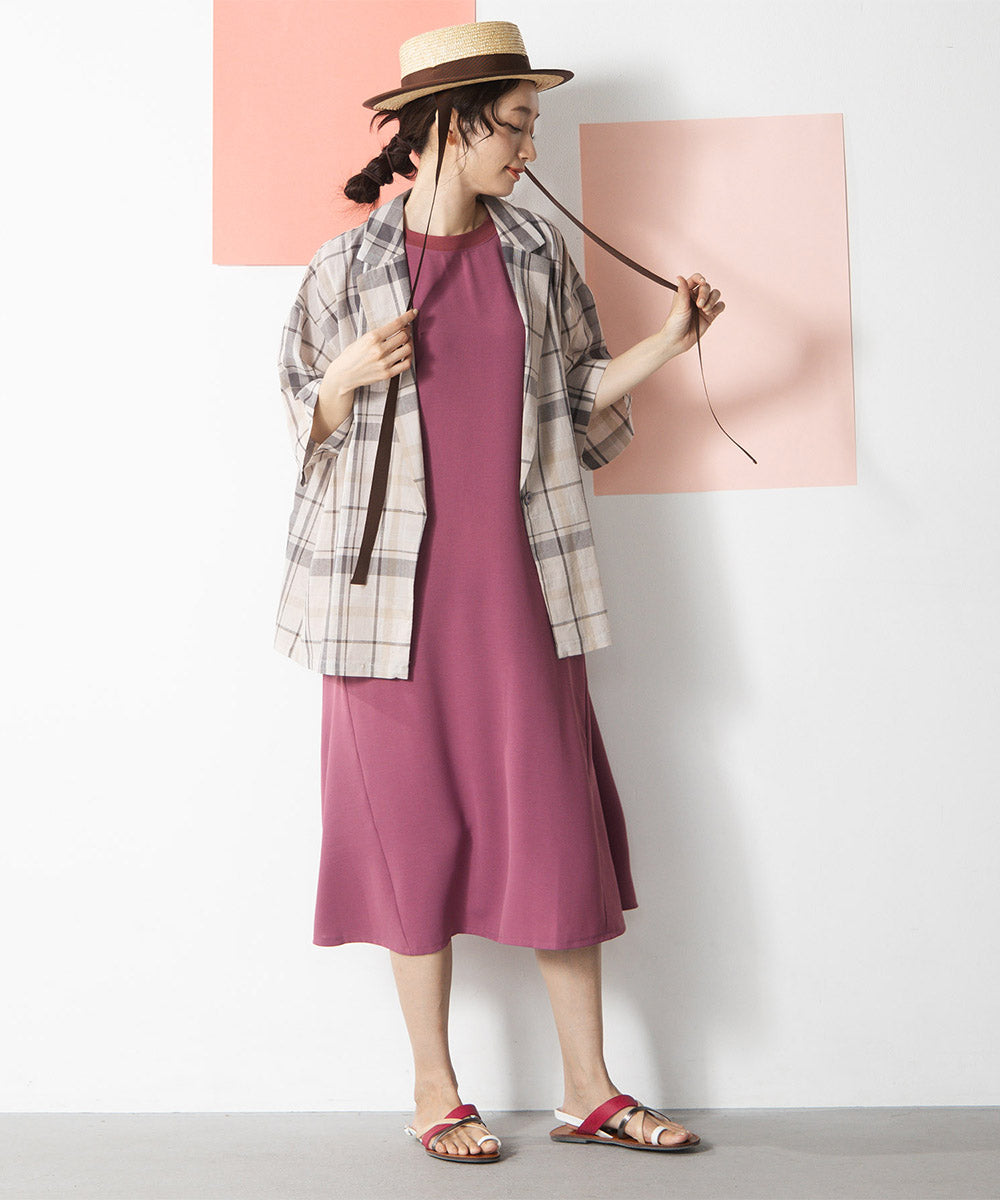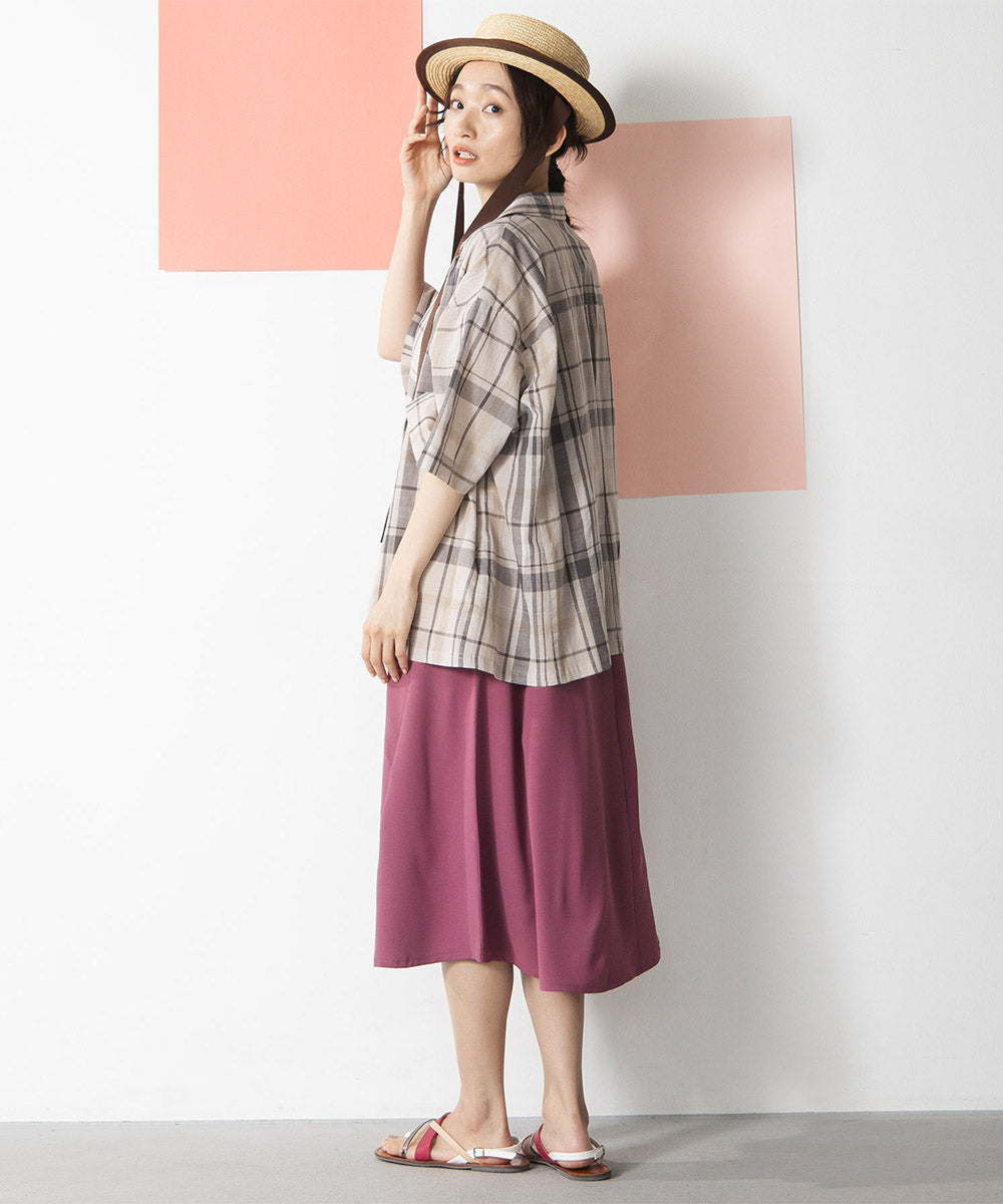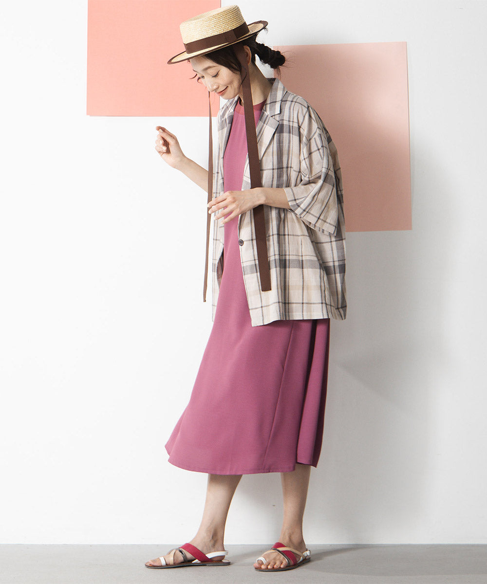綿麻素材のやわらかな風合いに、大きめのドビーチェックが映える半袖ジャケット。