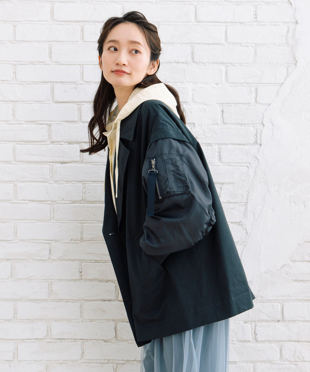 ジャケットとMA-1のドッキングが新鮮なコートです。