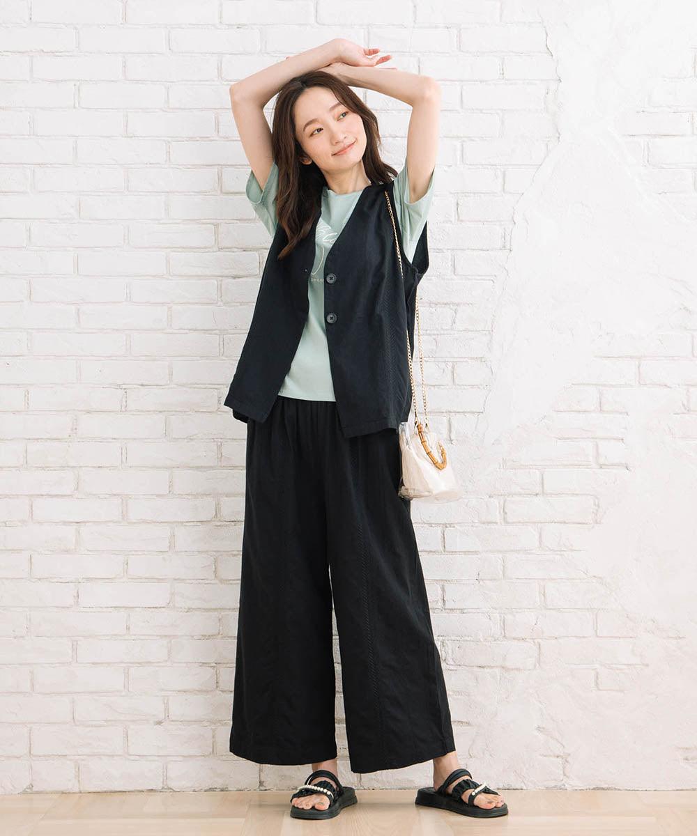 同じ素材を使用したブラウス(商品番号:33016615)とワイドパンツ(商品番号:33121536)がございます。