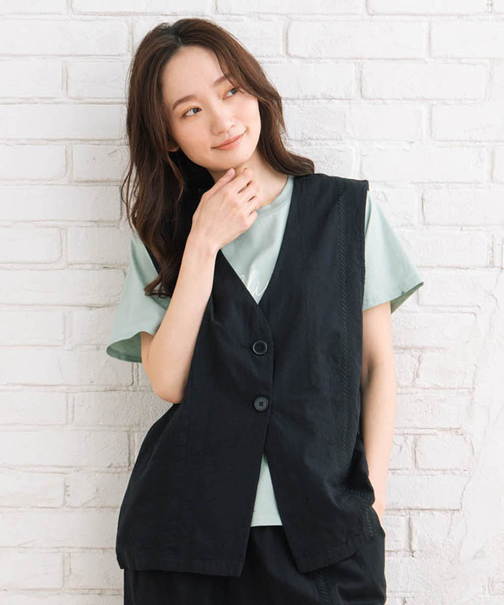 Tシャツやワンピースに重ねるだけで、旬のレイヤードスタイルが完成します。